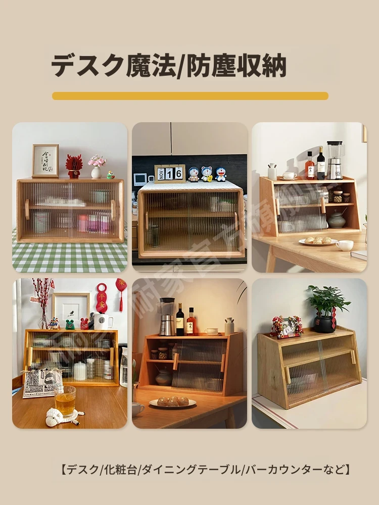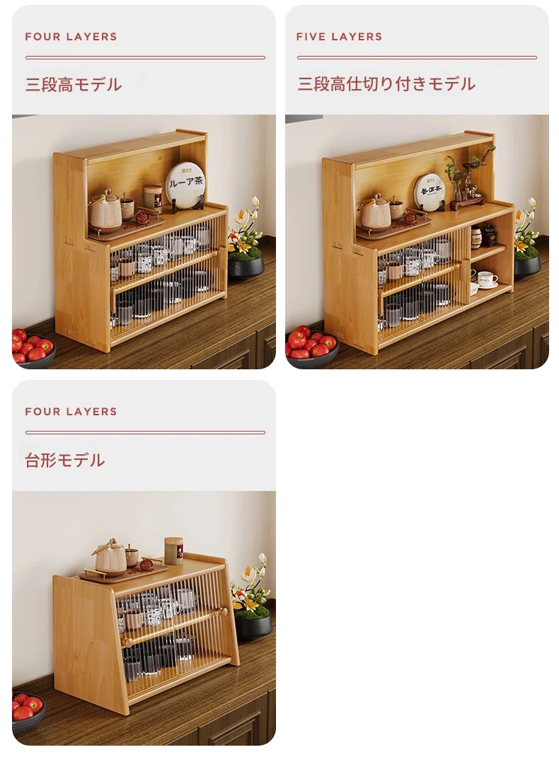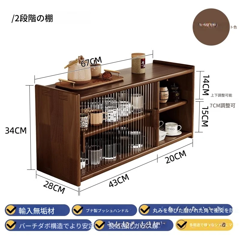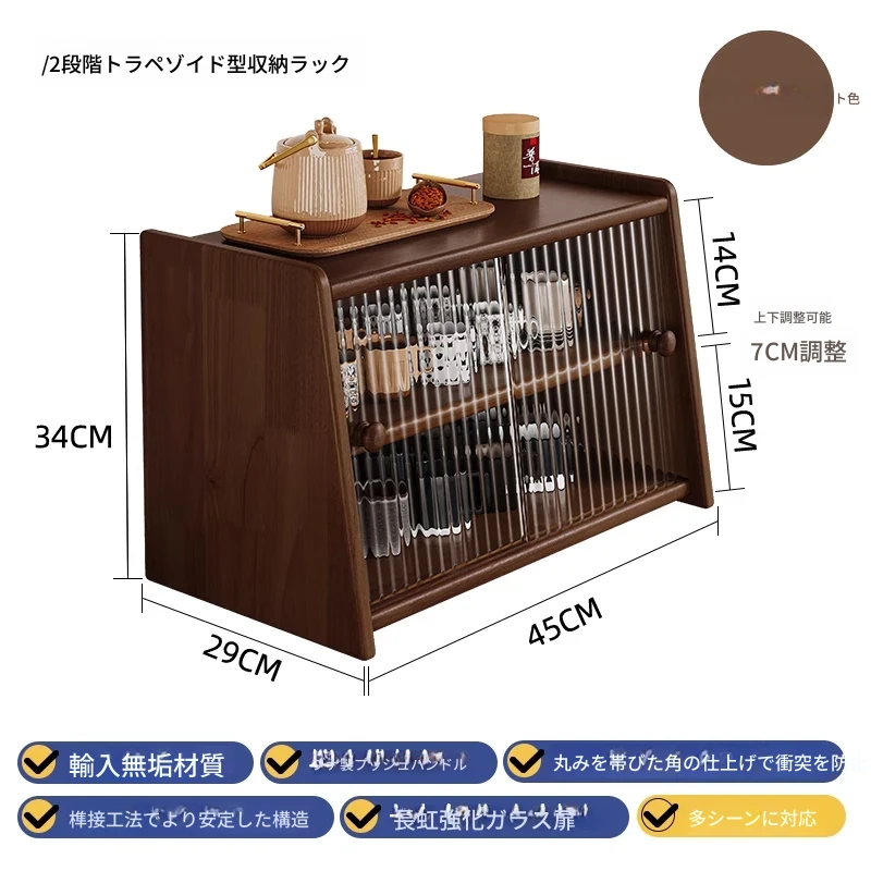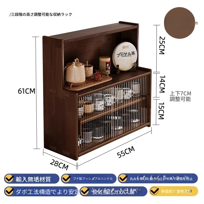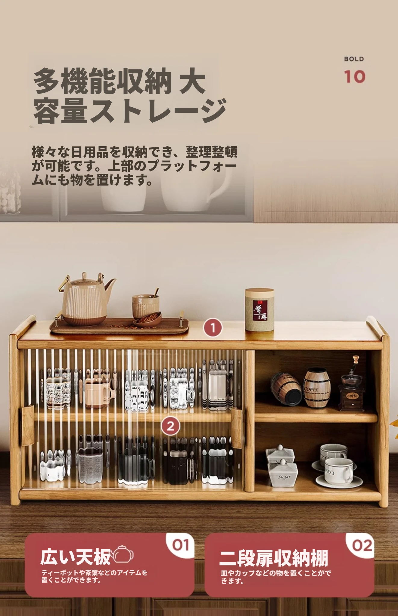 無垢材デスク収納ラック - 日本風カップ収納、ほこり防止ガラス扉付き、デスクサイドキャビネットに最適なカップスタンド!おしゃれで機能的な収納で、あなたの空間を美しく整えます。