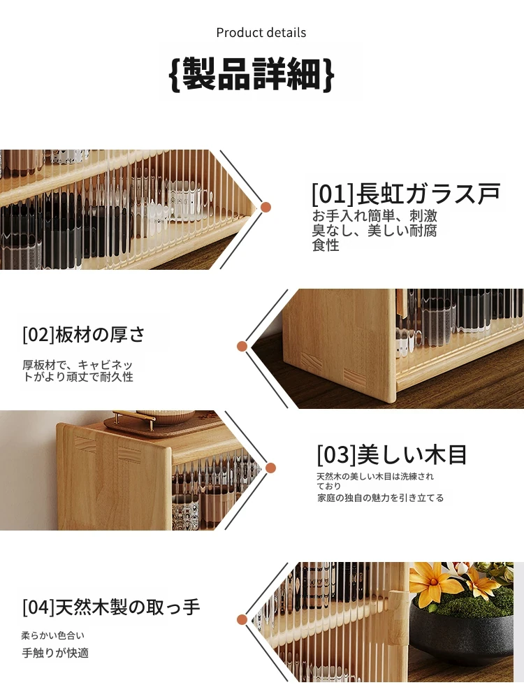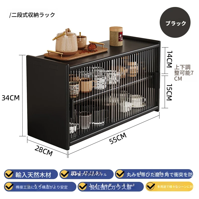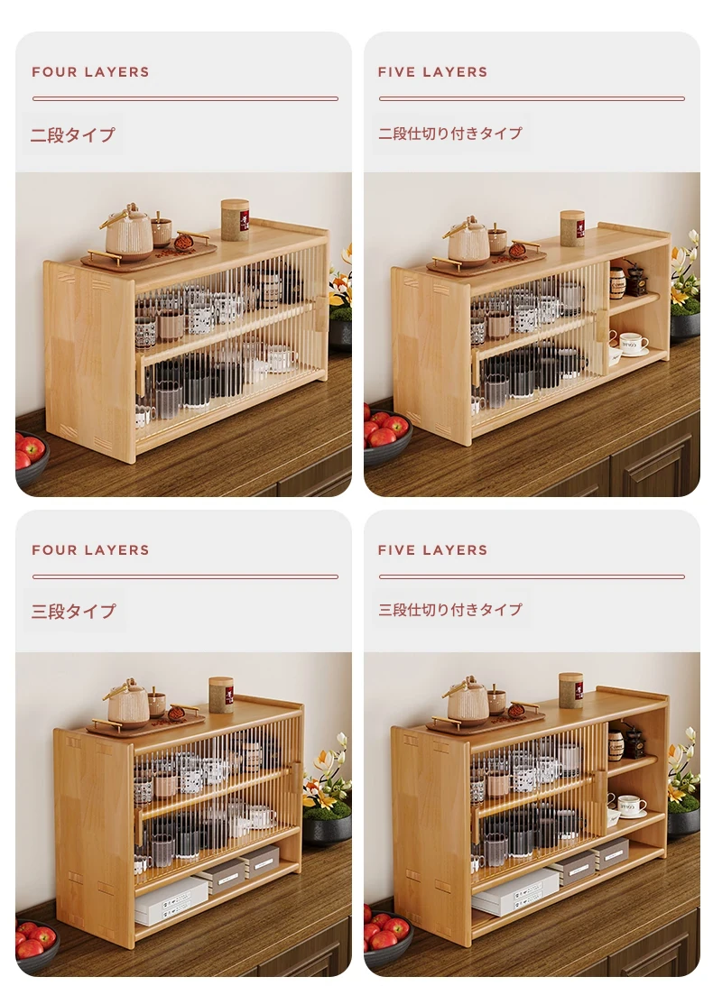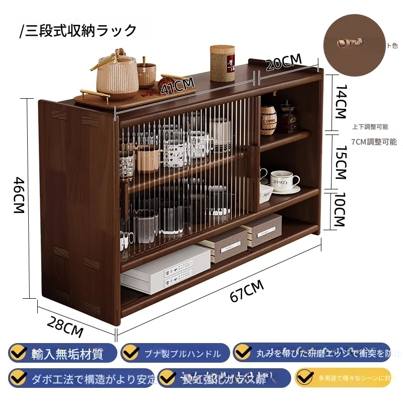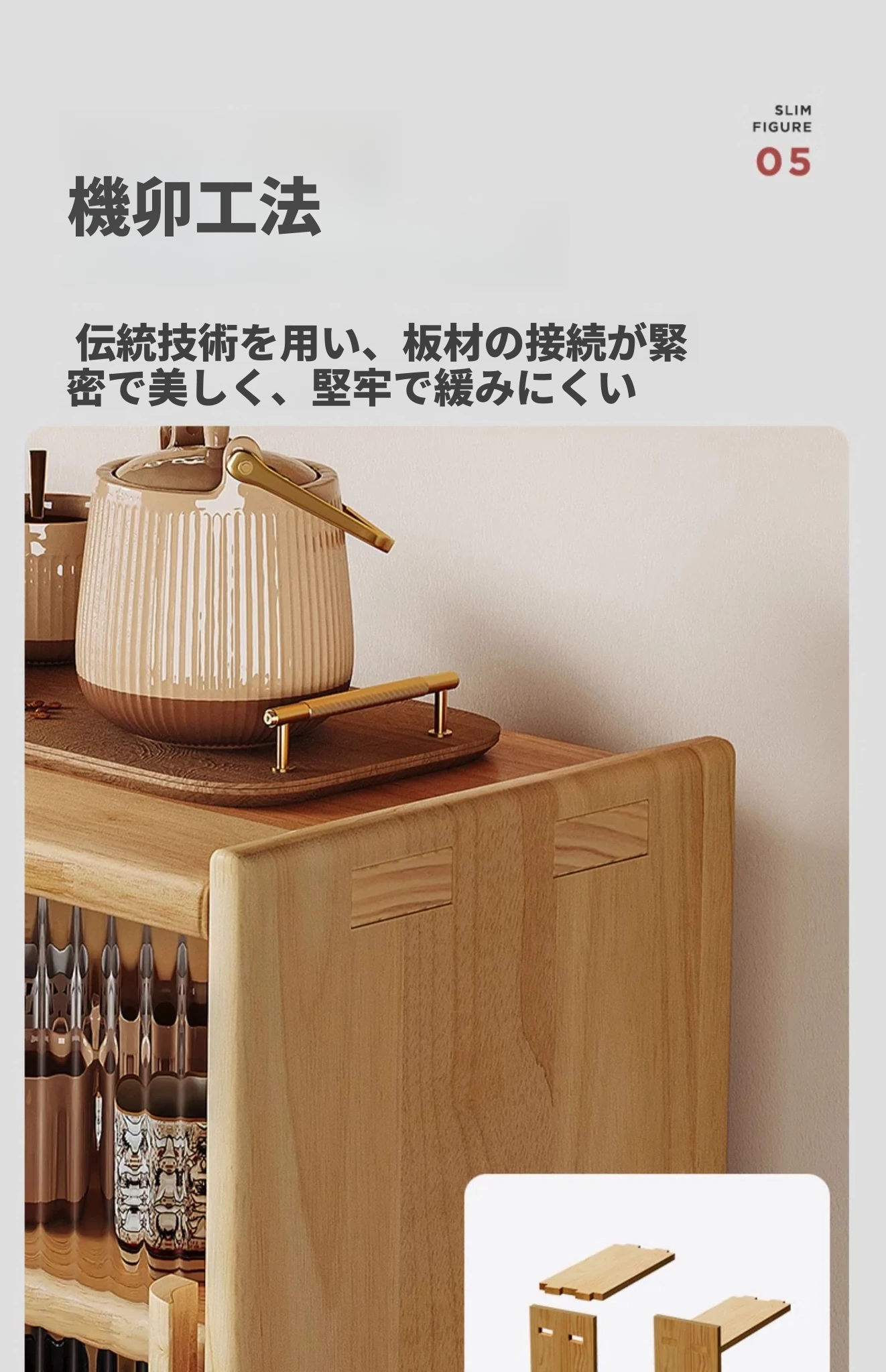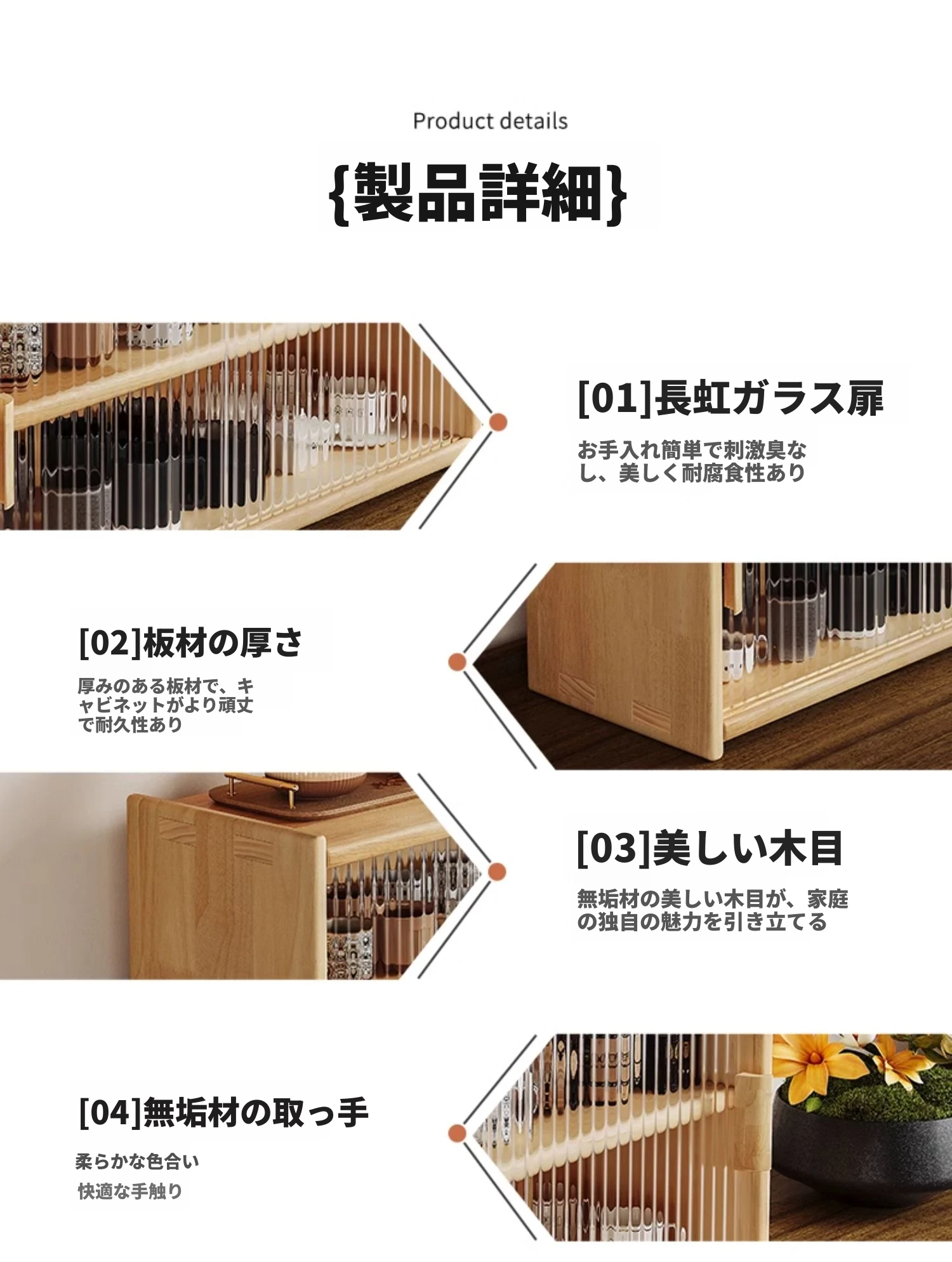 無垢材デスク収納ラック - 日本風カップ収納、ほこり防止ガラス扉付き、デスクサイドキャビネットに最適なカップスタンド!おしゃれで機能的な収納で、あなたの空間を美しく整えます。