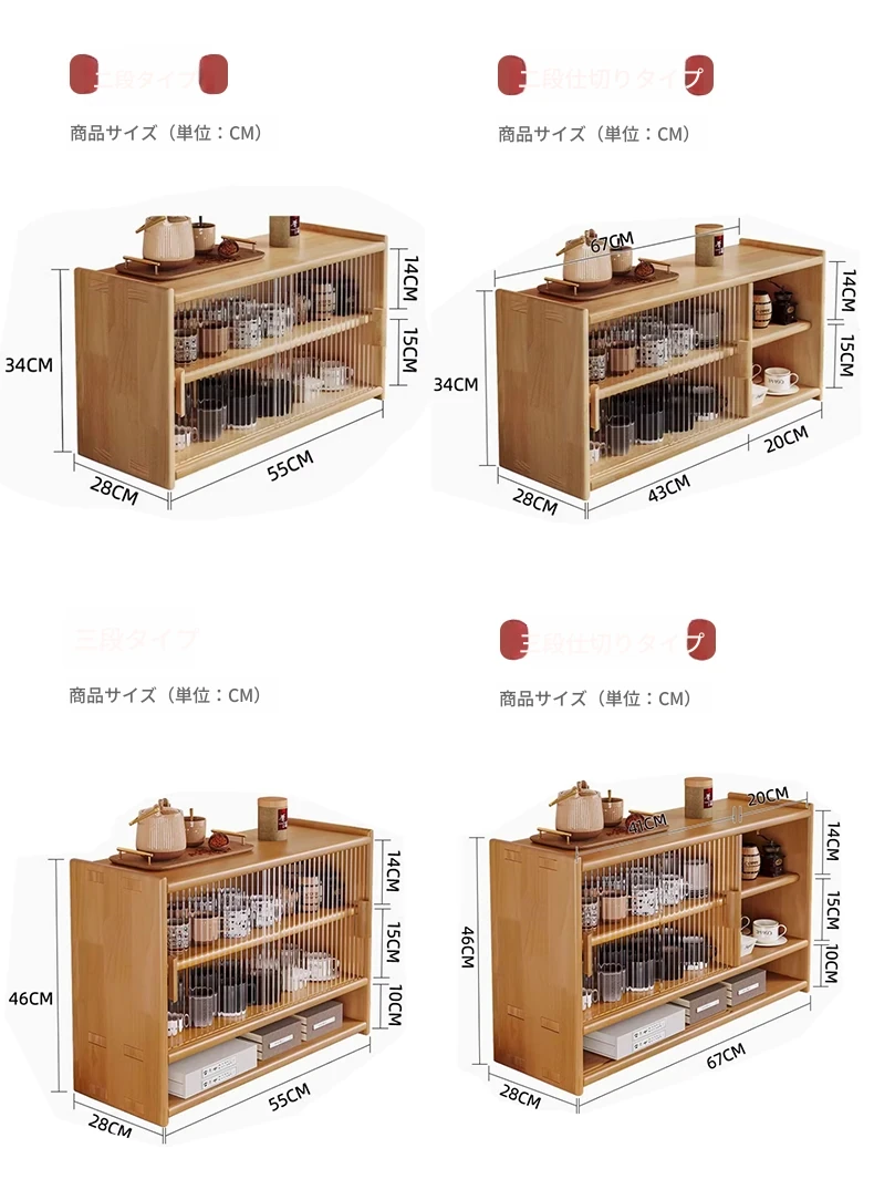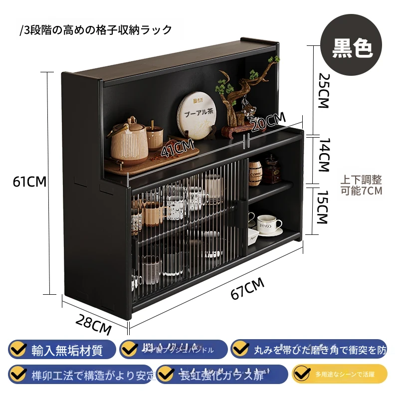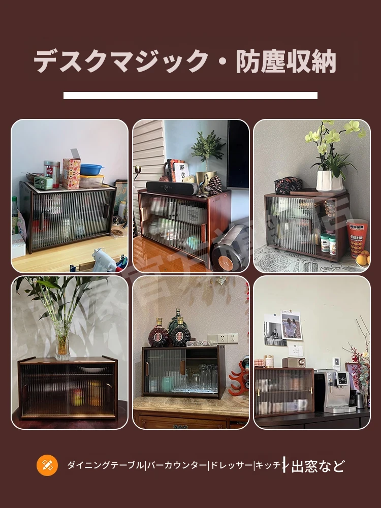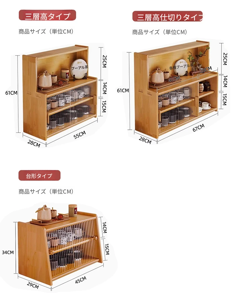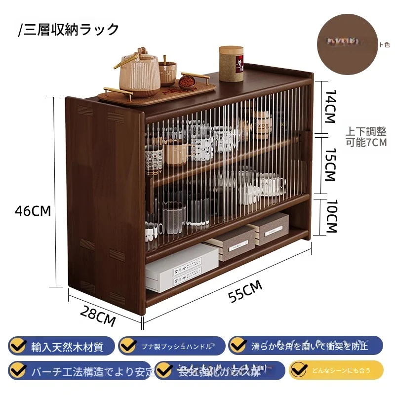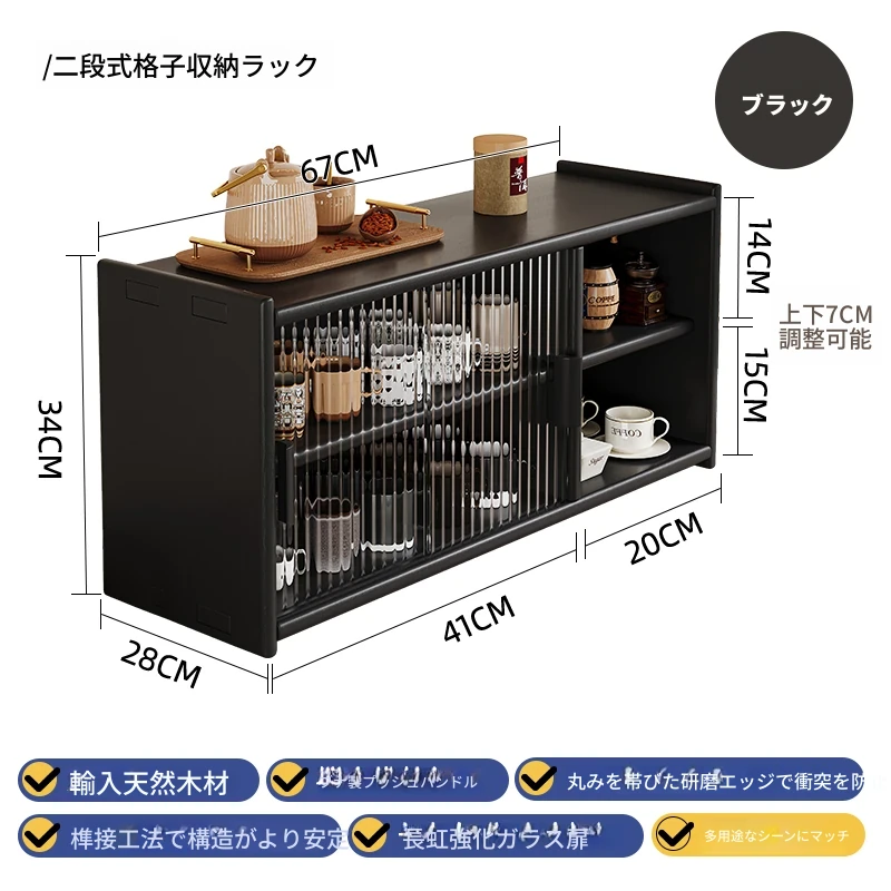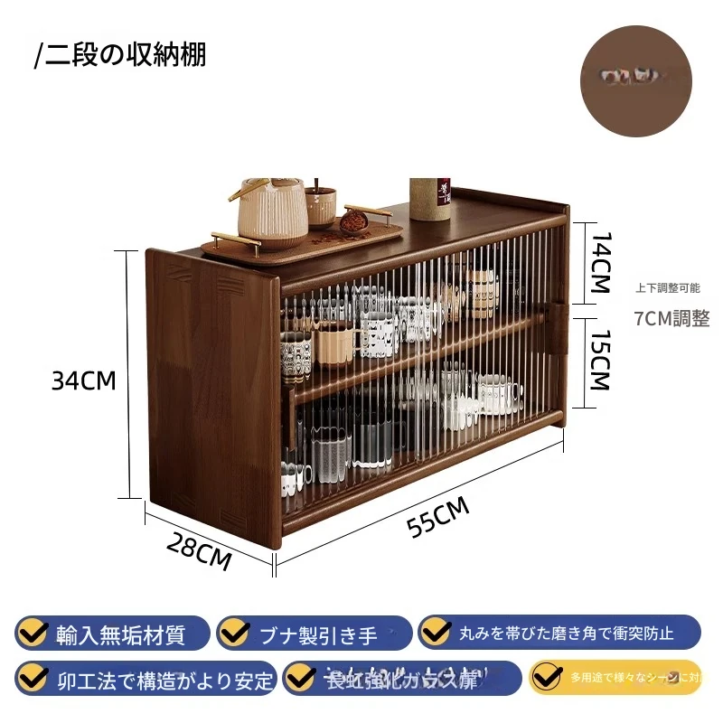 無垢材デスク収納ラック - 日本風カップ収納、ほこり防止ガラス扉付き、デスクサイドキャビネットに最適なカップスタンド!おしゃれで機能的な収納で、あなたの空間を美しく整えます。