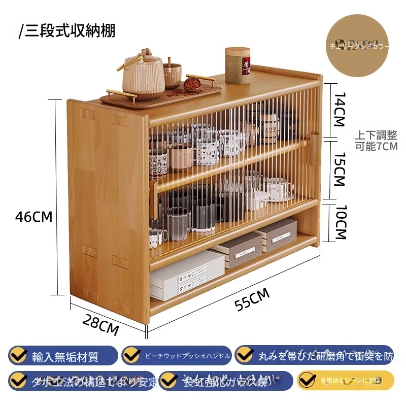 【3層高め格子付き】67x28x61cm-チェリーウッド色