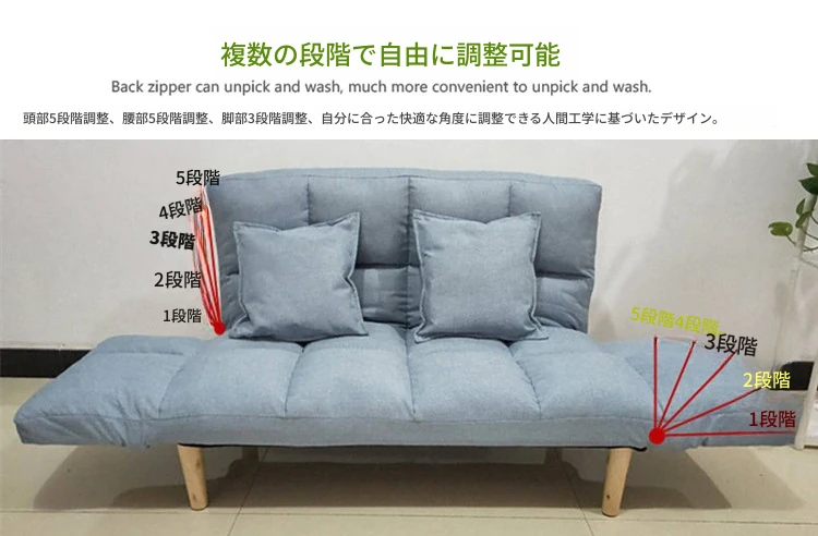 洗浄不要テクノロジー布3人用ダークブルー長さ155*55*38cm高