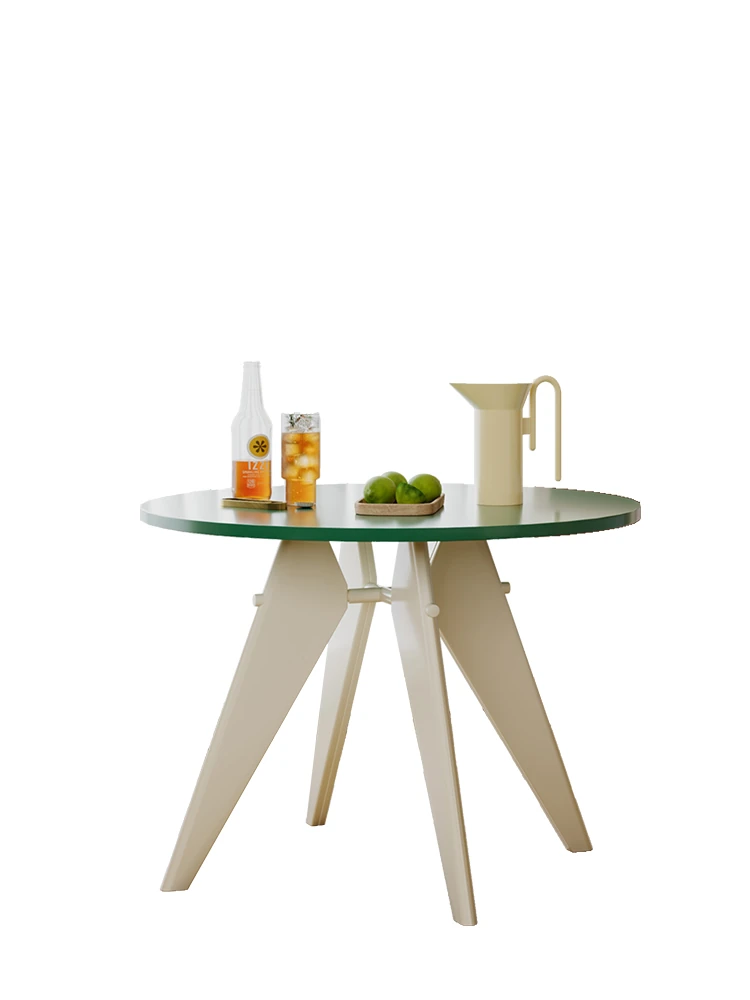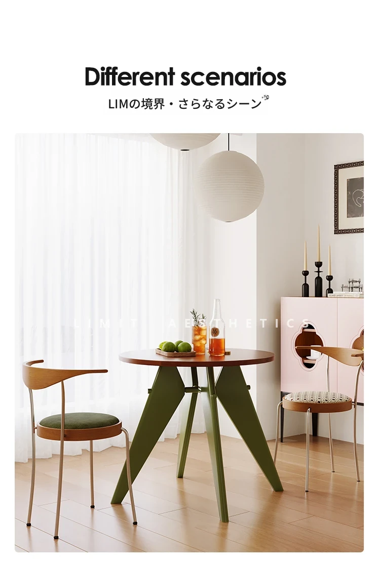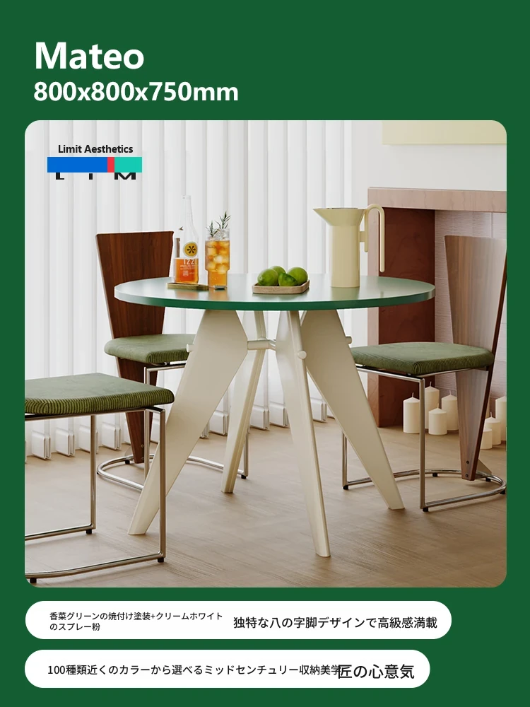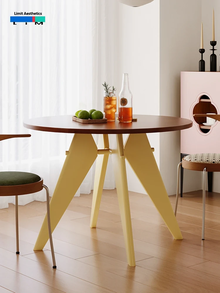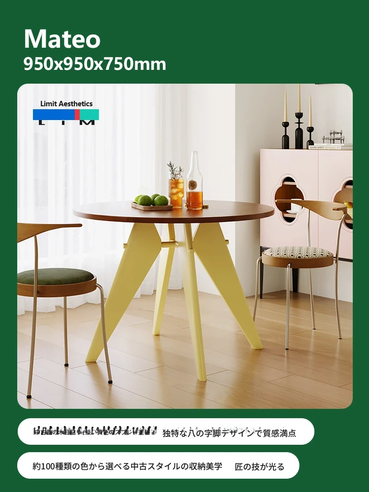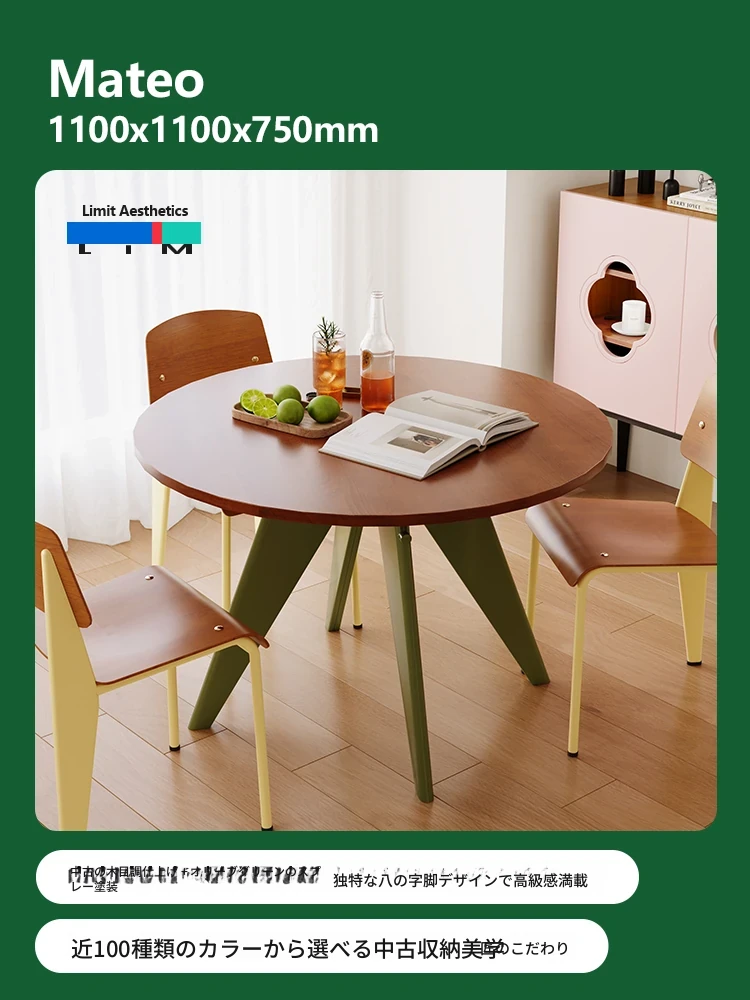 LIM界限 中古スタイルのレトロ小型金属脚丸テーブル - 北欧バウハウスデザインの天然木ダイニングテーブル、コンパクトな空間に最適!