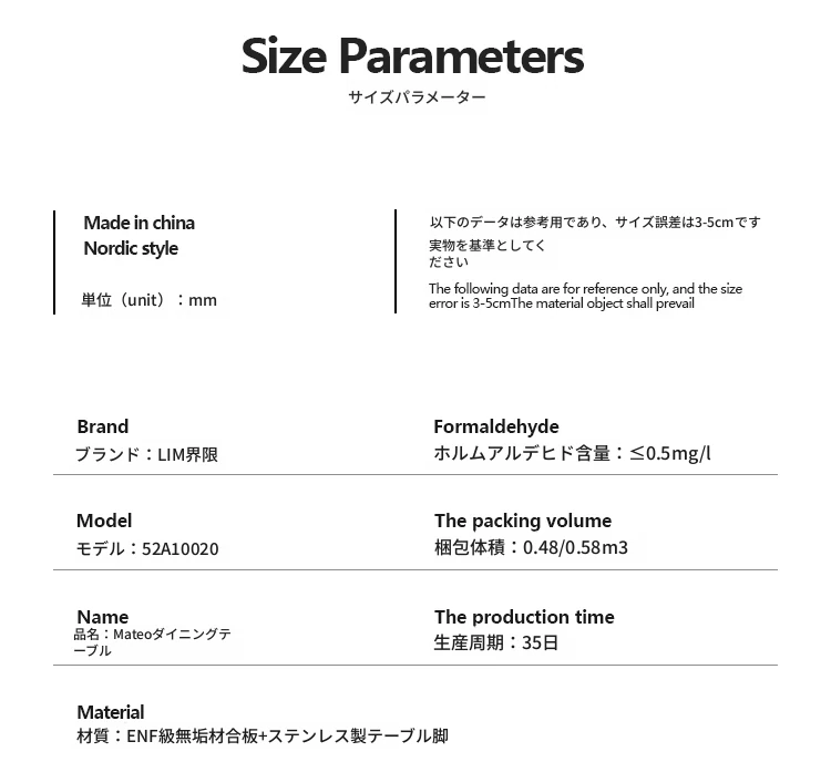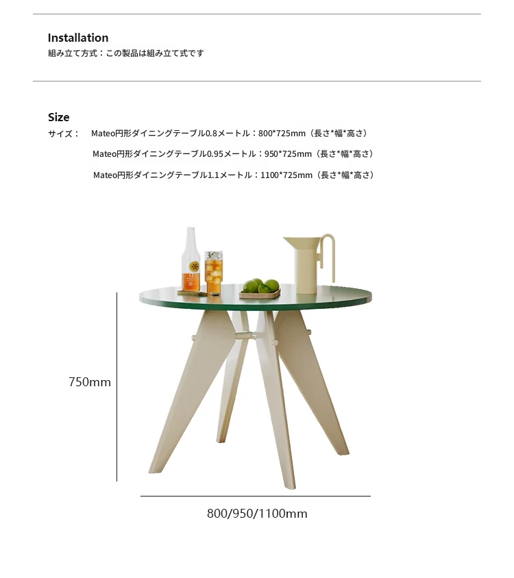 Mateoダイニングテーブル0.8m