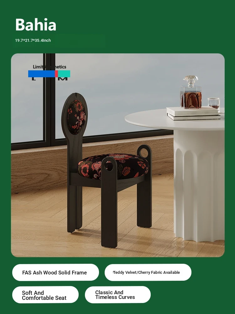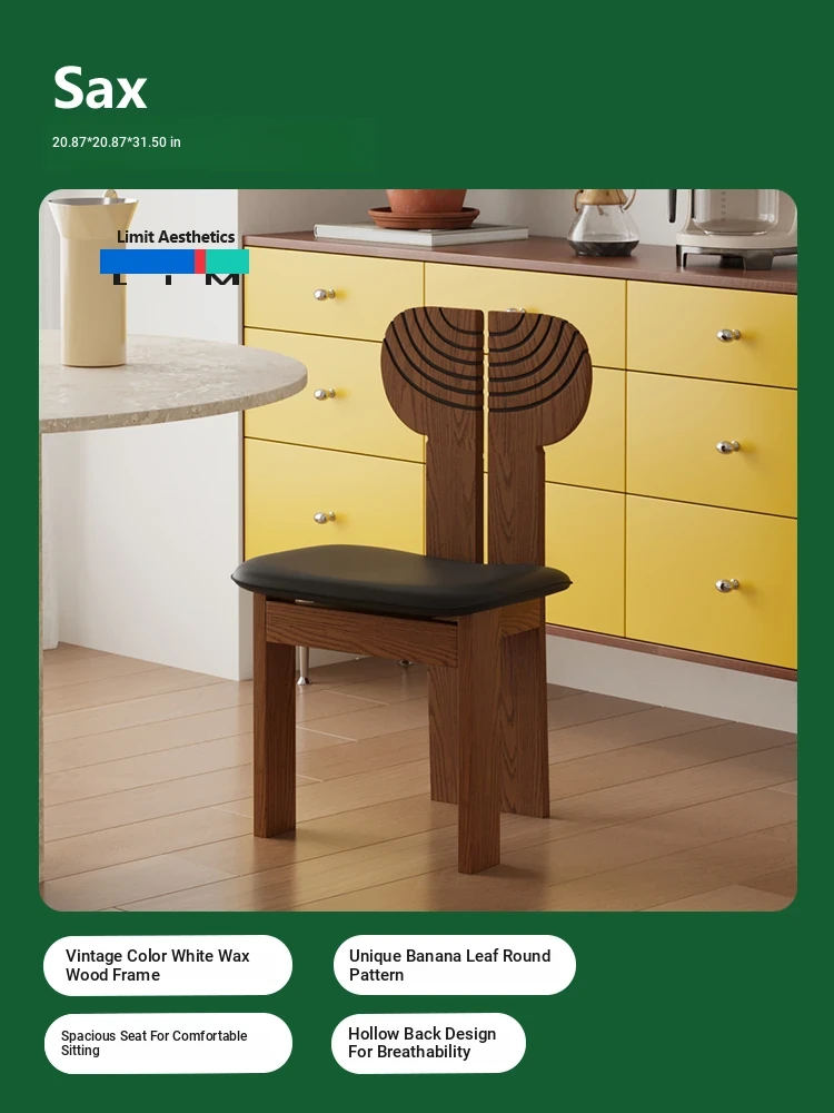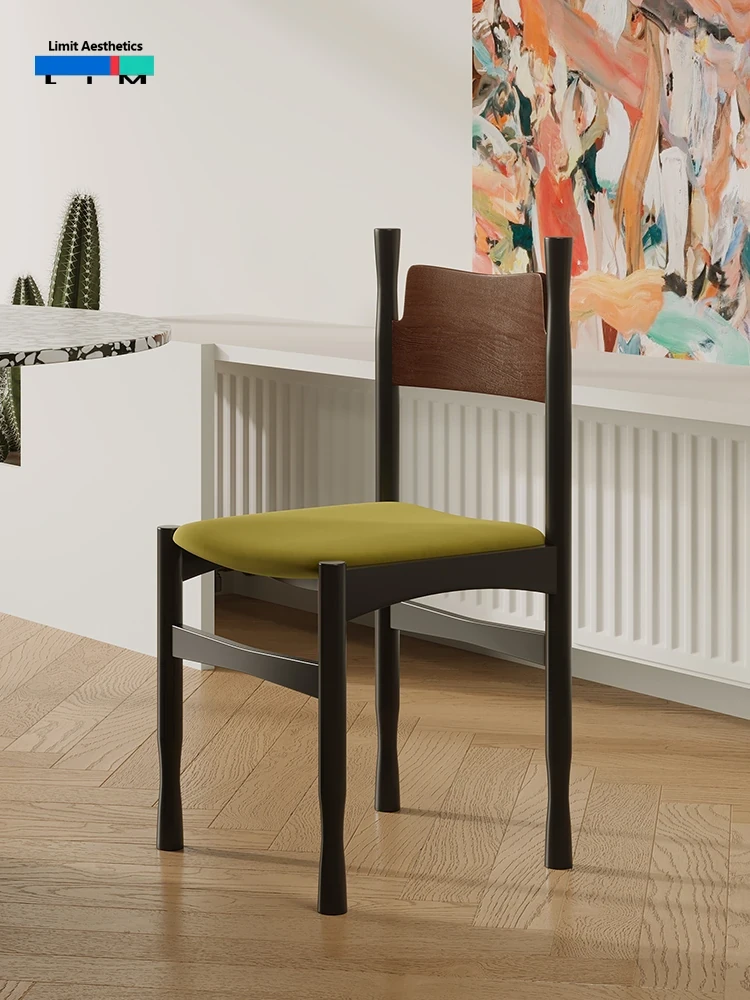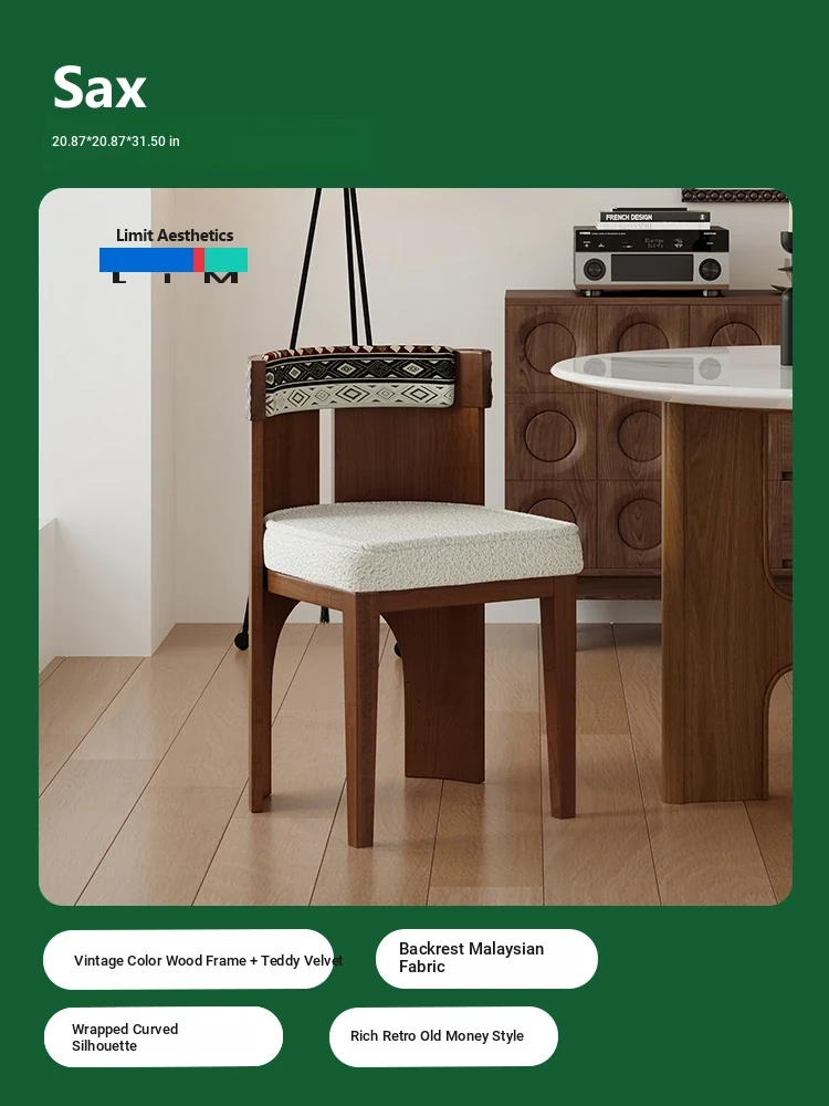 LIM Boundary Vintage Solid Wood Dining Chair - Wabi-Sabi Style Makeup Stool, Retro Designer Chair, Perfect for Reading or Relaxing, Single Seat R