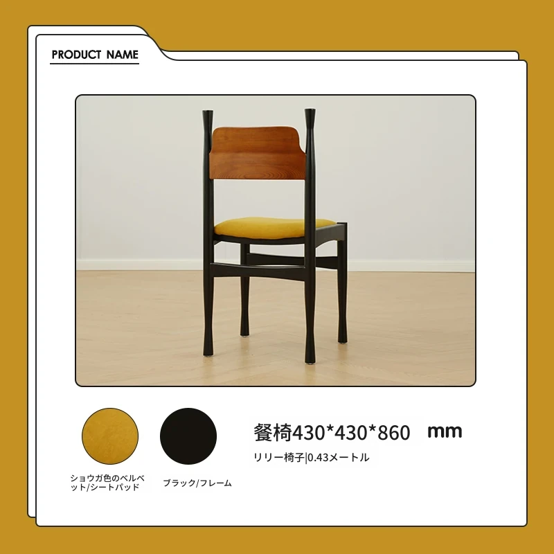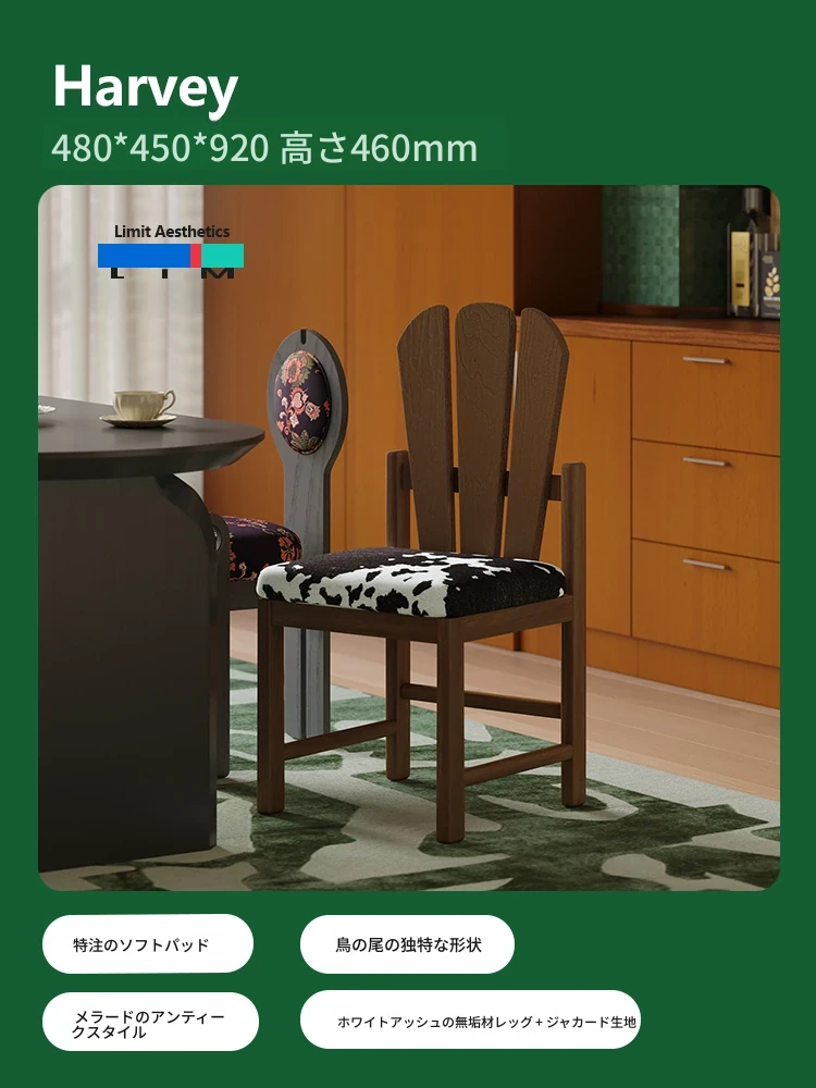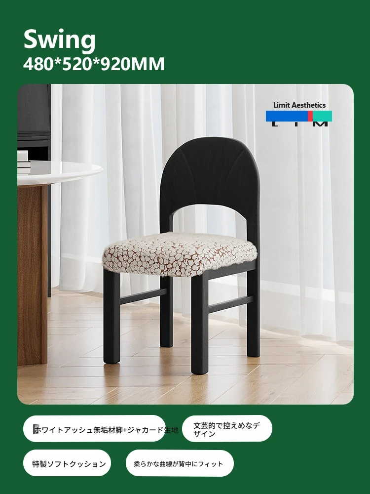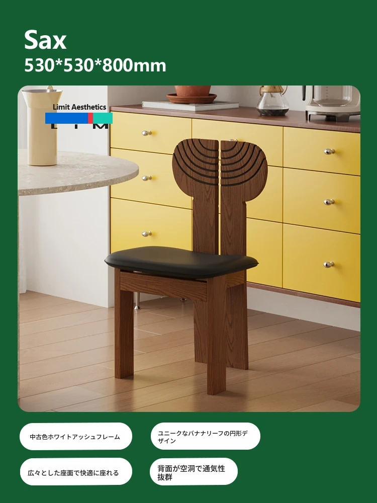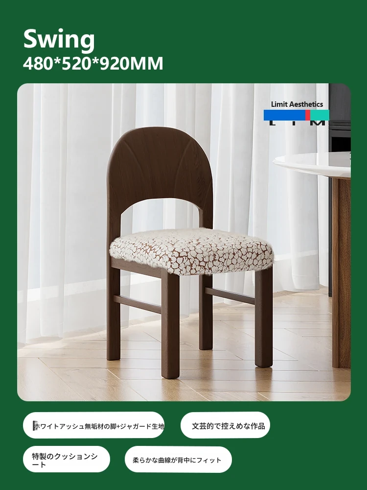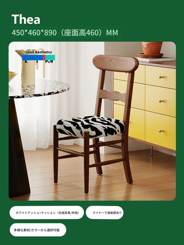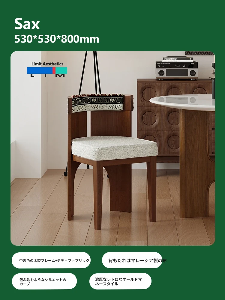 LIM界限 中古風の無垢材ダイニングチェア - 和のテイストを感じる侘寂スタイルの化粧台椅子。レトロデザインの書斎用シングルチェアで、インテリアに華を添えます。上質な素材で、心地よい座り心地を実現!