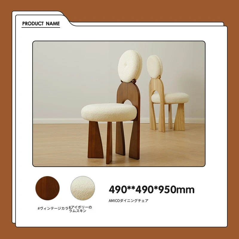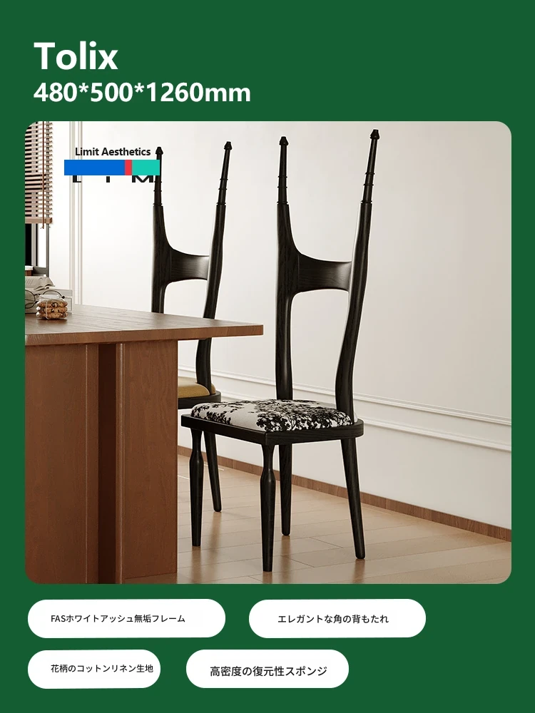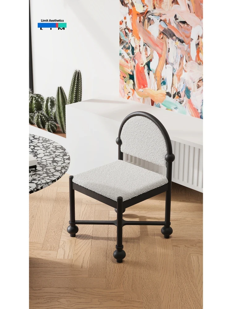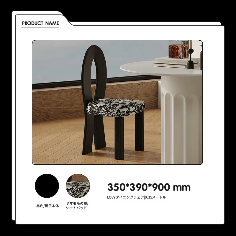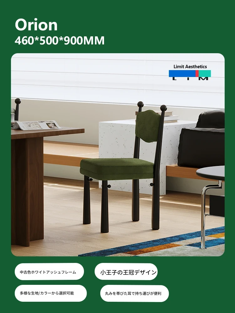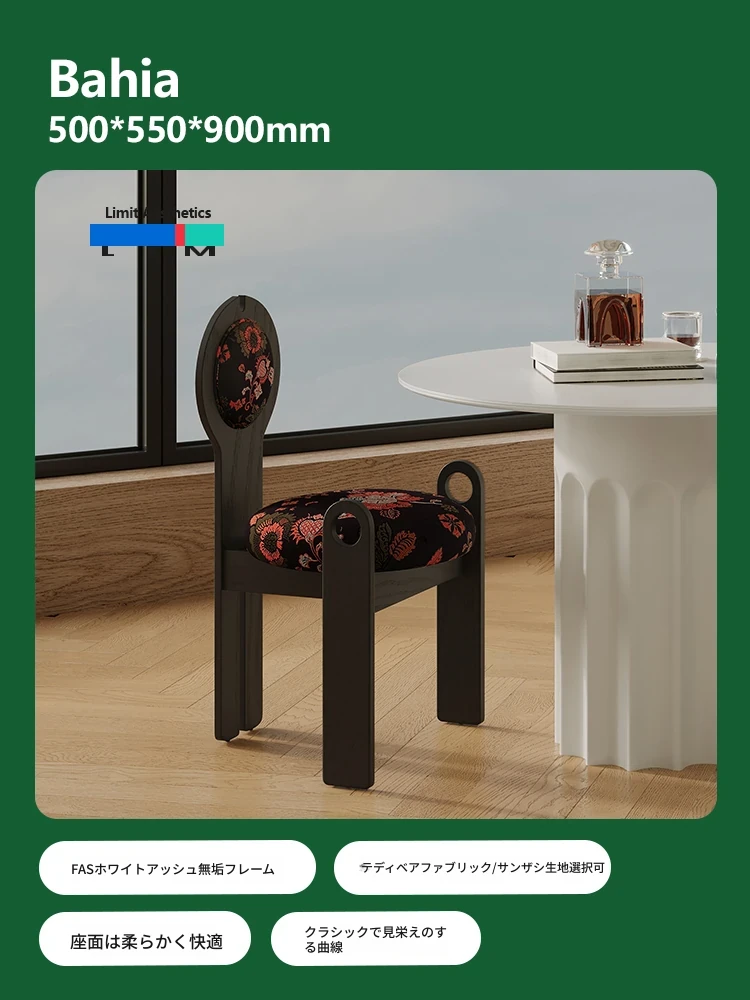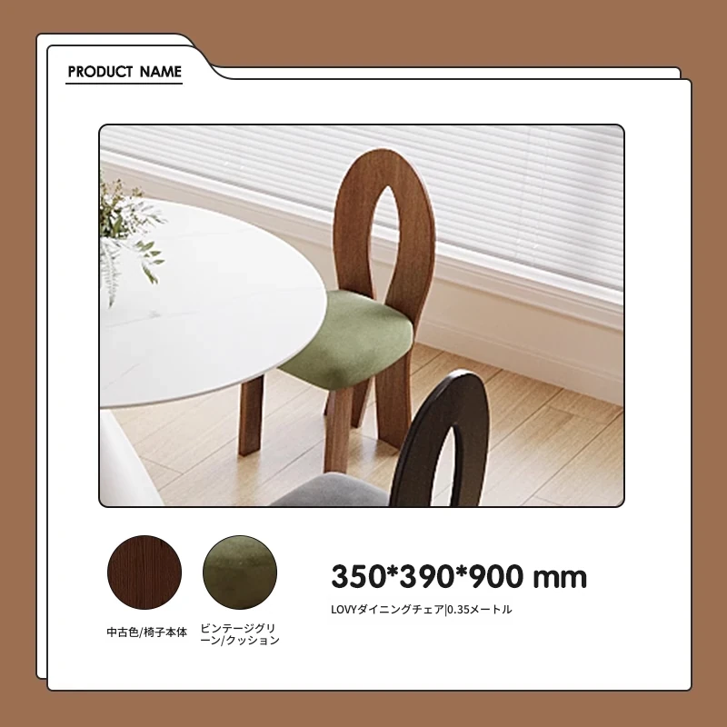 LIM界限 中古風の無垢材ダイニングチェア - 和のテイストを感じる侘寂スタイルの化粧台椅子。レトロデザインの書斎用シングルチェアで、インテリアに華を添えます。上質な素材で、心地よい座り心地を実現!