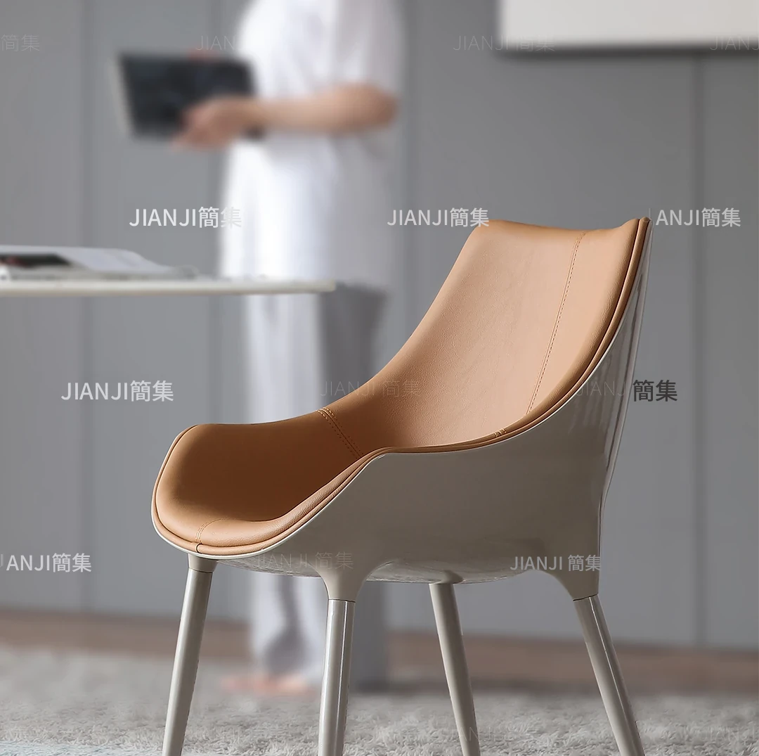 軽奢感あふれる本革ダイニングチェア|イタリアンミニマルデザインの上質な一枚革使用|現代的でスタイリッシュな高級レストラン向けチェア|家庭用にもぴったりな洗練されたアイテム
