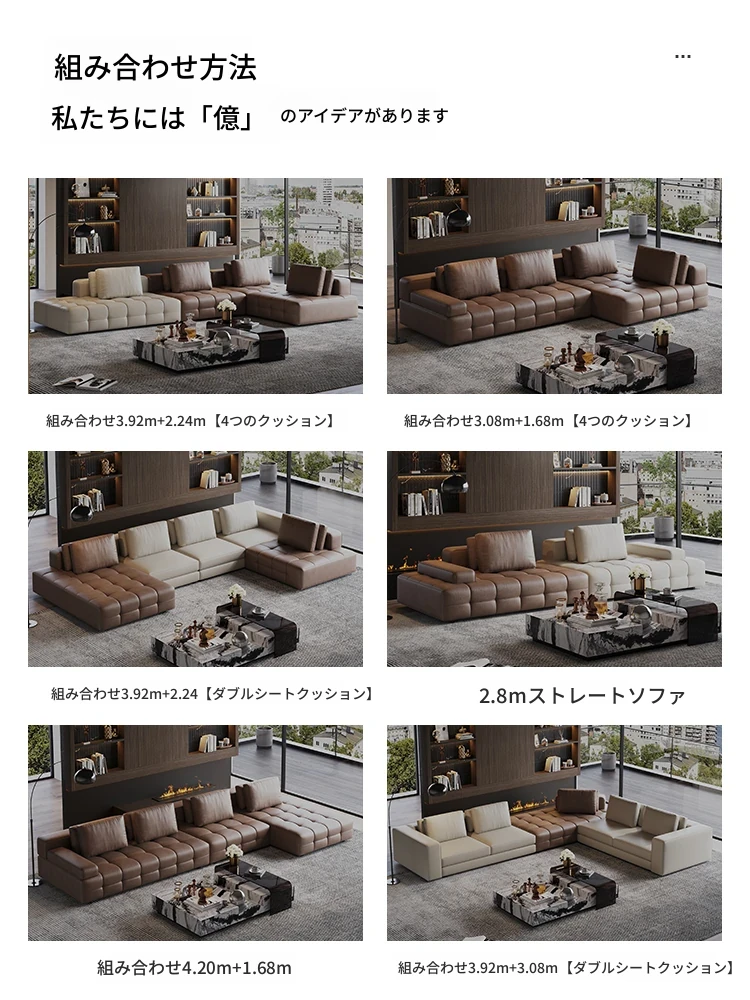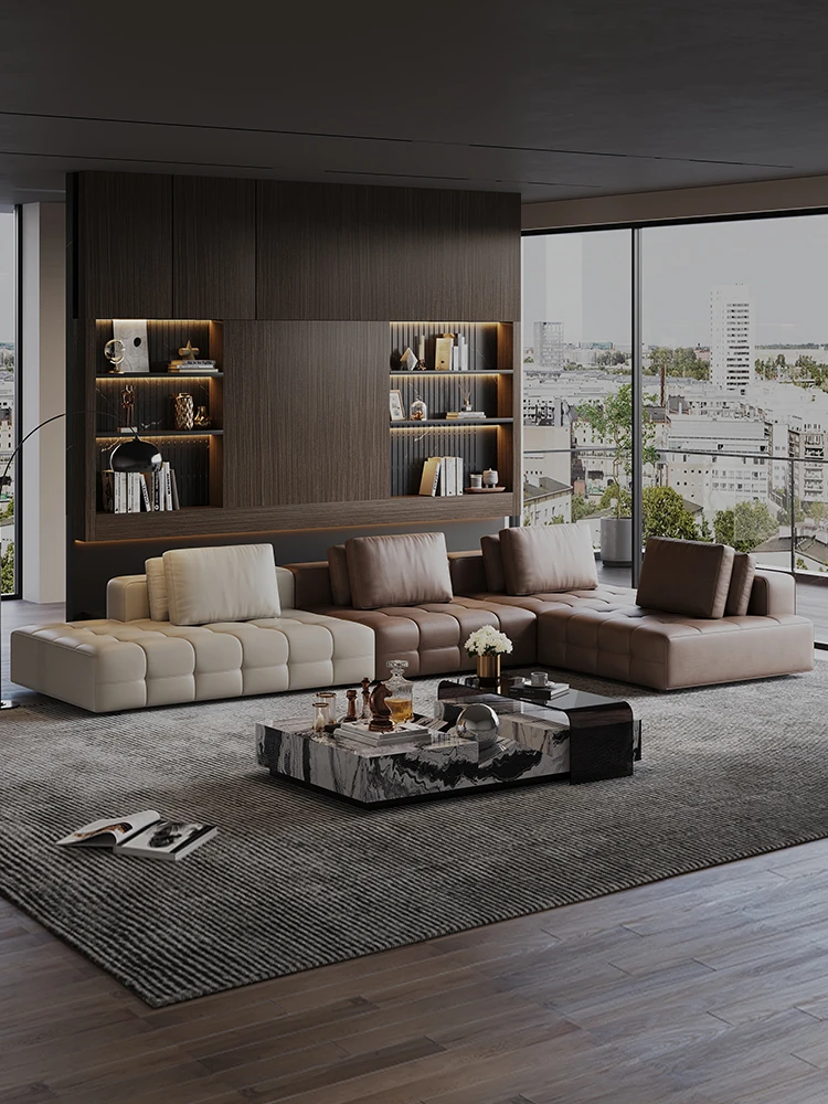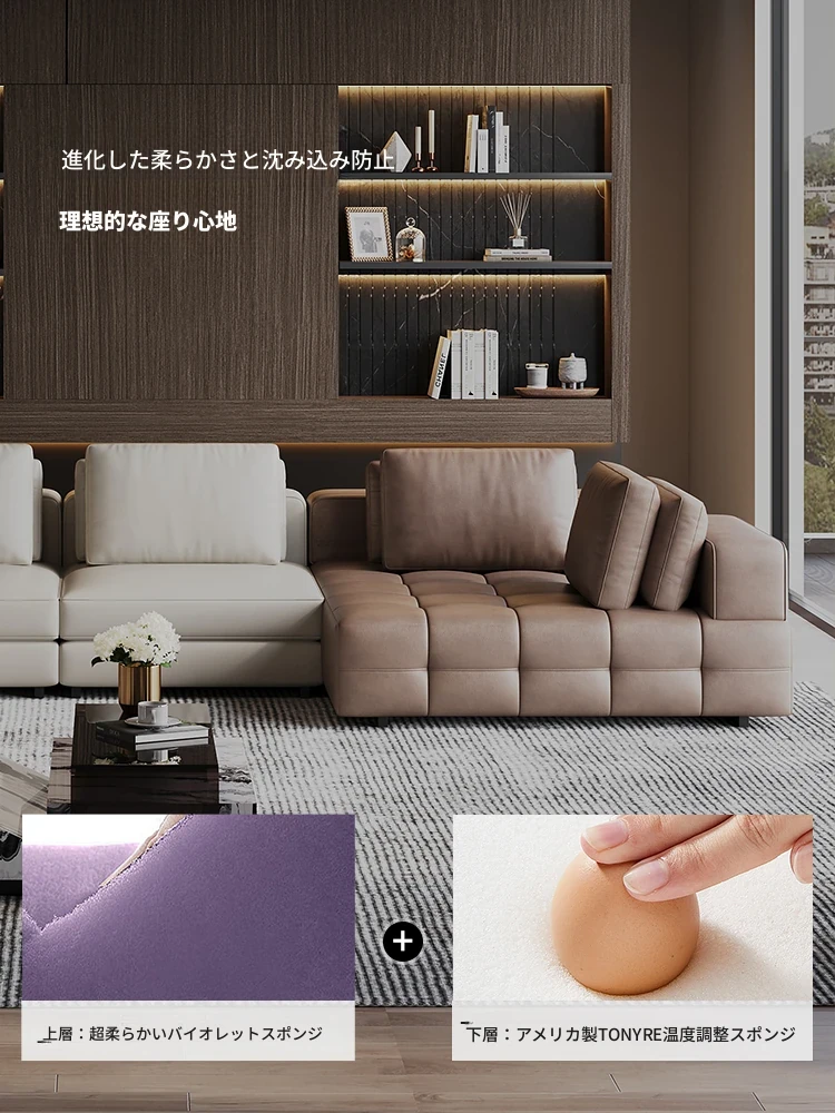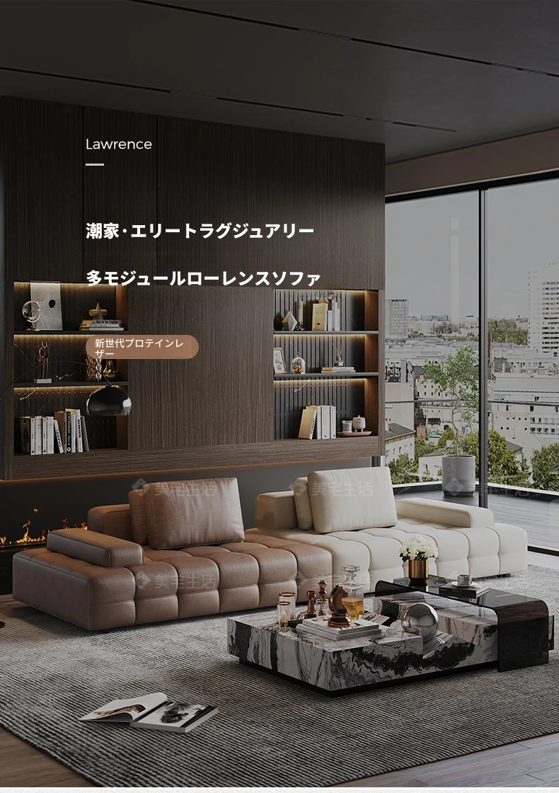 ラグジュアリー・ローレンス 大空間リビング本革ソファセット - 高級本革使用、イタリアンシンプルモジュールデザイン、ヴィラに最適!