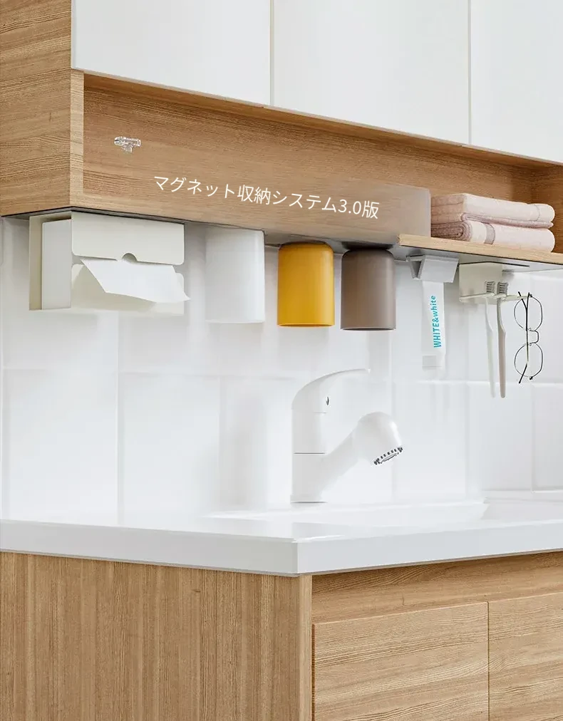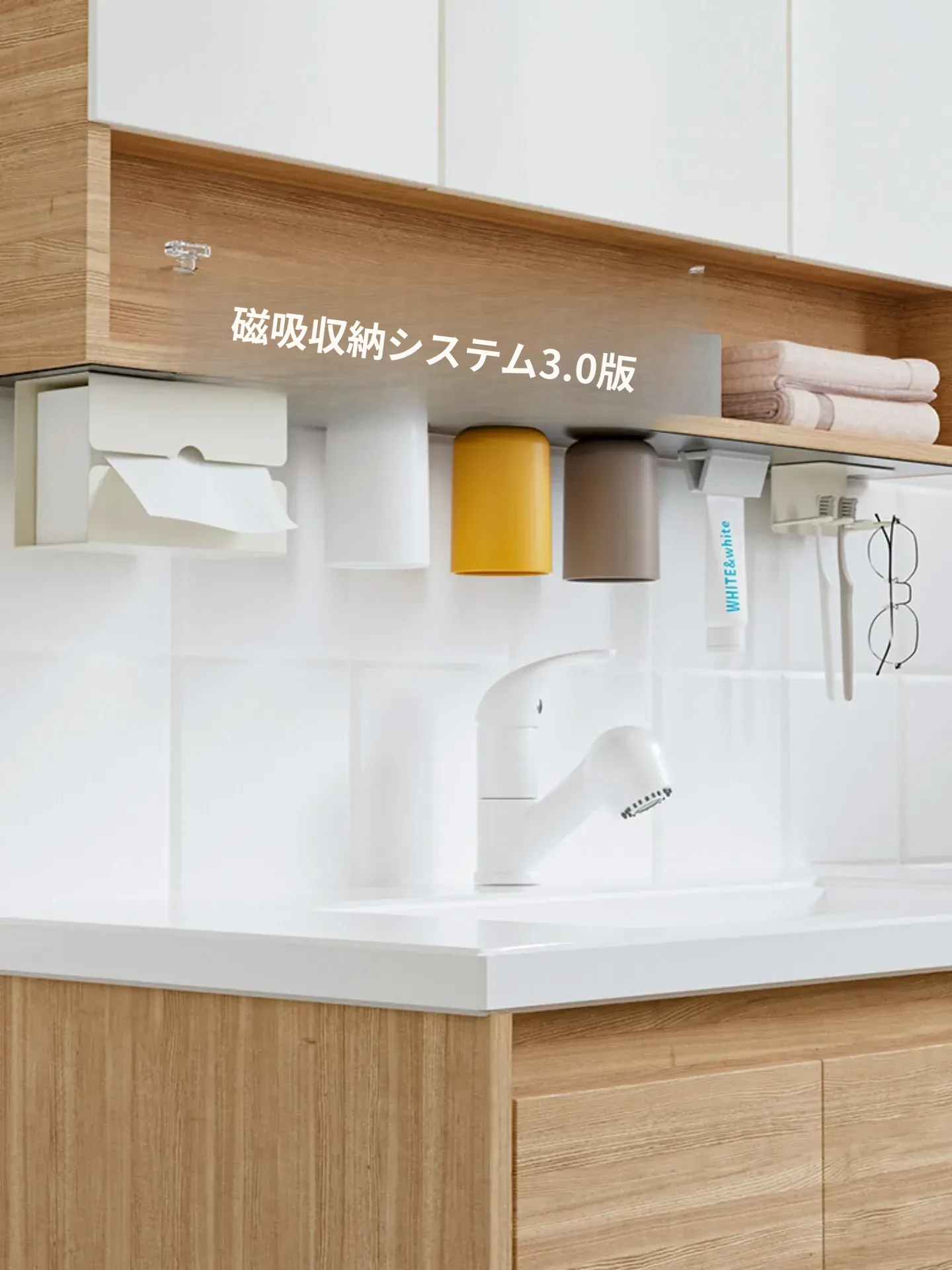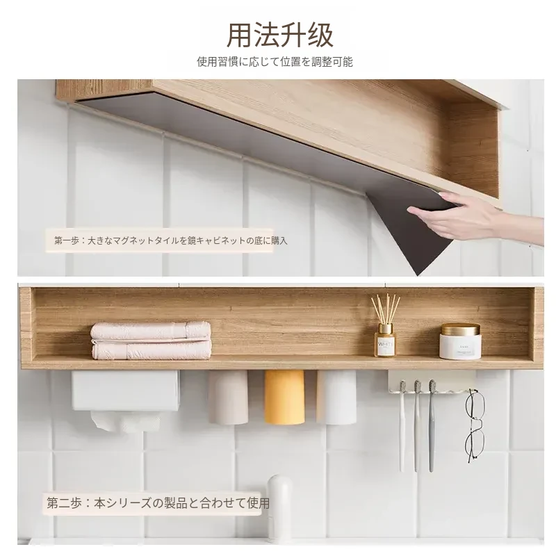 鏡面収納付きマグネット歯磨きカップ・壁掛け歯ブラシホルダー・逆さまに掛けられる洗面用具入れ・便利なティッシュボックス!洗面所をスッキリ整頓して、毎日の身支度を楽しく!
