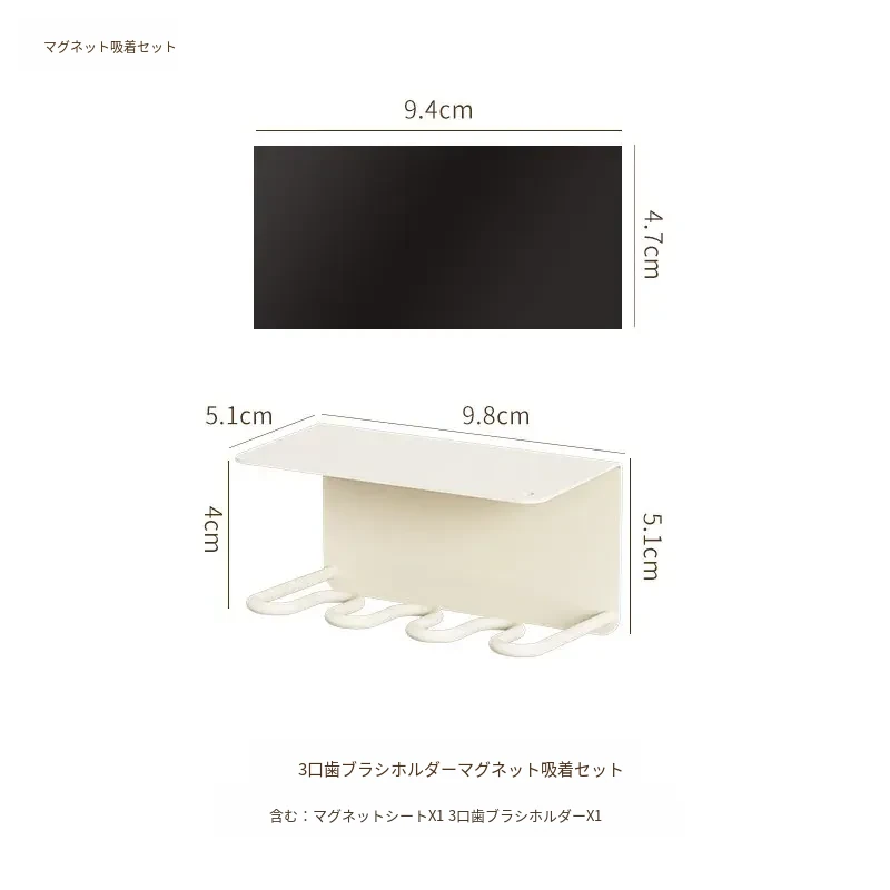 マグネット吸引セットB:シンプルなうがいカップx2+3口歯ブラシホルダー+大サイズ洗顔タオルボックス+MXLマグネットシールx3