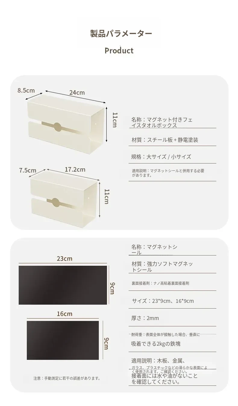 【2セット】マグネット小サイズ洗顔タオルボックスセット