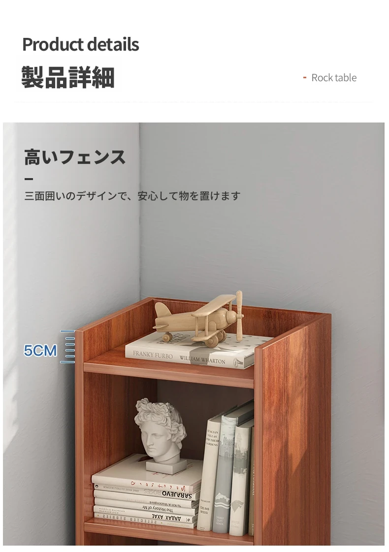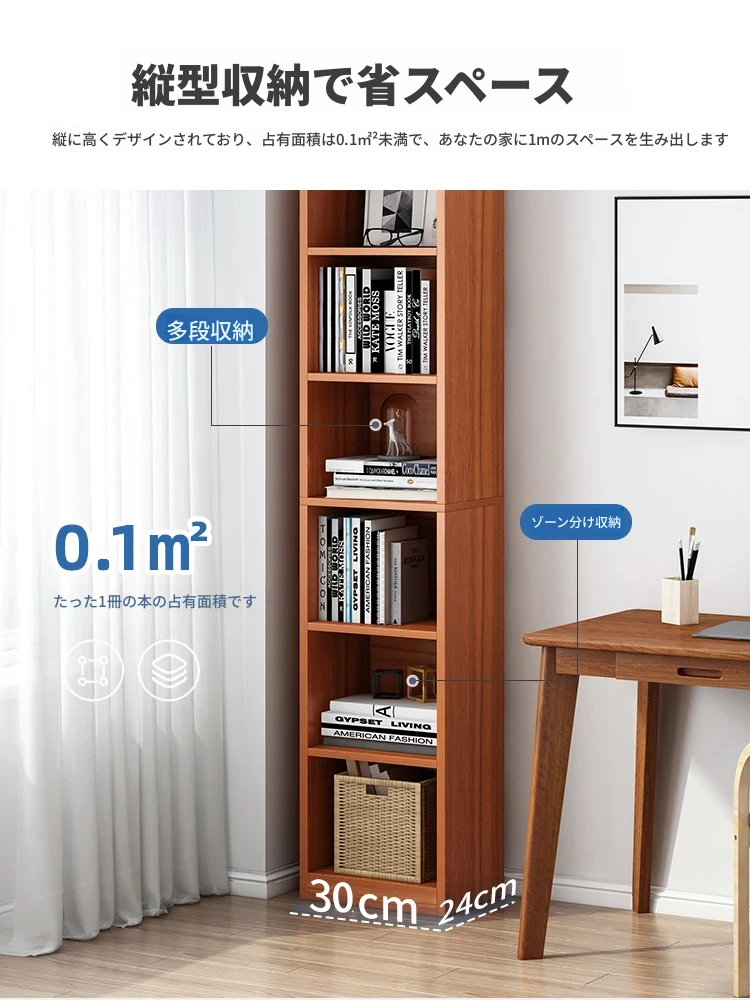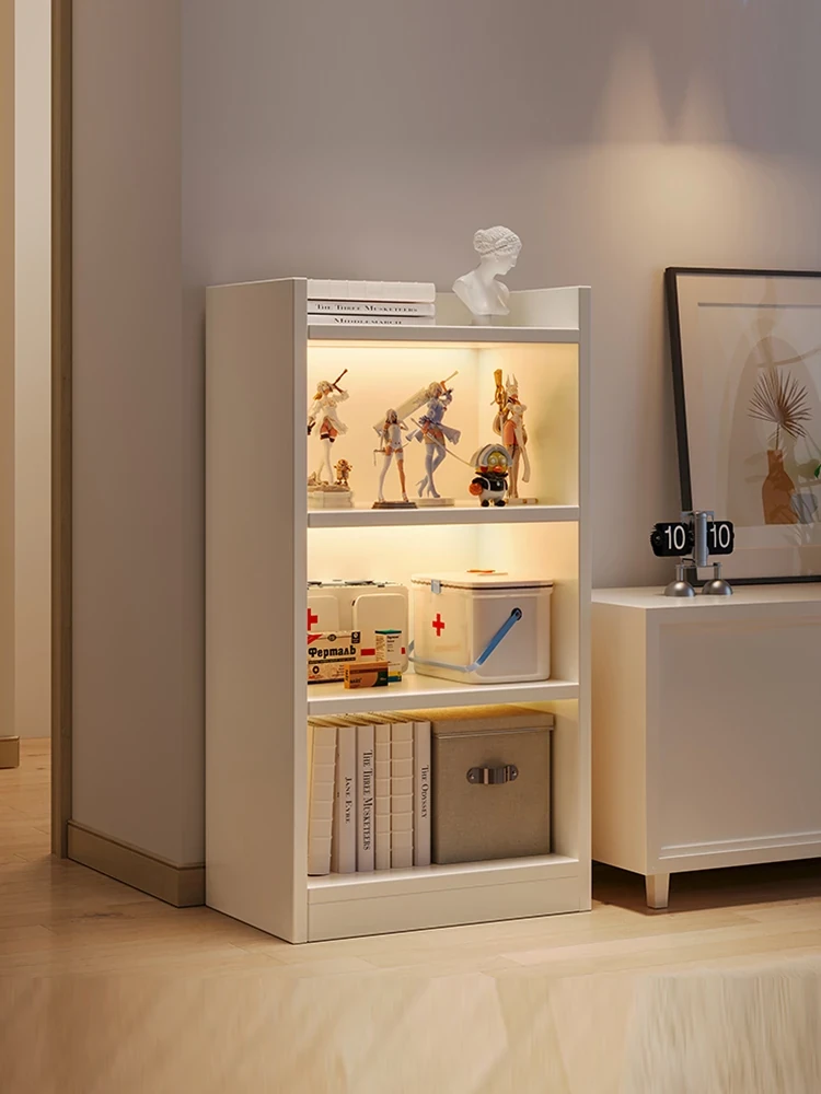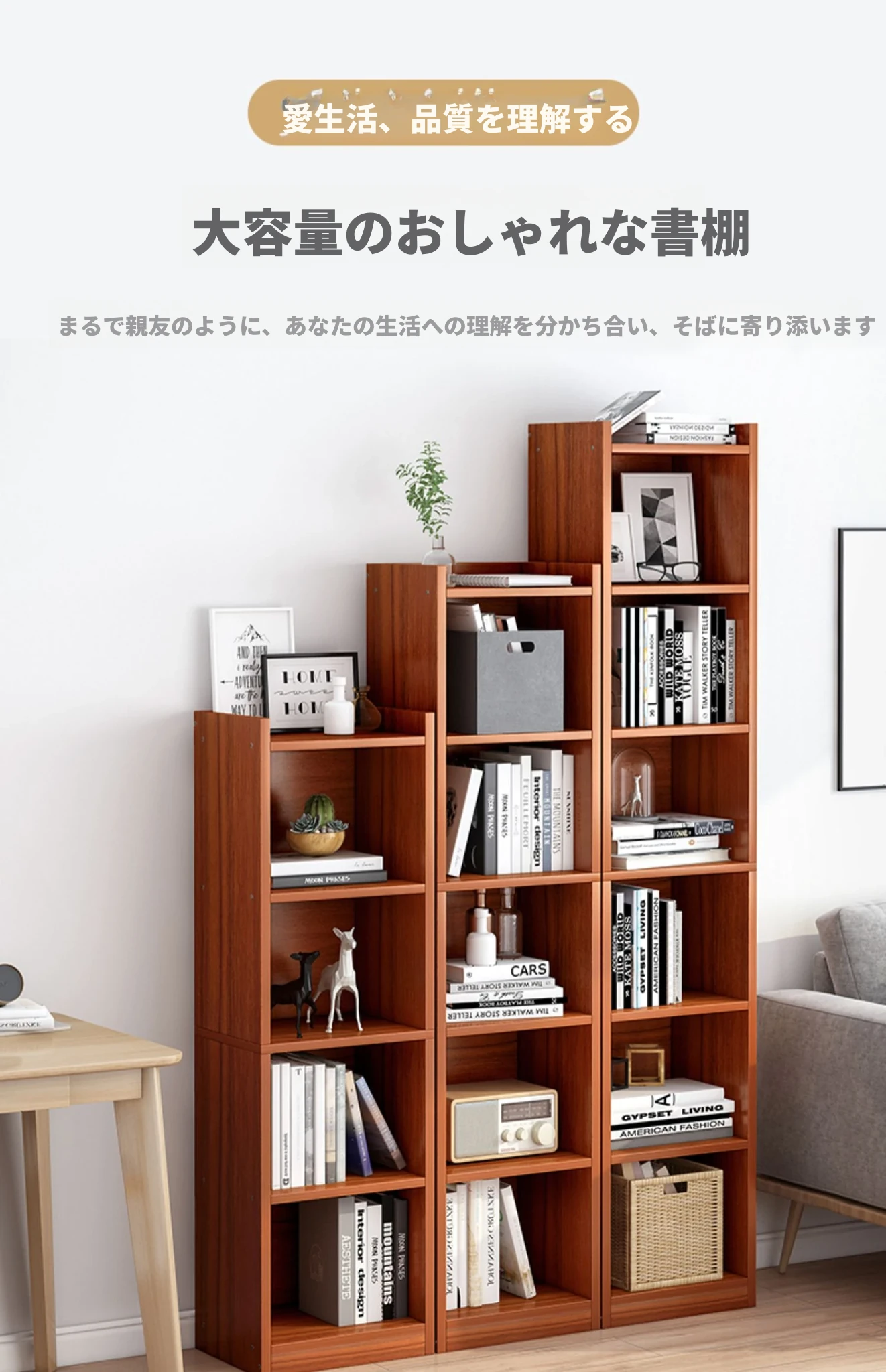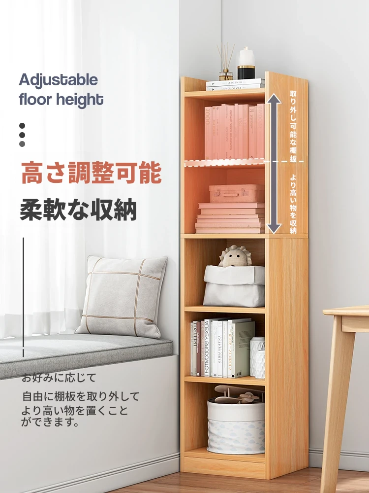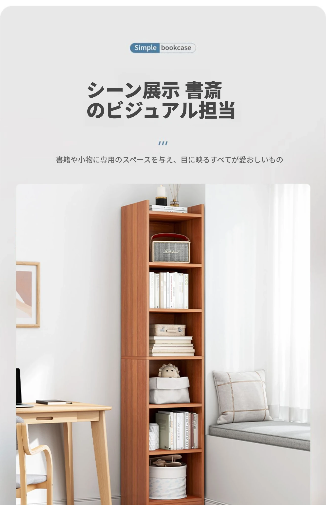 シンプルでスタイリッシュな立ち上がり書棚 - コンパクトな収納力で狭い隙間にもぴったり!寝室やリビングに最適な小型収納キャビネット。おしゃれな置物ラックとしても使えます!