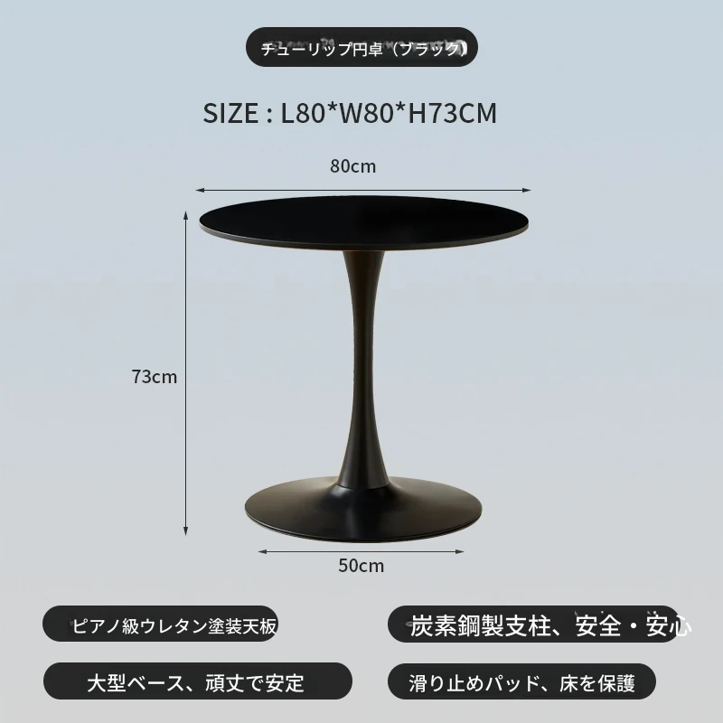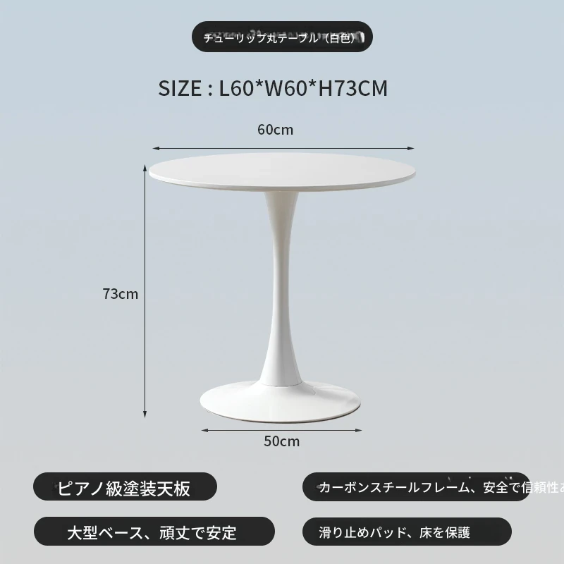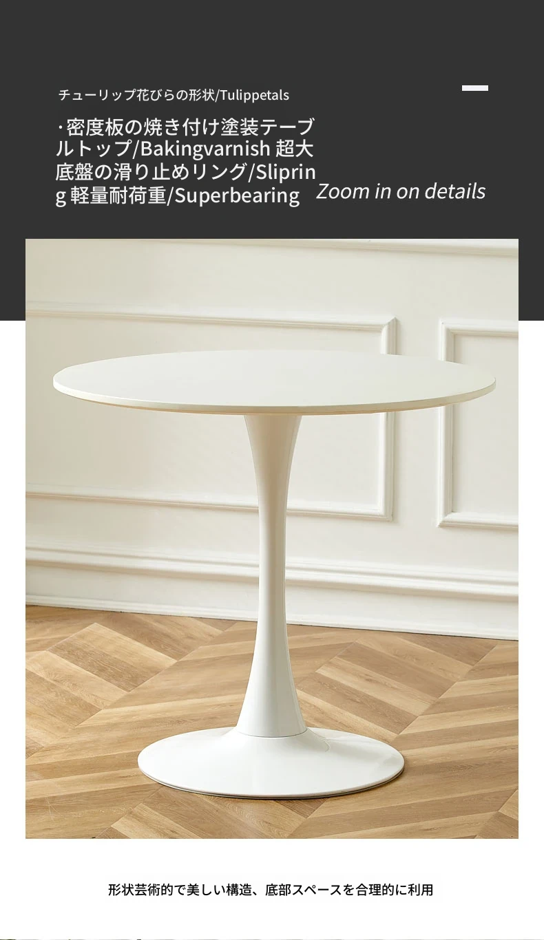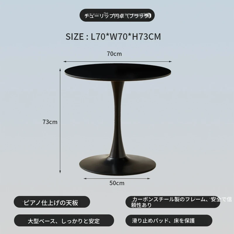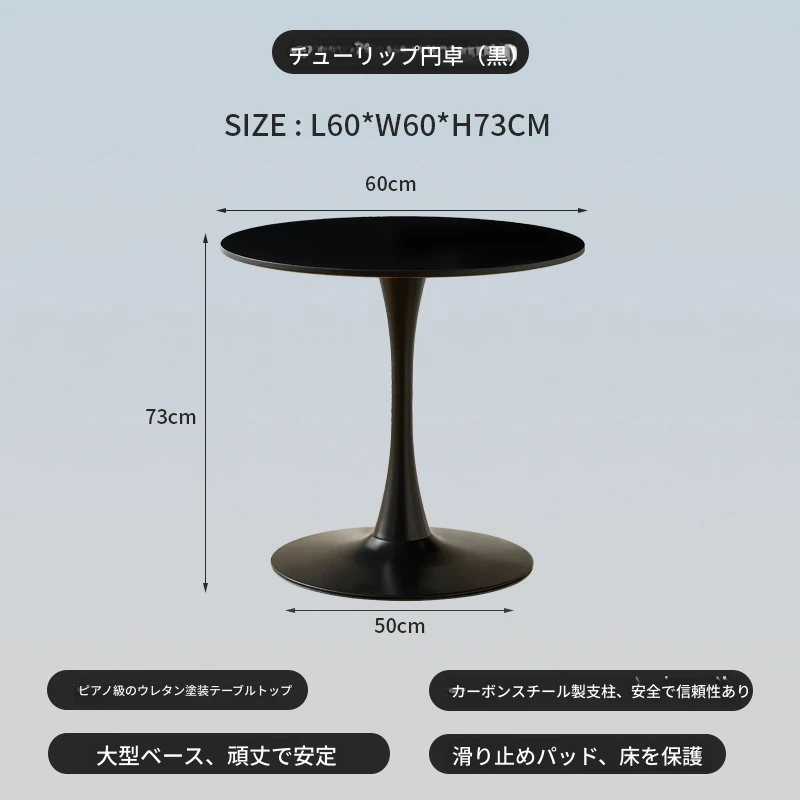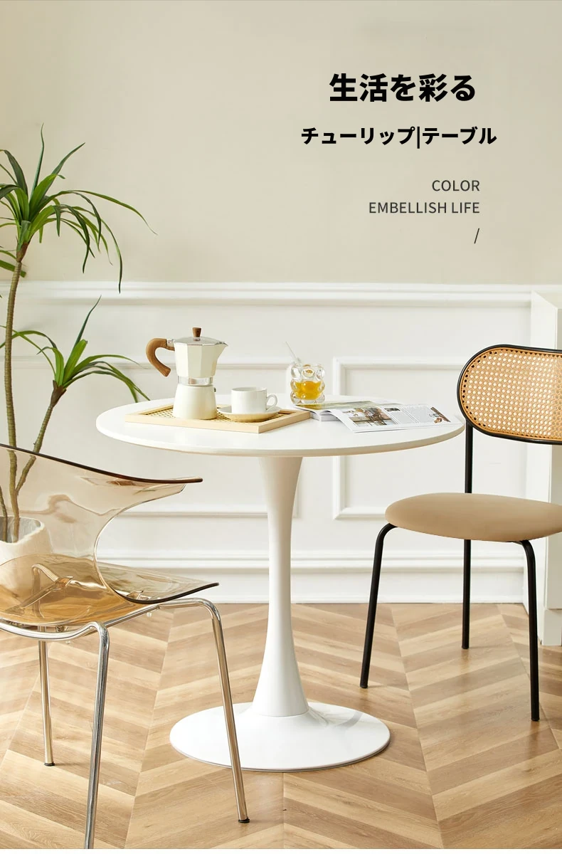 シンプルな円形テーブル|ホワイトチューリップスタイルのカジュアル談話テーブル|北欧デザインのブラックバルコニーテーブルセット|おしゃれで機能的なコーヒーテーブル【リラックス空間を演出】