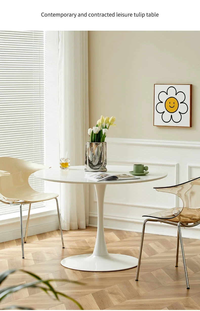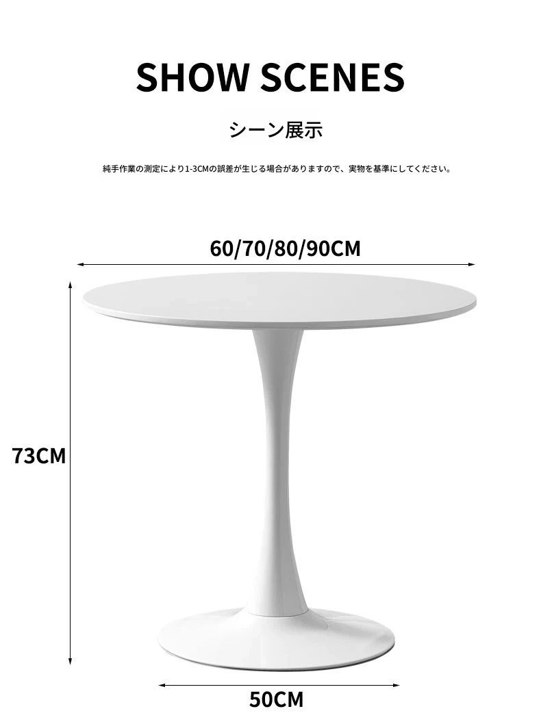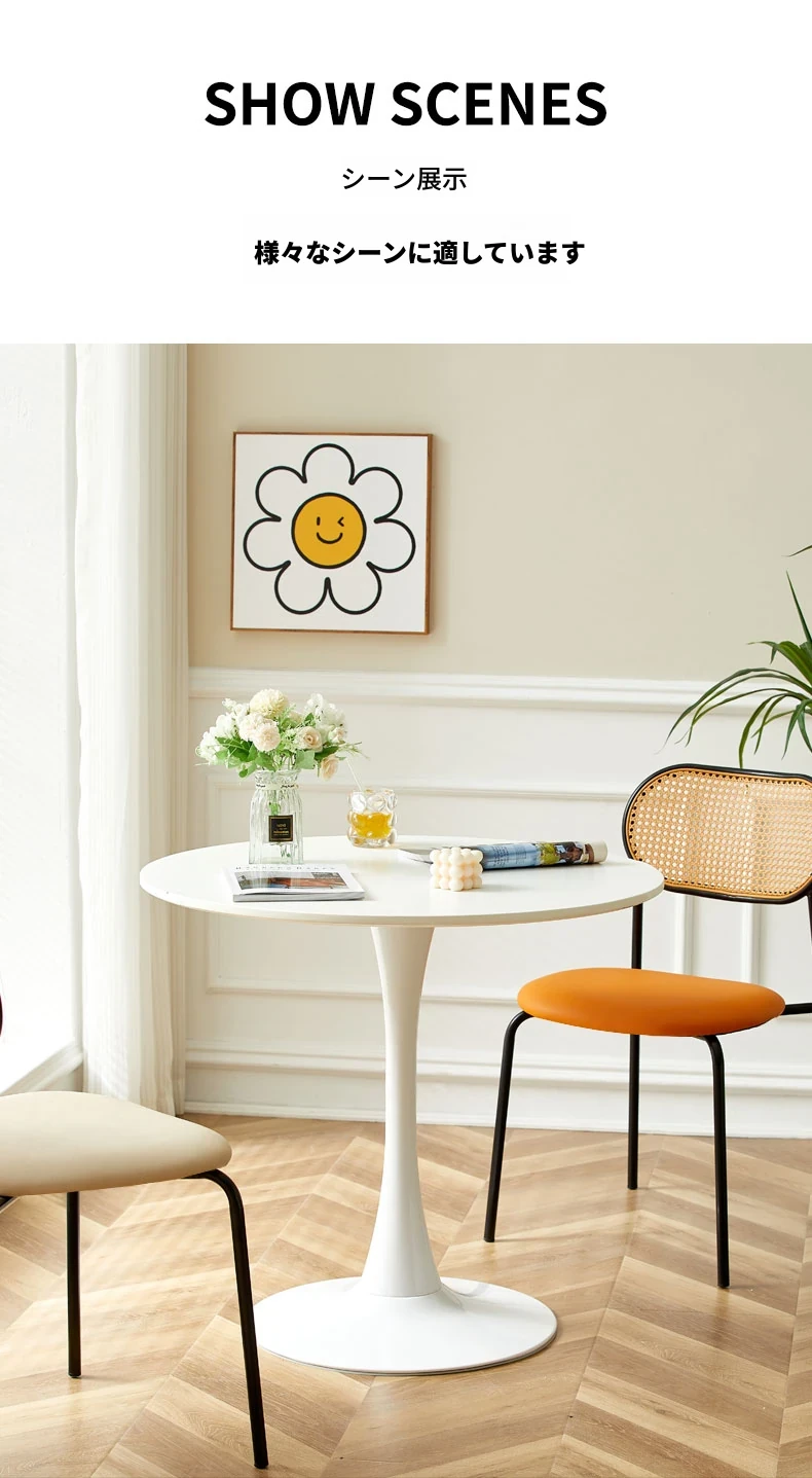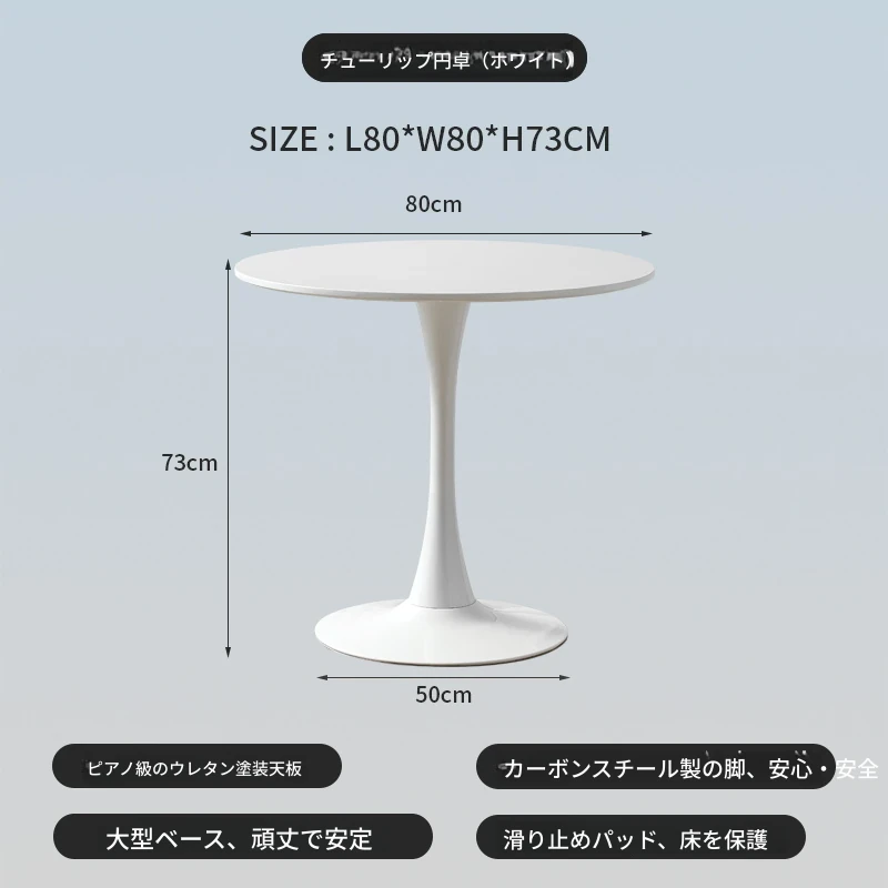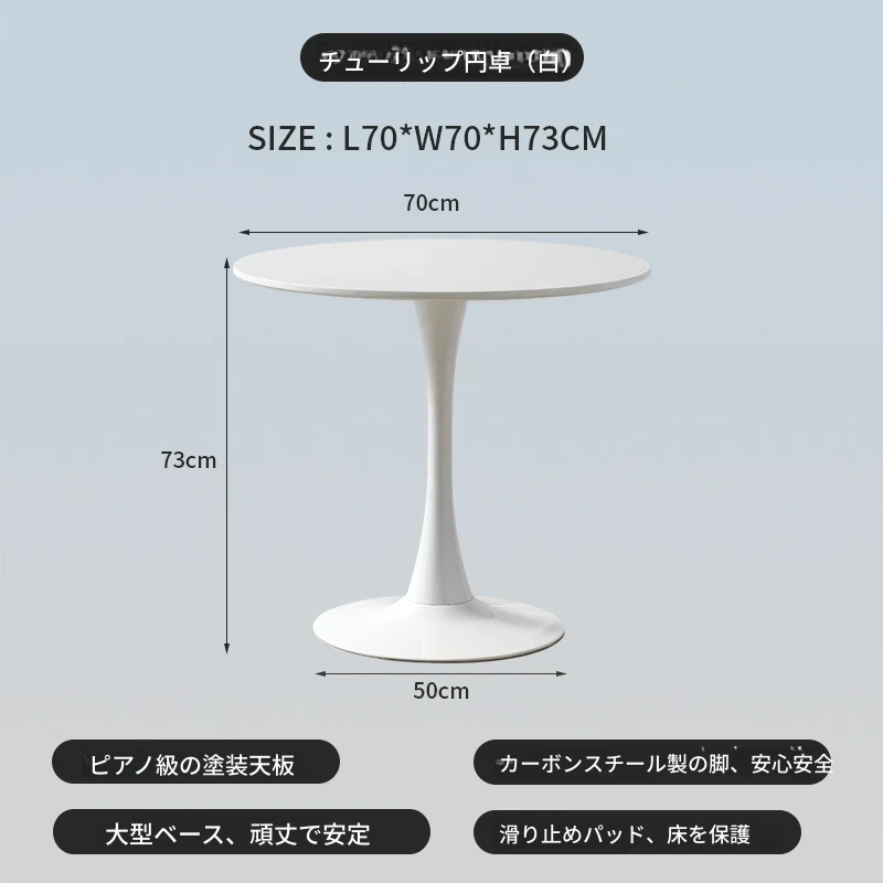 シンプルな円形テーブル|ホワイトチューリップスタイルのカジュアル談話テーブル|北欧デザインのブラックバルコニーテーブルセット|おしゃれで機能的なコーヒーテーブル【リラックス空間を演出】