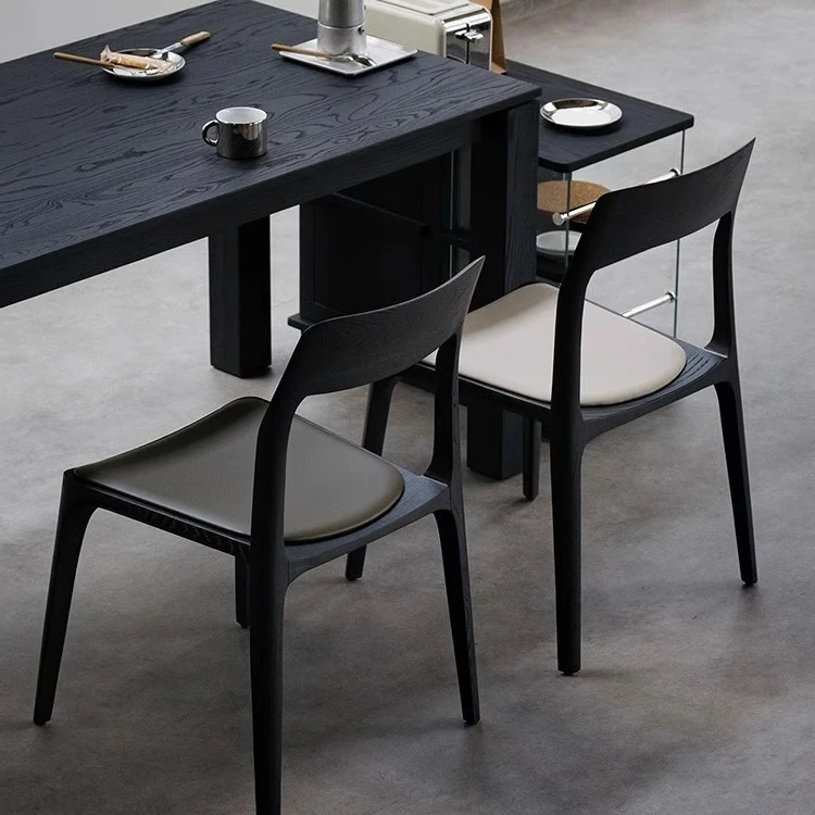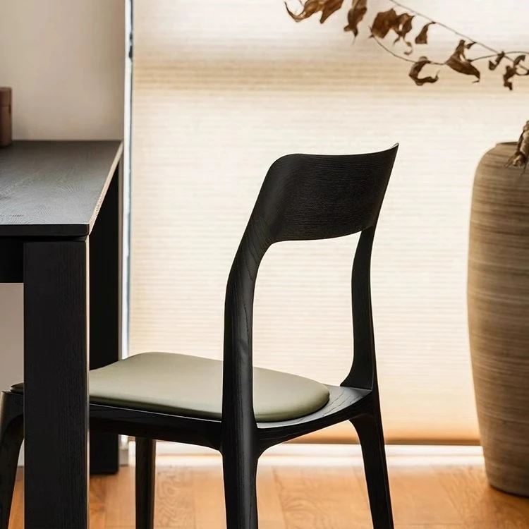 中古侘寂風の無垢材ダイニングチェア|シンプルで洗練されたデザイン|長時間座っても快適な背もたれ|高品質の本革を使用|ホテルや家庭にぴったりの洽談用スツール