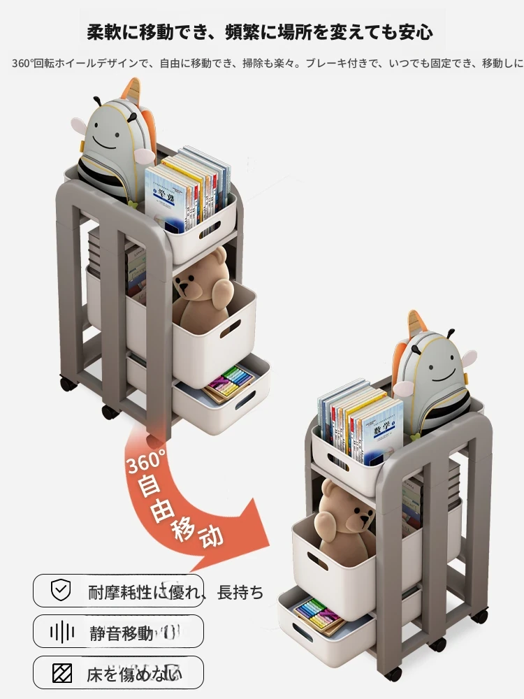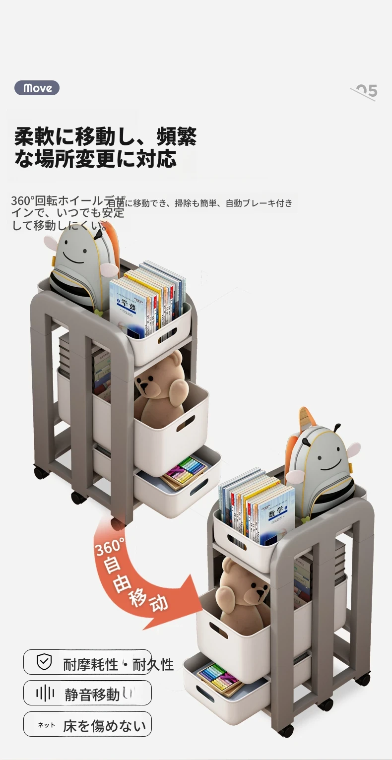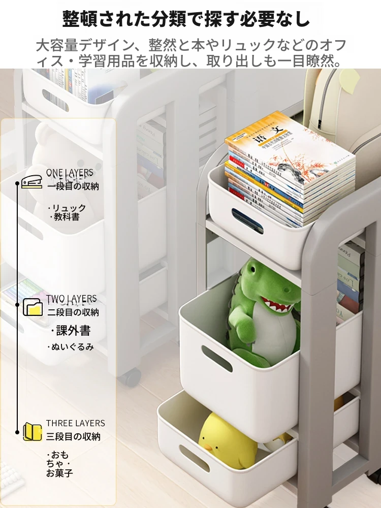 移動式書類収納ラック!シンプルでスタイリッシュなデザインで、オフィスやデスク下のスペースを有効活用。書籍や文具をすっきり整理できる便利アイテムです!