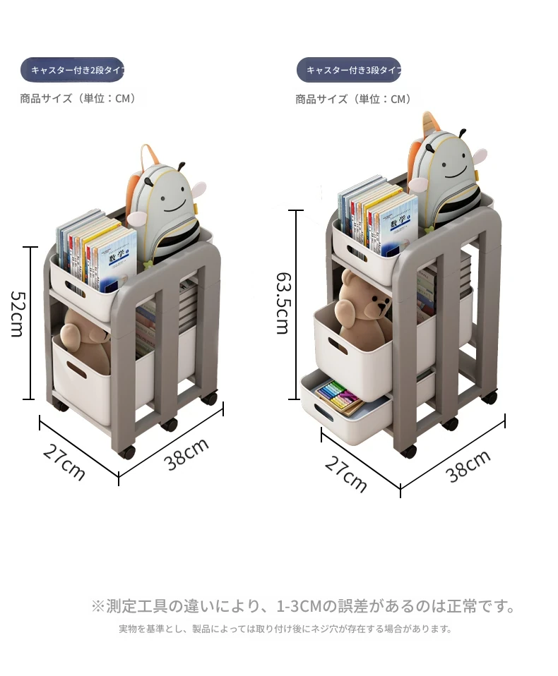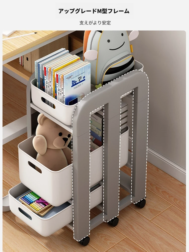 Mフレームのアップグレード-【3層キャスター付き】-グレー&ホワイト