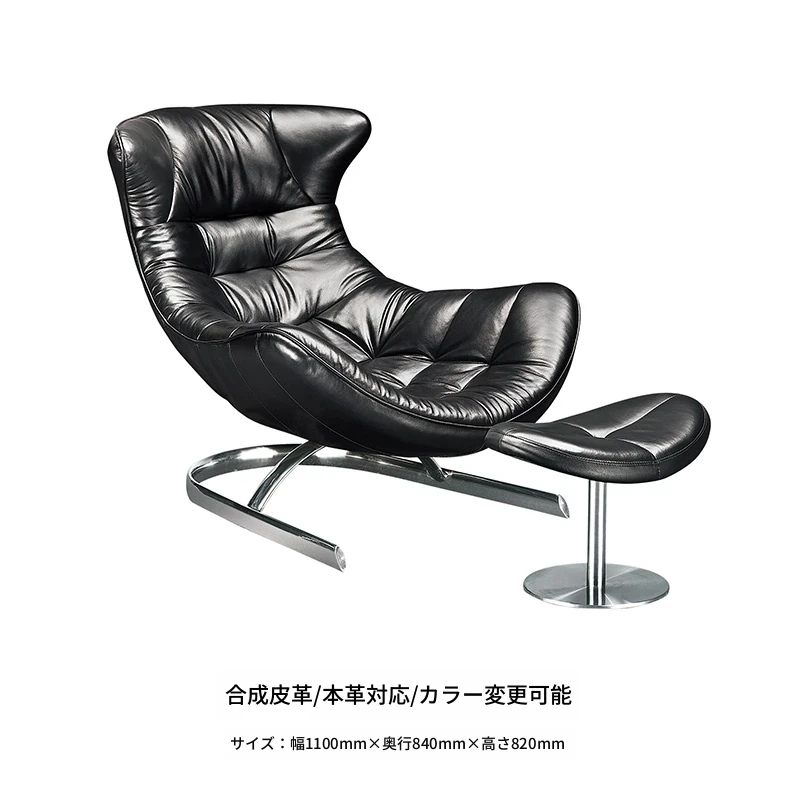 【Cタイプ接触面トップグレインレザー】ブラック1(フットスツール付き)