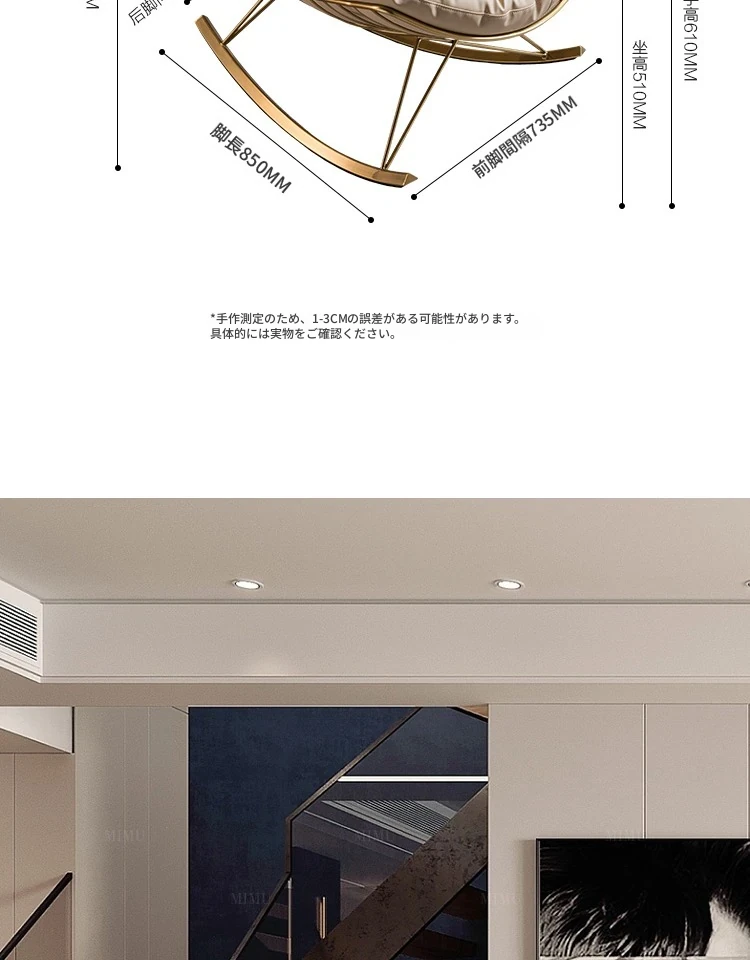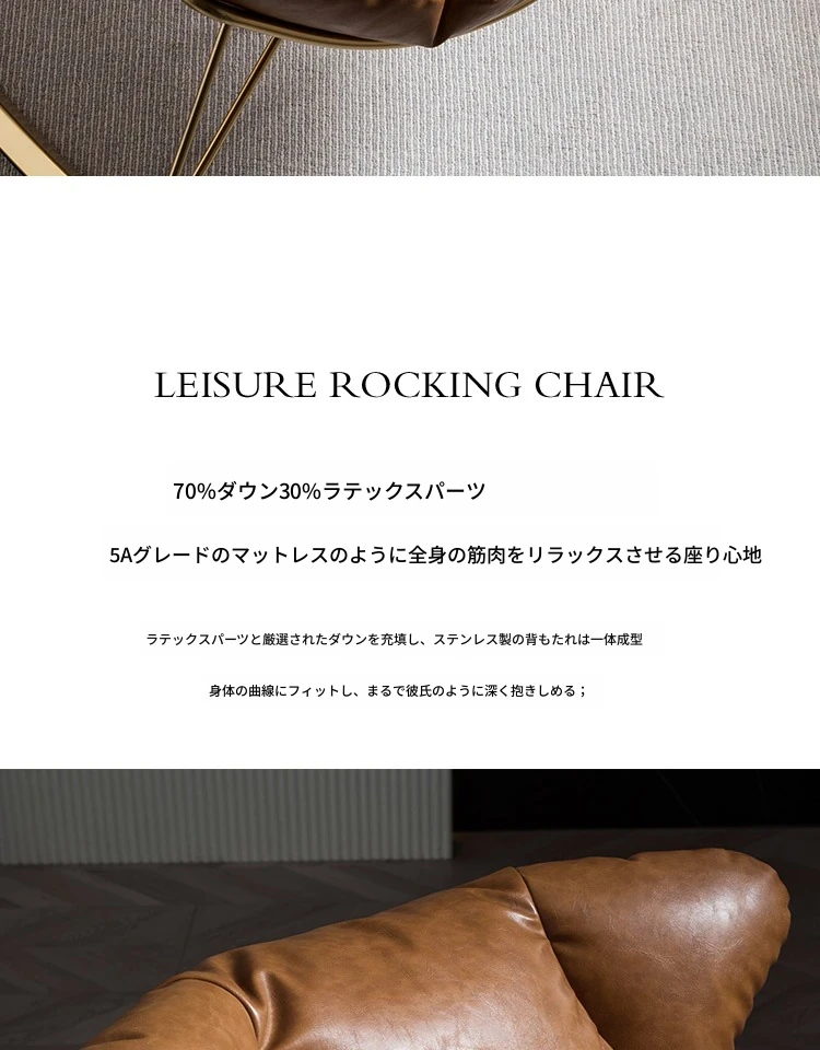 アメリカンスタイルのリビング用一人掛けソファチェア、バルコニーにぴったりのモダンミニマリストデザイン。優雅なヨーロピアンリラックスチェア、心地よい揺れで大人のくつろぎを実現!