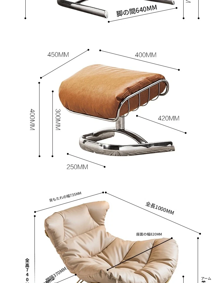 Aタイプ椅子+フットスツール【接触面本革】