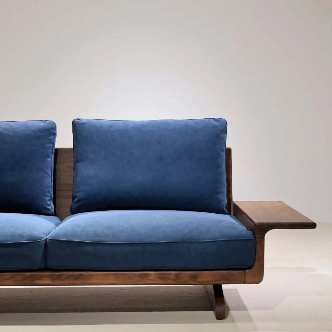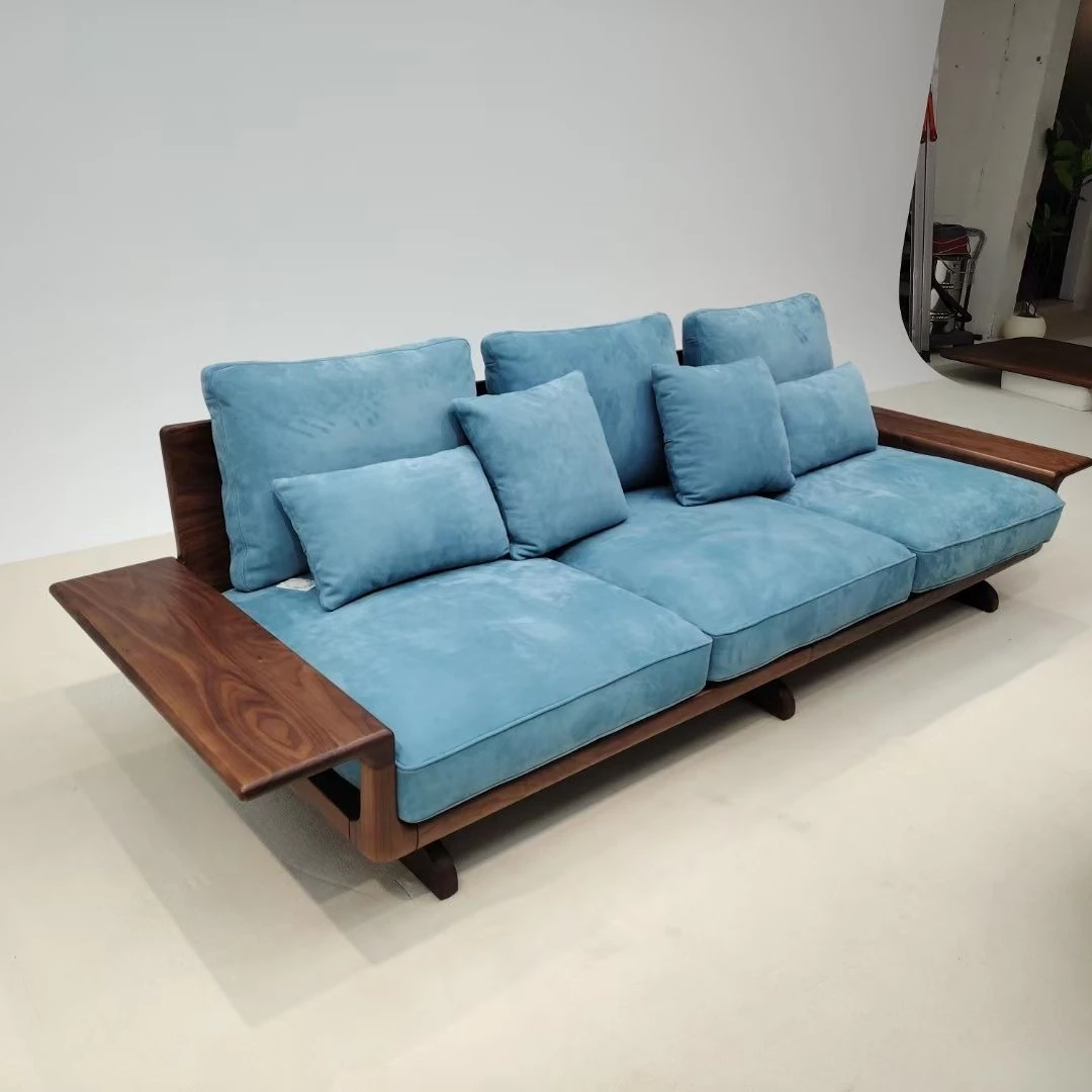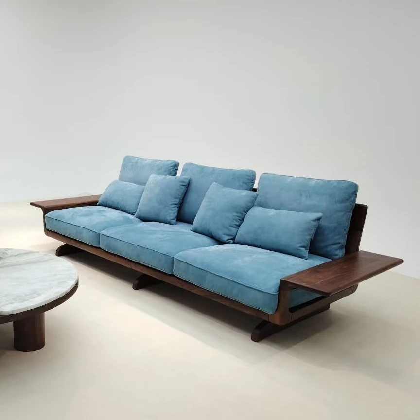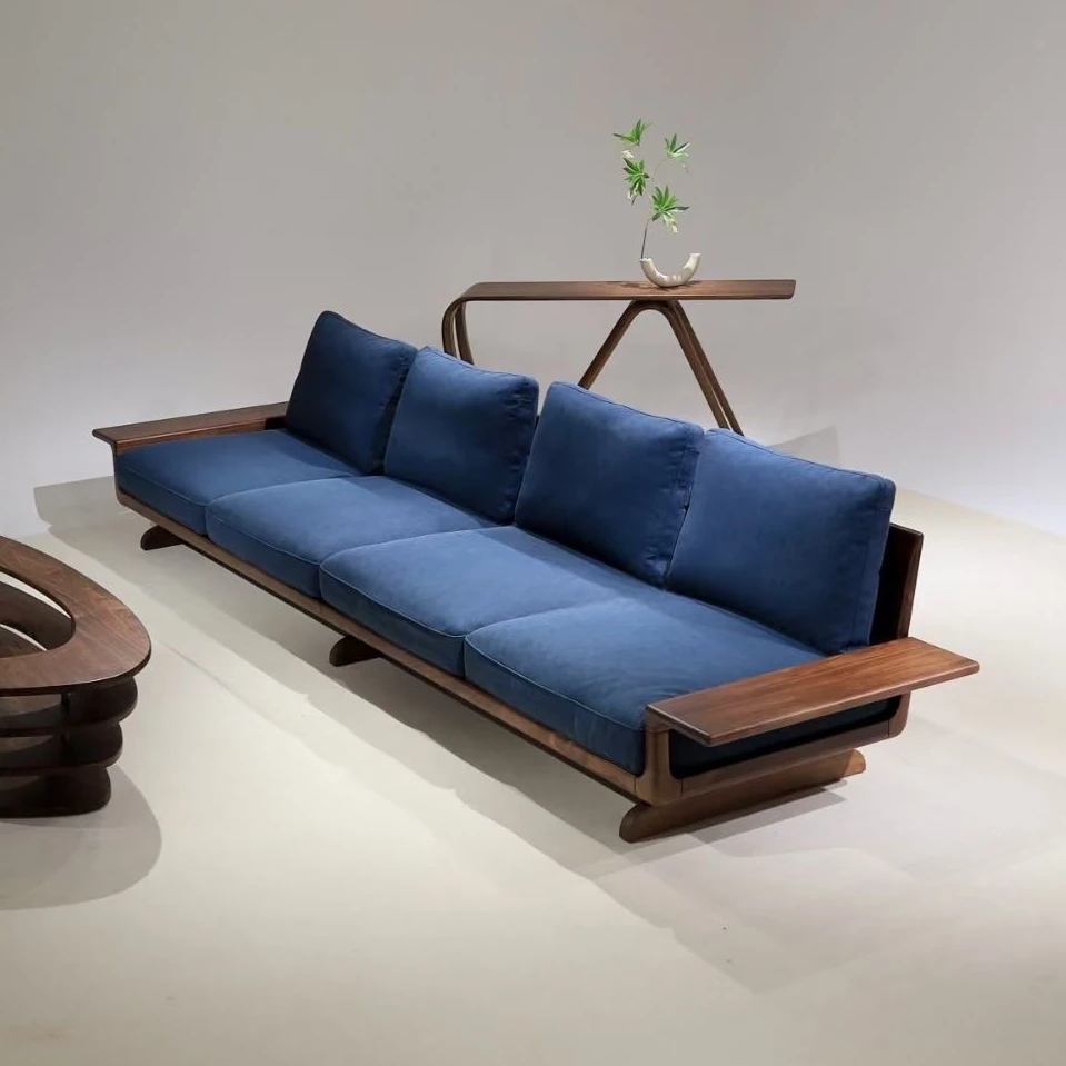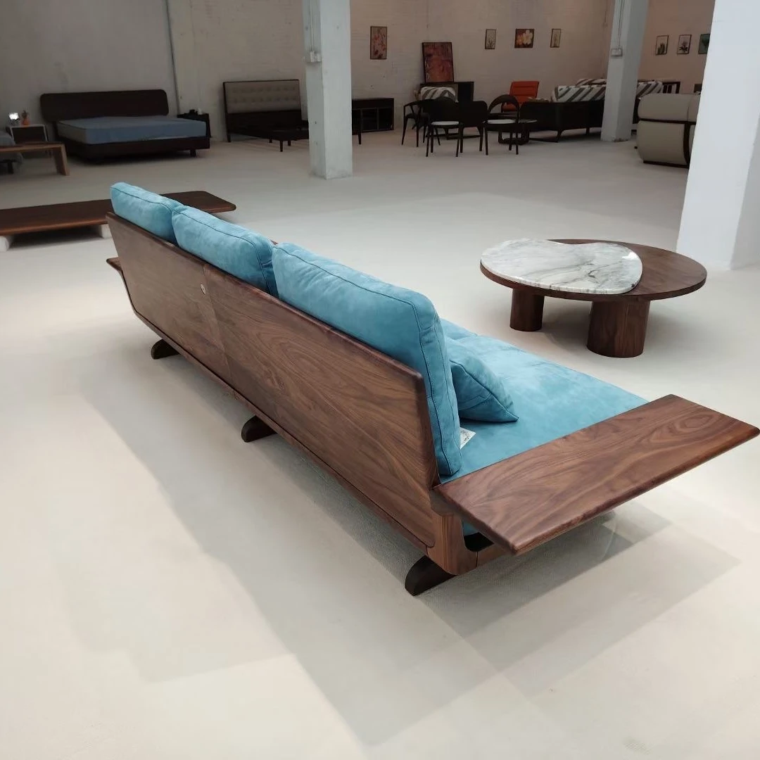 新中式デザインの無垢材ソファセット|モダンリビングに最適な黒胡桃木製|高級感あふれる3人掛けソファ|別荘や会所にぴったり|デザイナー特製の洗練されたスタイルをお楽しみください!