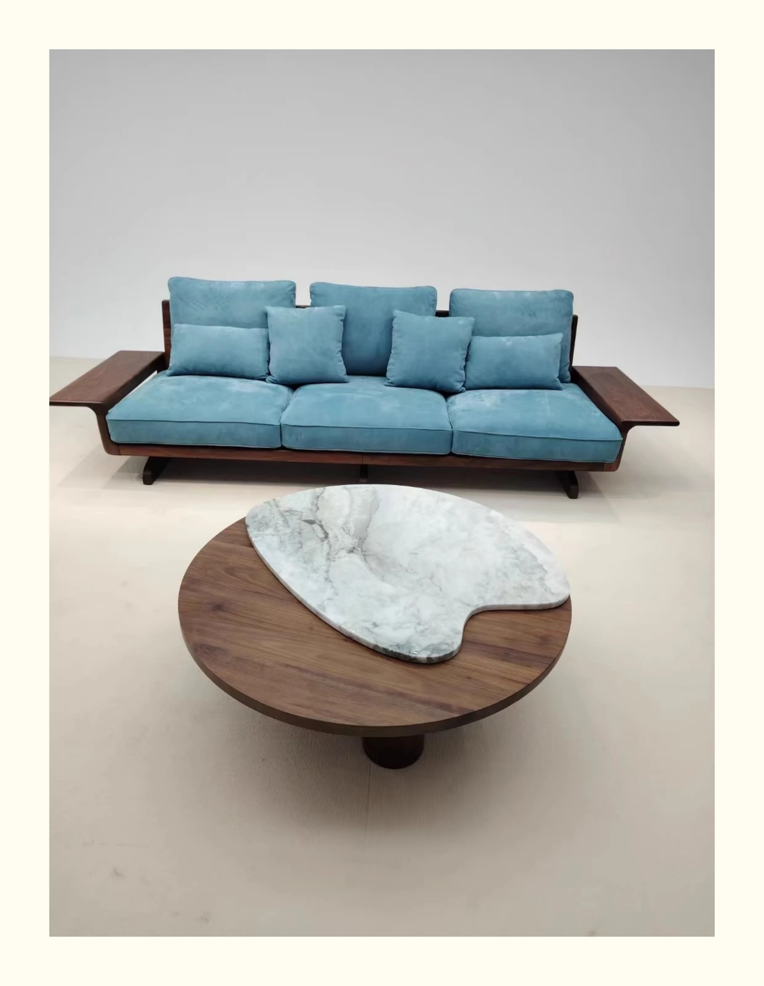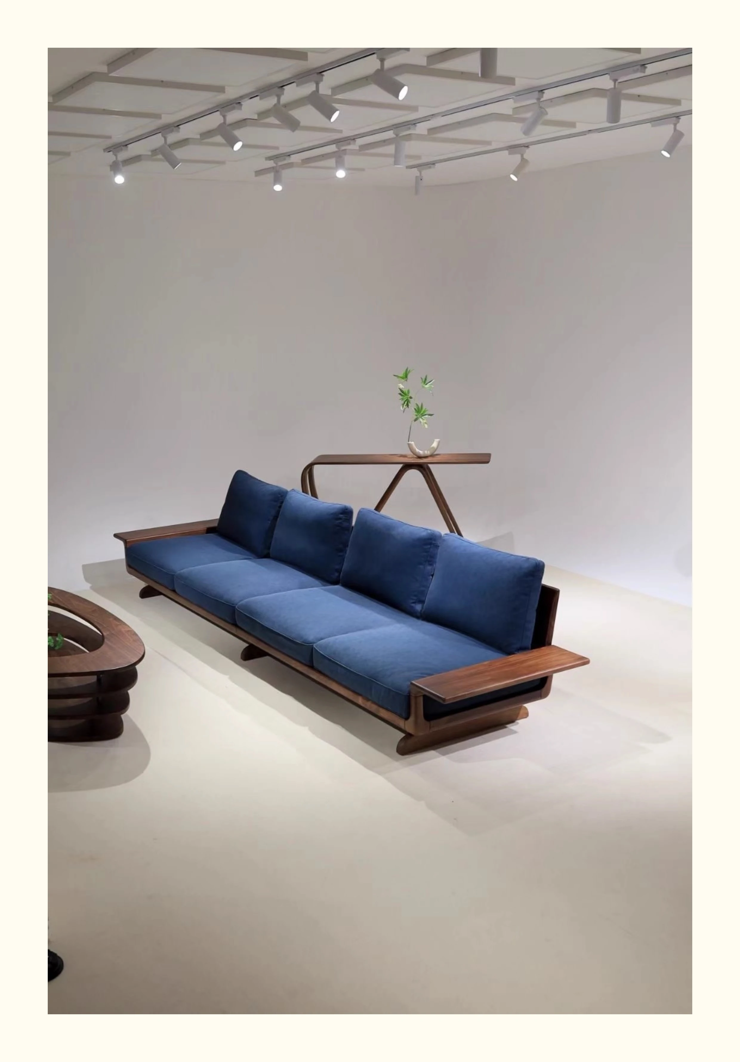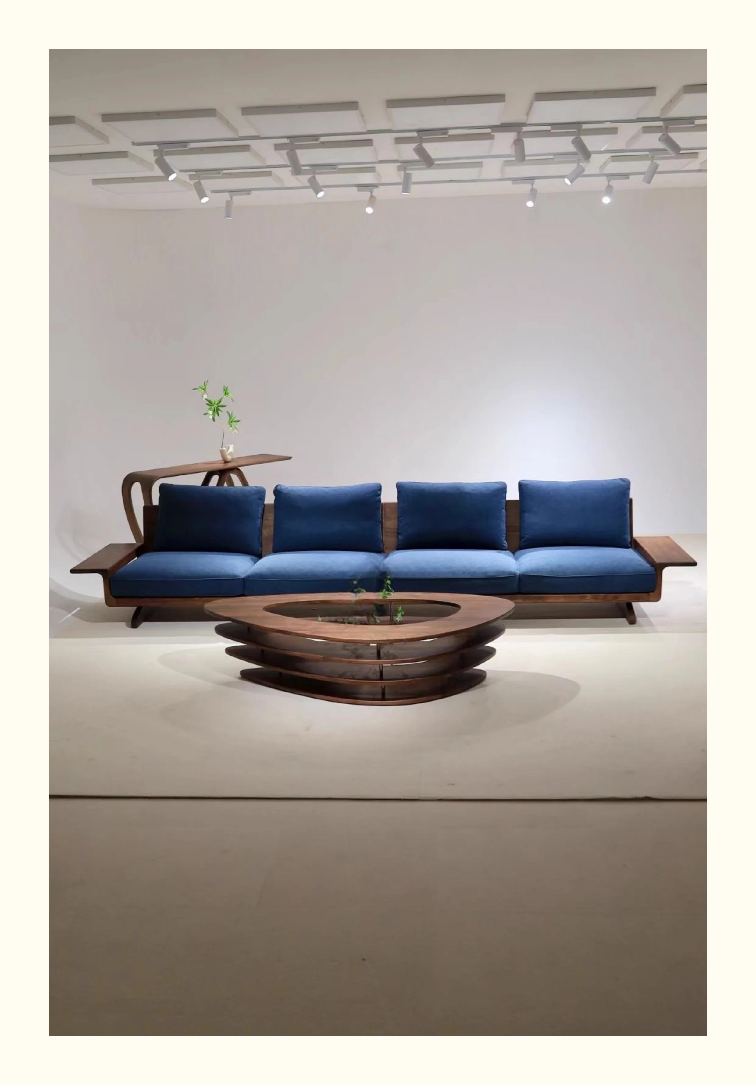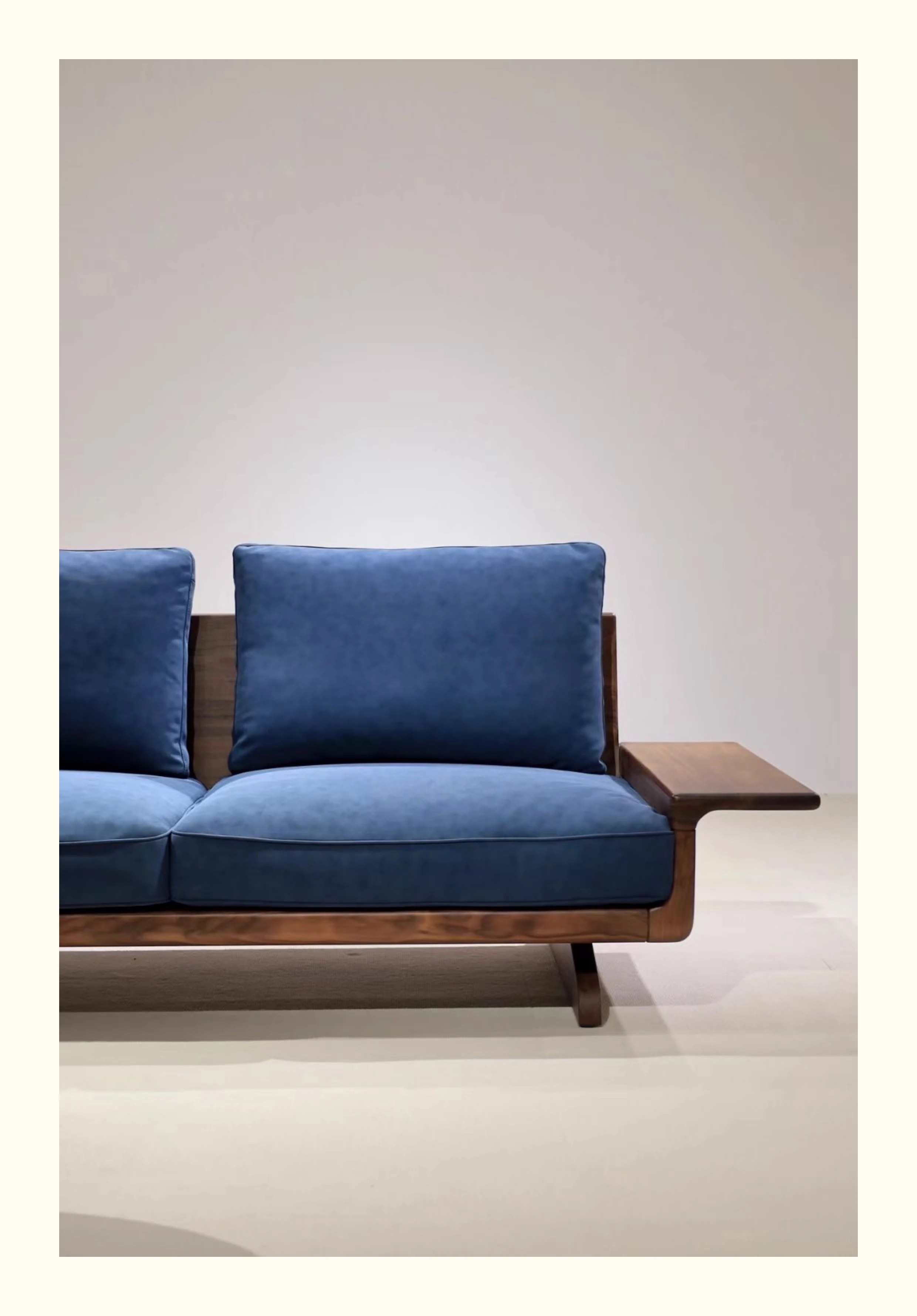 新中式デザインの無垢材ソファセット|モダンリビングに最適な黒胡桃木製|高級感あふれる3人掛けソファ|別荘や会所にぴったり|デザイナー特製の洗練されたスタイルをお楽しみください!