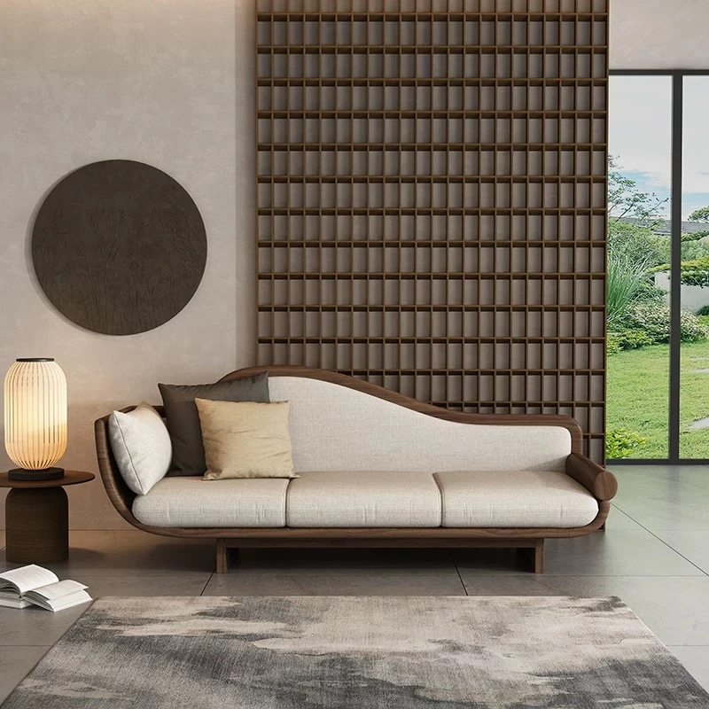 新中式デザインのブラックウォルナット製美人榻(貴妃ソファ) - 民宿やリビングにぴったりな布製家具。スタイリッシュなデザイナーが手掛けた、優雅で心地よい空間を演出する貴妃椅子。