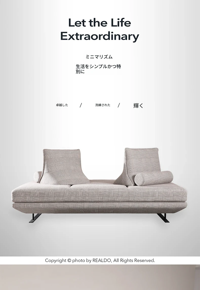 モダンでシンプルなイタリア製ファブリックソファ - 小さな部屋に最適!テクノロジー布使用の2人掛け、人気の軽奢スタイルで、リラクゼーションエリアや接待スペースにぴったりです。おしゃれで快適な空間を演出!