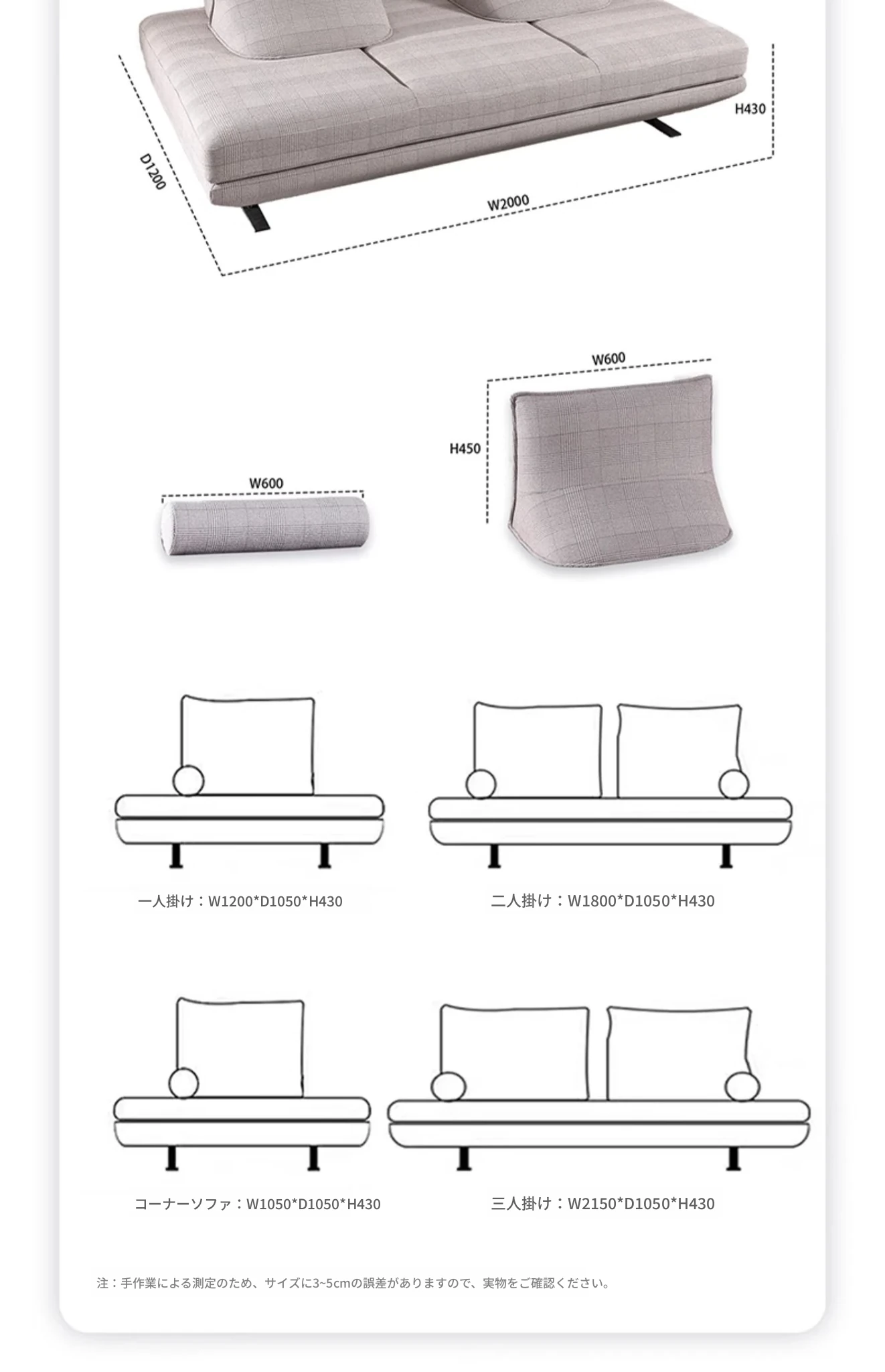 W215*D105*H43【スリー人】【MAYA特級ファブリック】