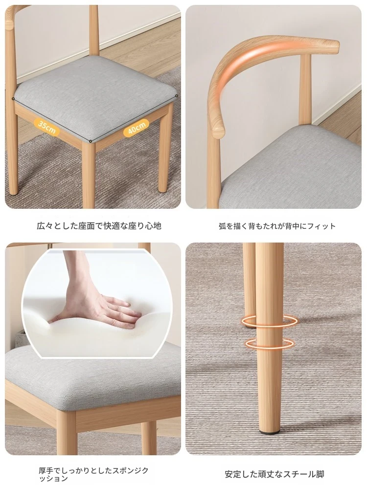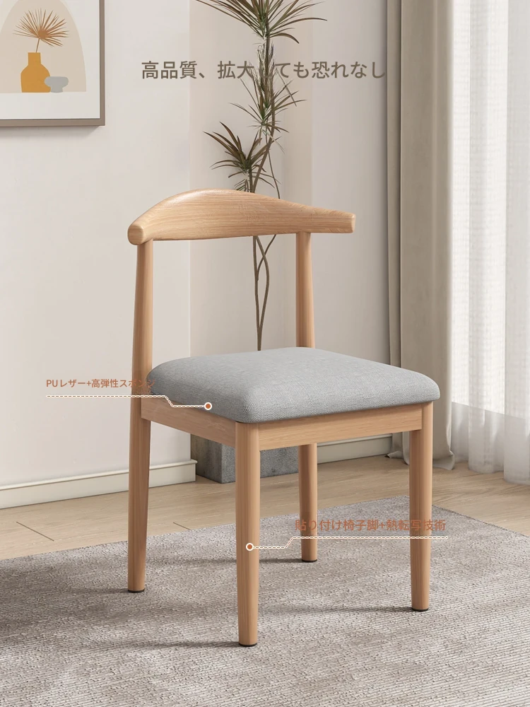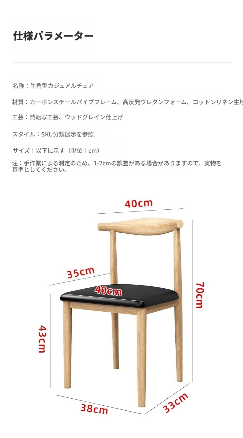 モダンな中華スタイルのシンプルなダイニングチェア - 小さなスペースに最適!食卓や寝室にぴったり、家庭用やファーストフード店にも最適なアイアン製のカウホーンチェア。スタイリッシュで機能的、あなたの空間を彩ります!