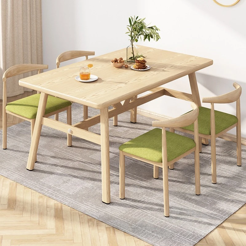 120*60ライトウッドテーブル+4脚グリーンレザー