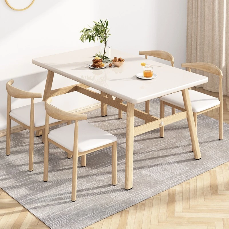 120*60ライトウッドテーブル+4脚ホワイトレザー
