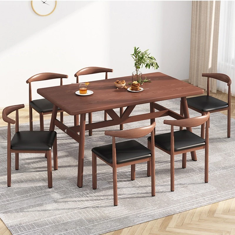 140*80ウォールナットテーブル+6脚ブラウンレザー