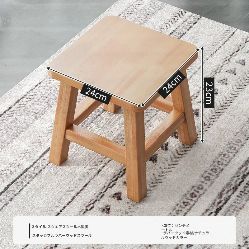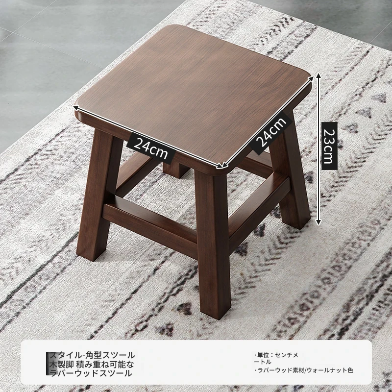 【動画と同じ-ラバーウッド】ウォールナット色の四角いスツール