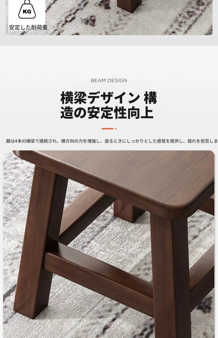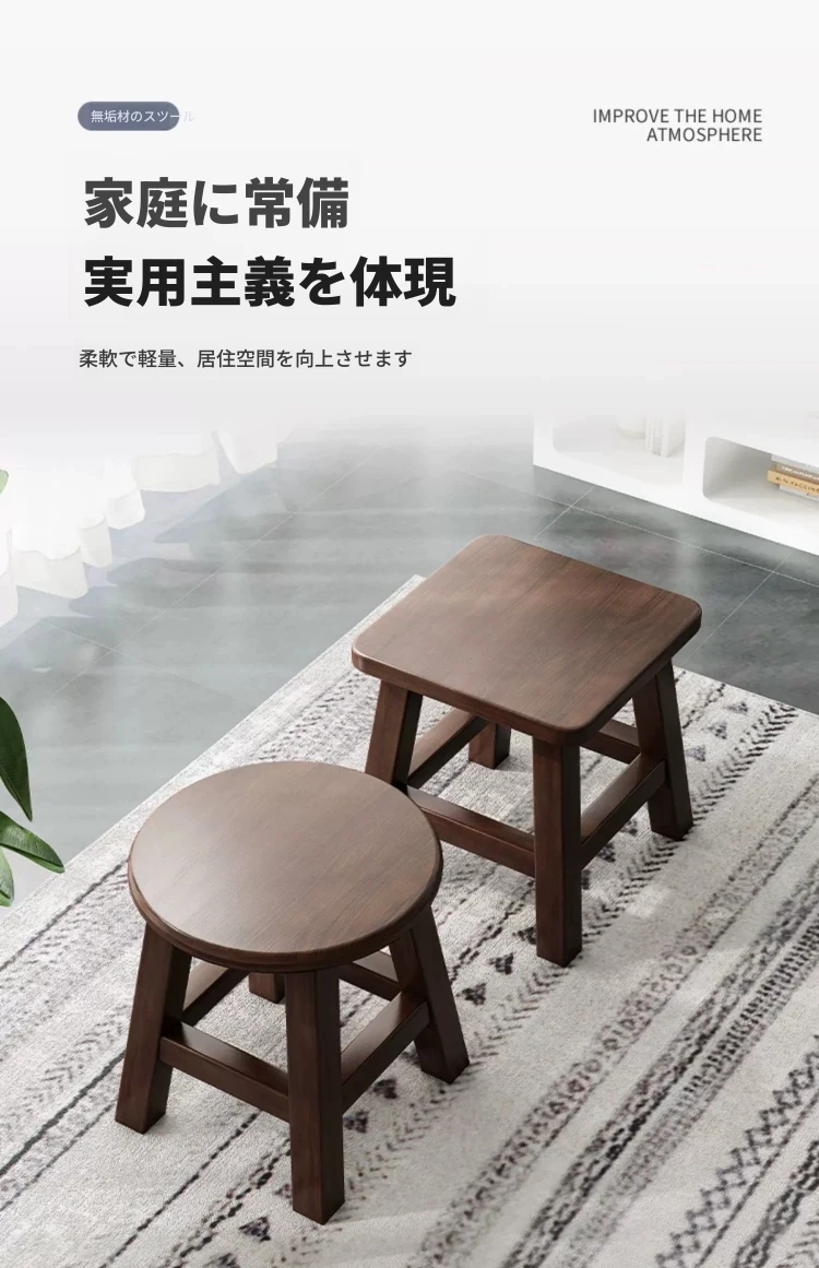 現代的シンプルなデザイン、玄関用ウォルナット色の無垢材・リビングにぴったりの一人用ダイニングスツール。スムーズな着脱が可能な靴置きとしても最適!おしゃれで機能的な生活空間を演出します。