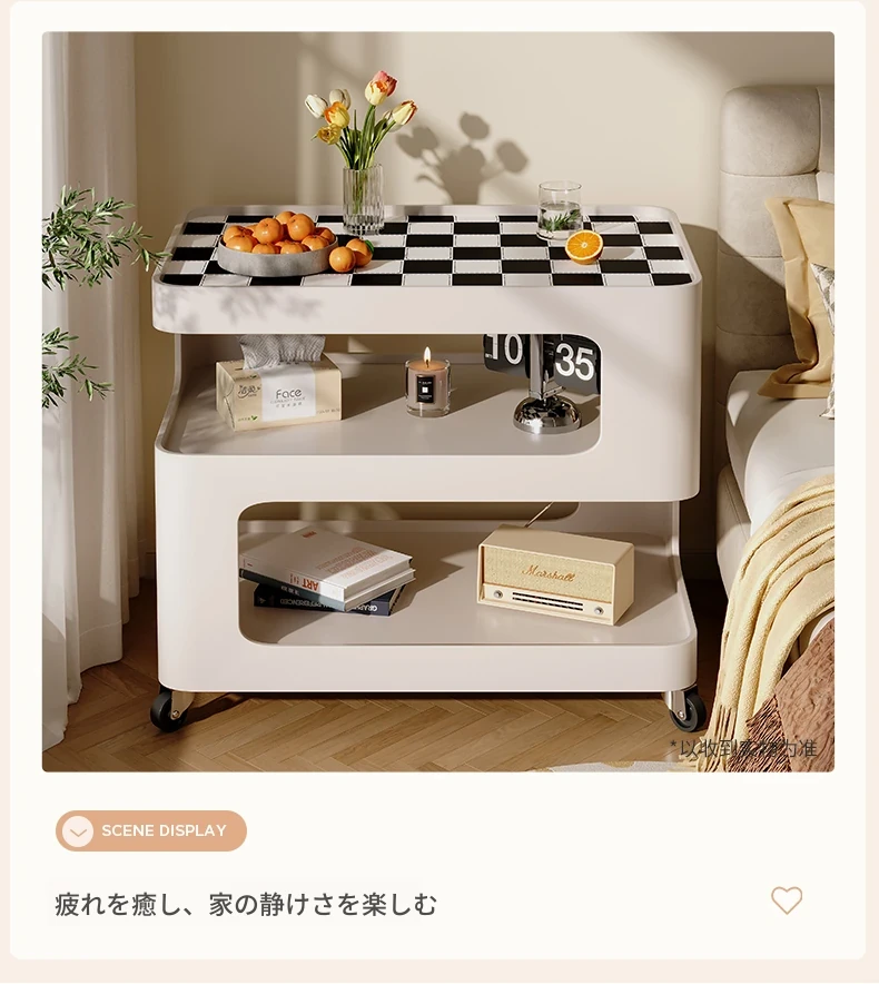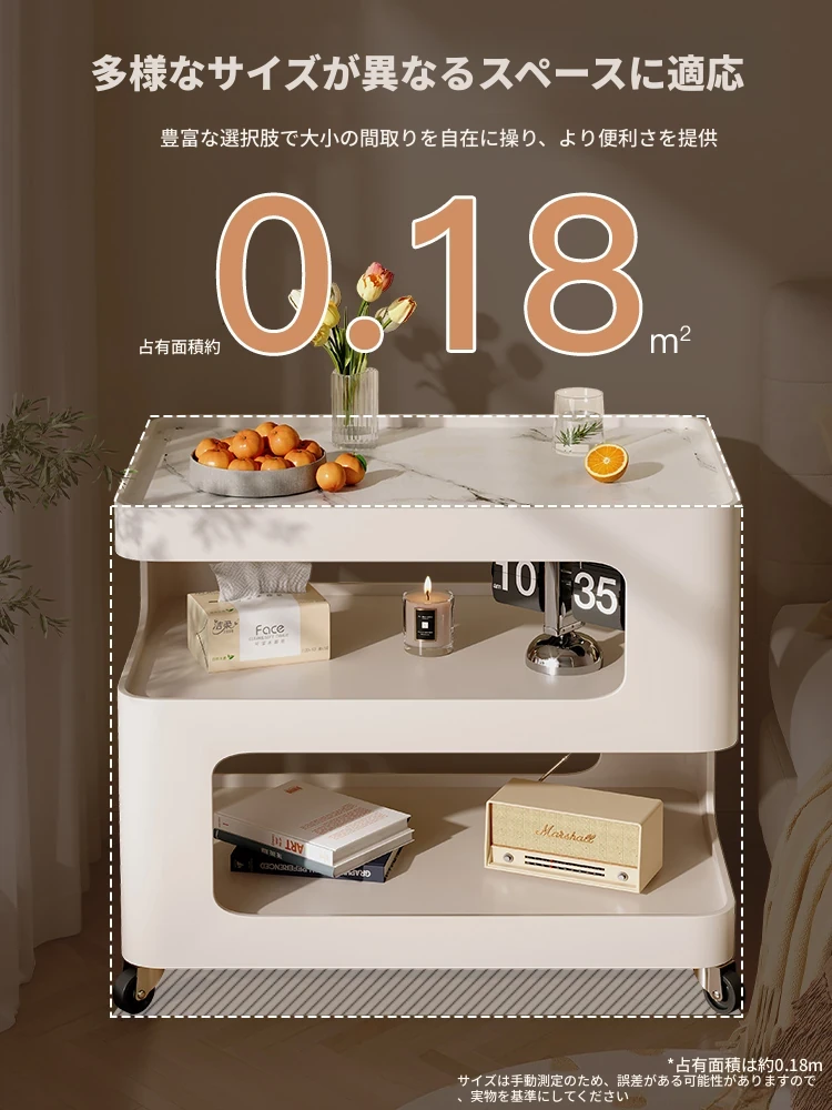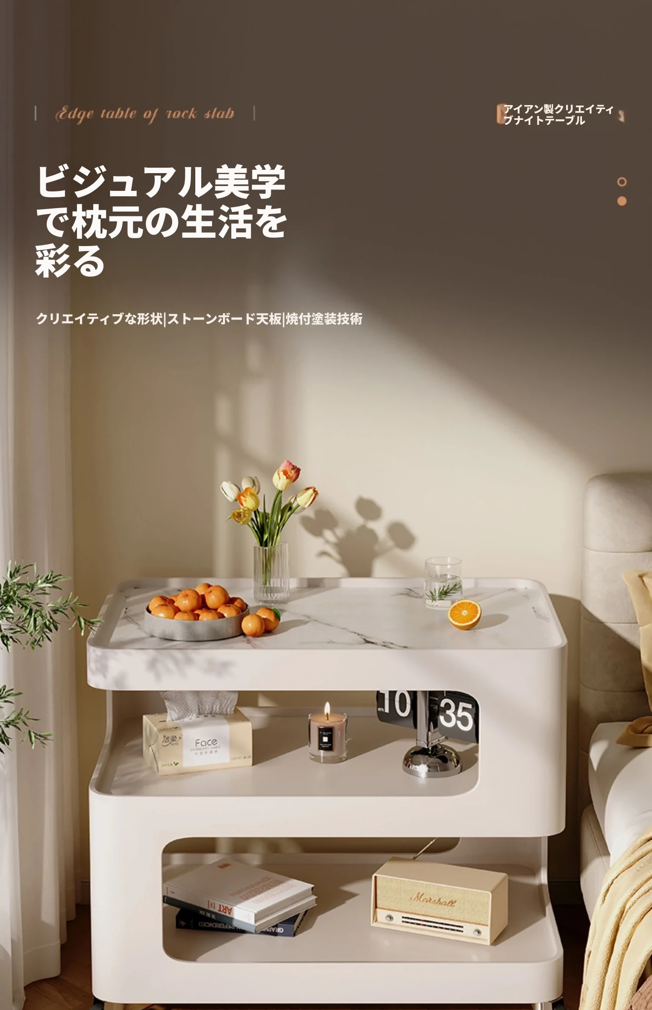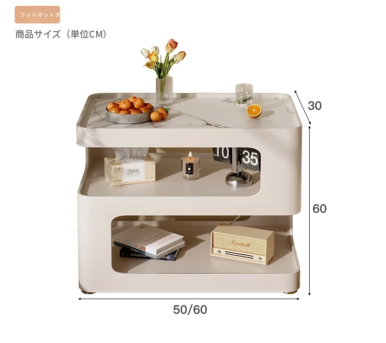 【キャスター付き】60*30*60CMクリームホワイト+雪山ホワイトストーンボード