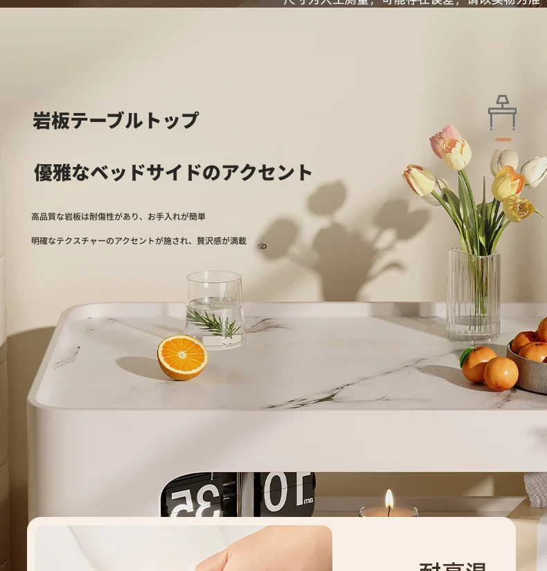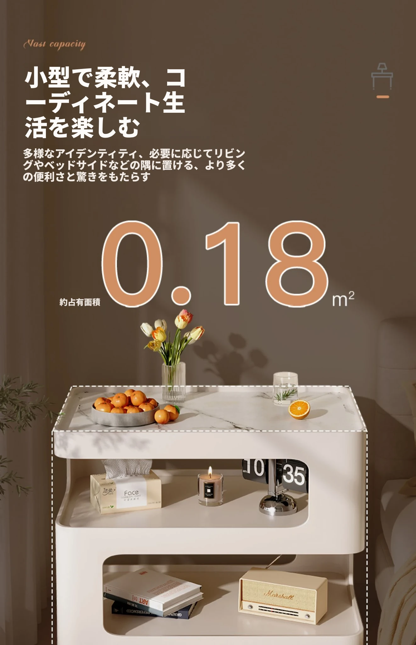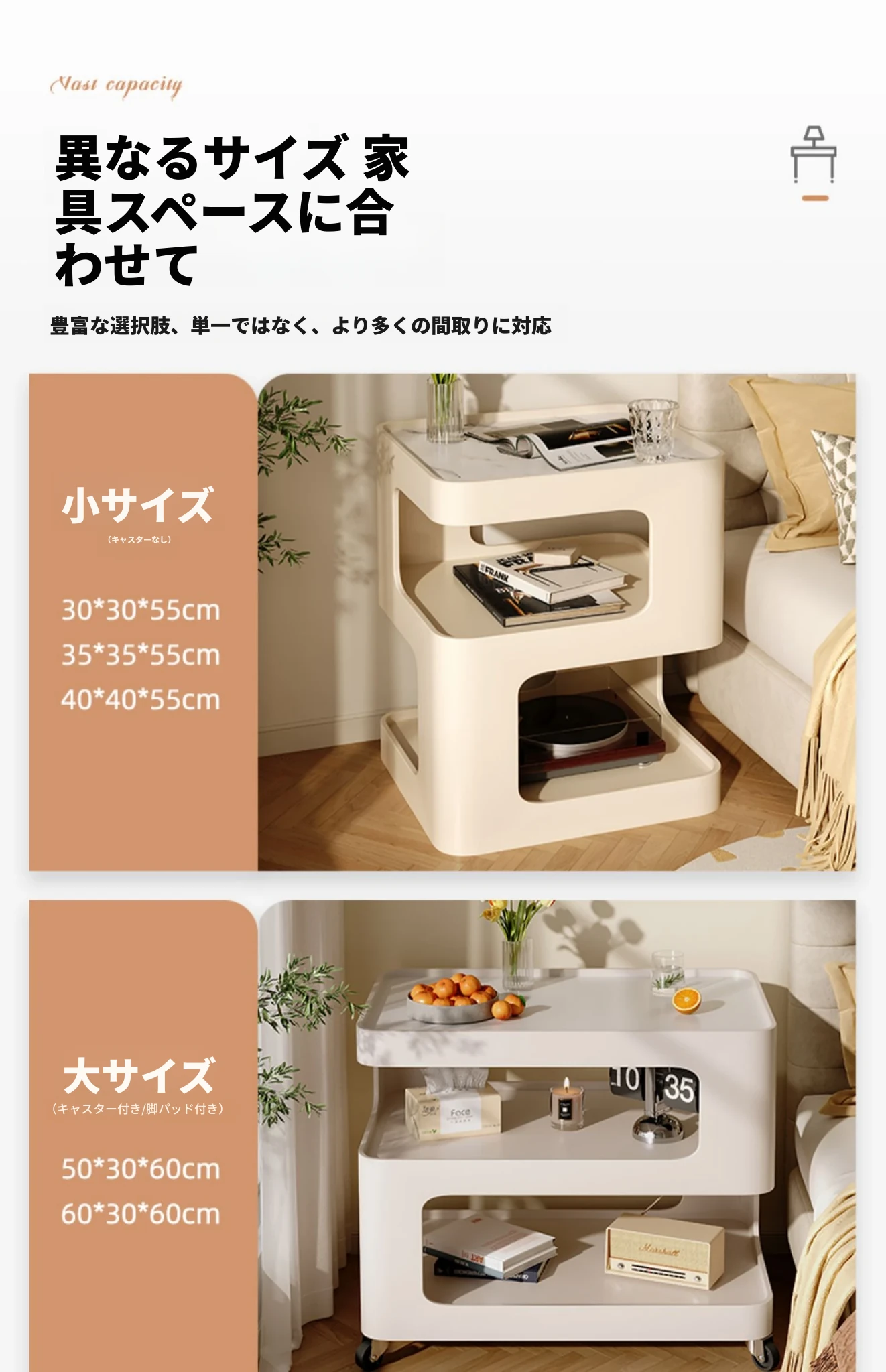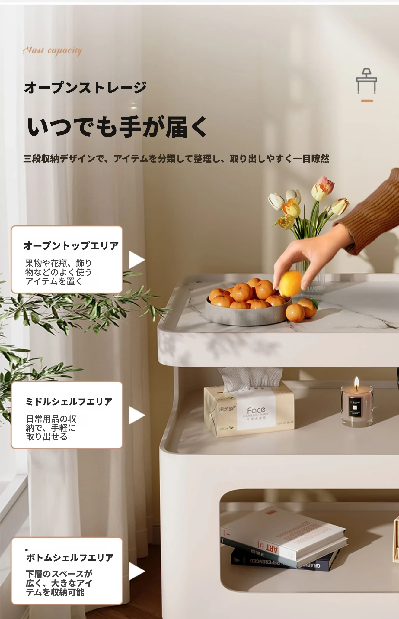 【キャスター付き】60*30*60CMクリームホワイト+雪山ホワイトストーンボード