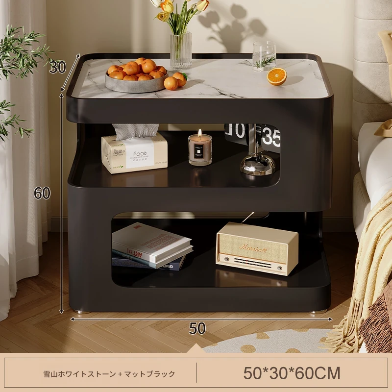 【キャスター付き】50*30*60CMマットブラック+雪山ホワイトストーンボード