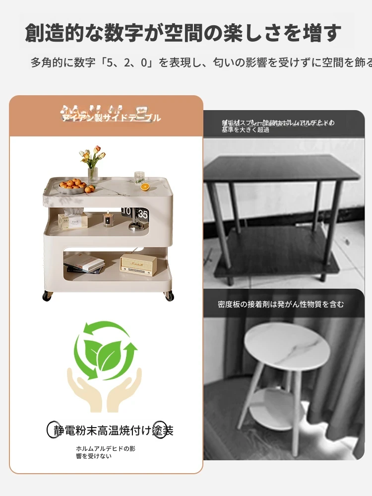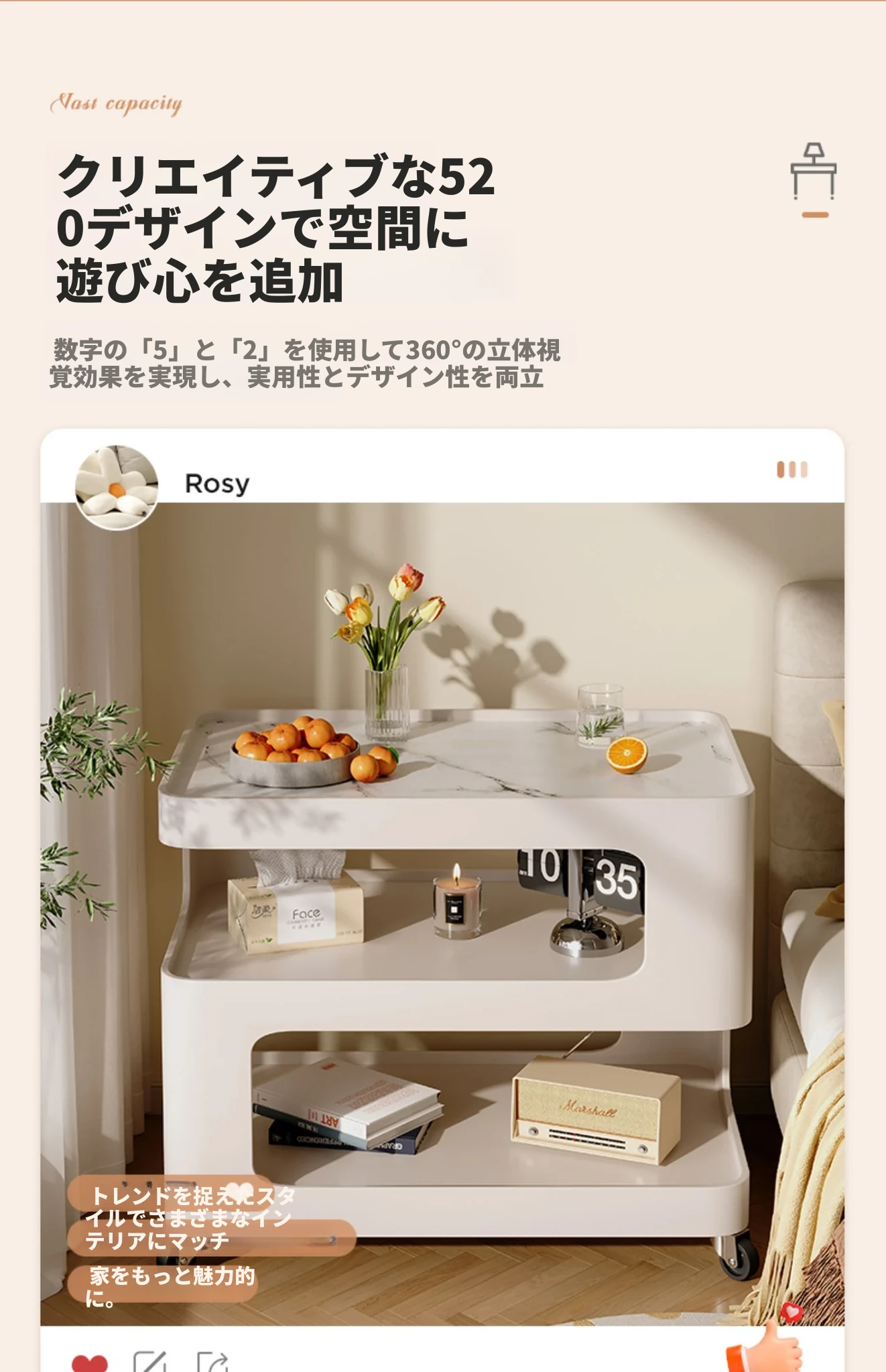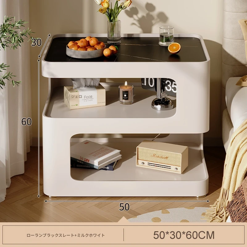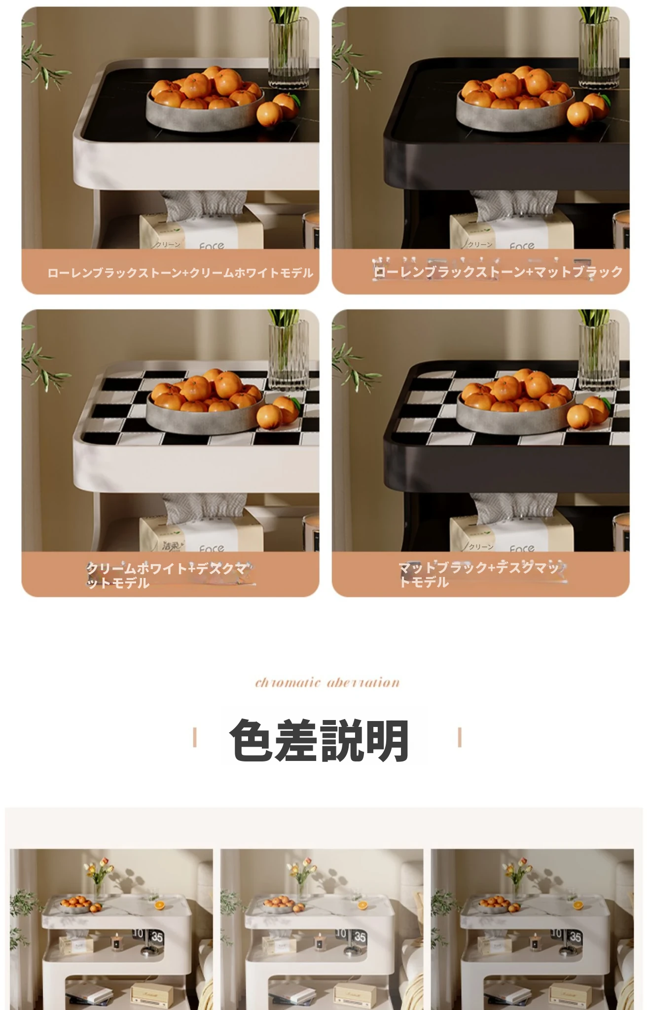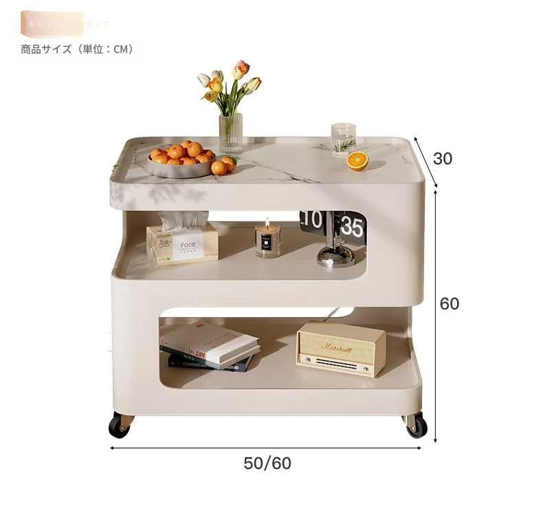 【キャスター付き】50*30*60CMクリームホワイト+ローランブラックストーンボード