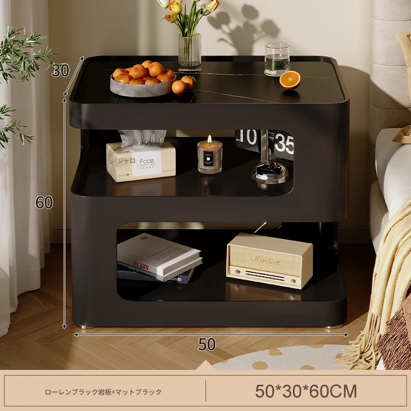 【キャスター付き】50*30*60CMマットブラック+ローランブラックストーンボード