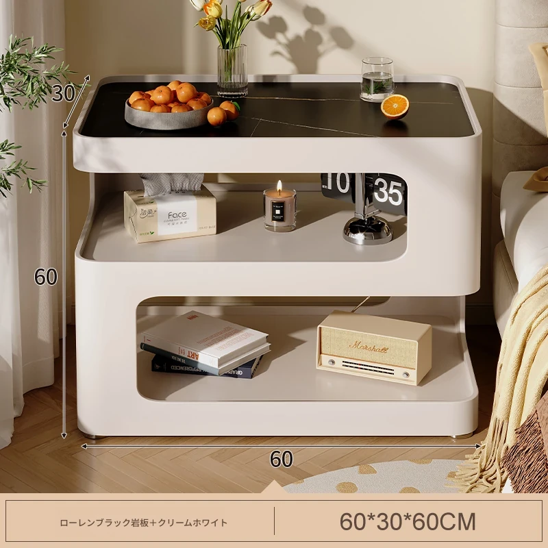 【キャスター付き】60*30*60CMクリームホワイト+ローランブラックストーンボード