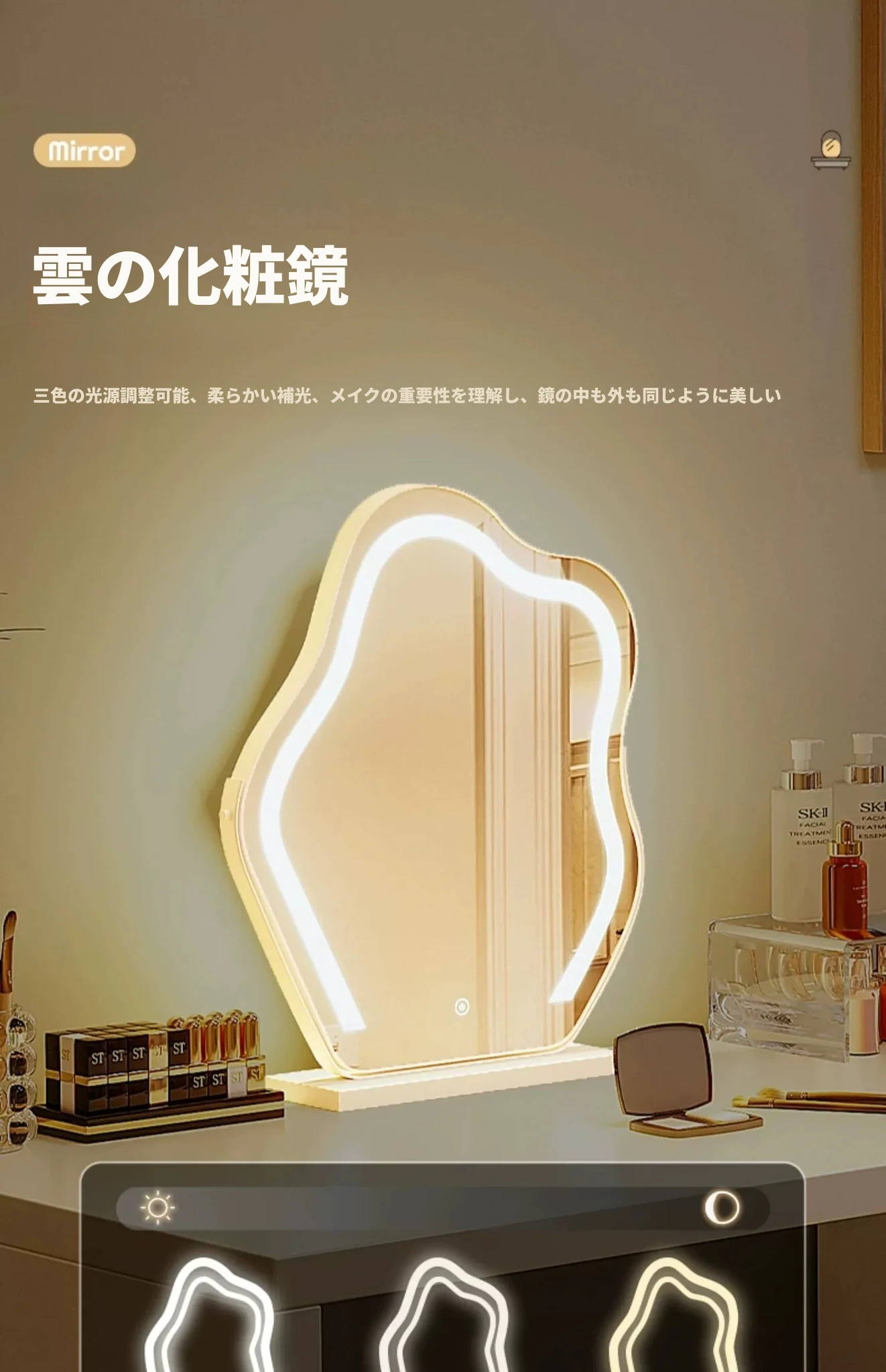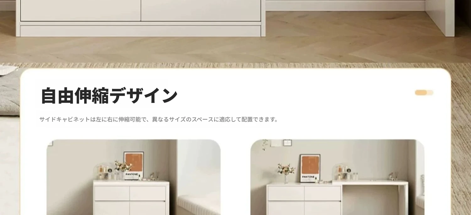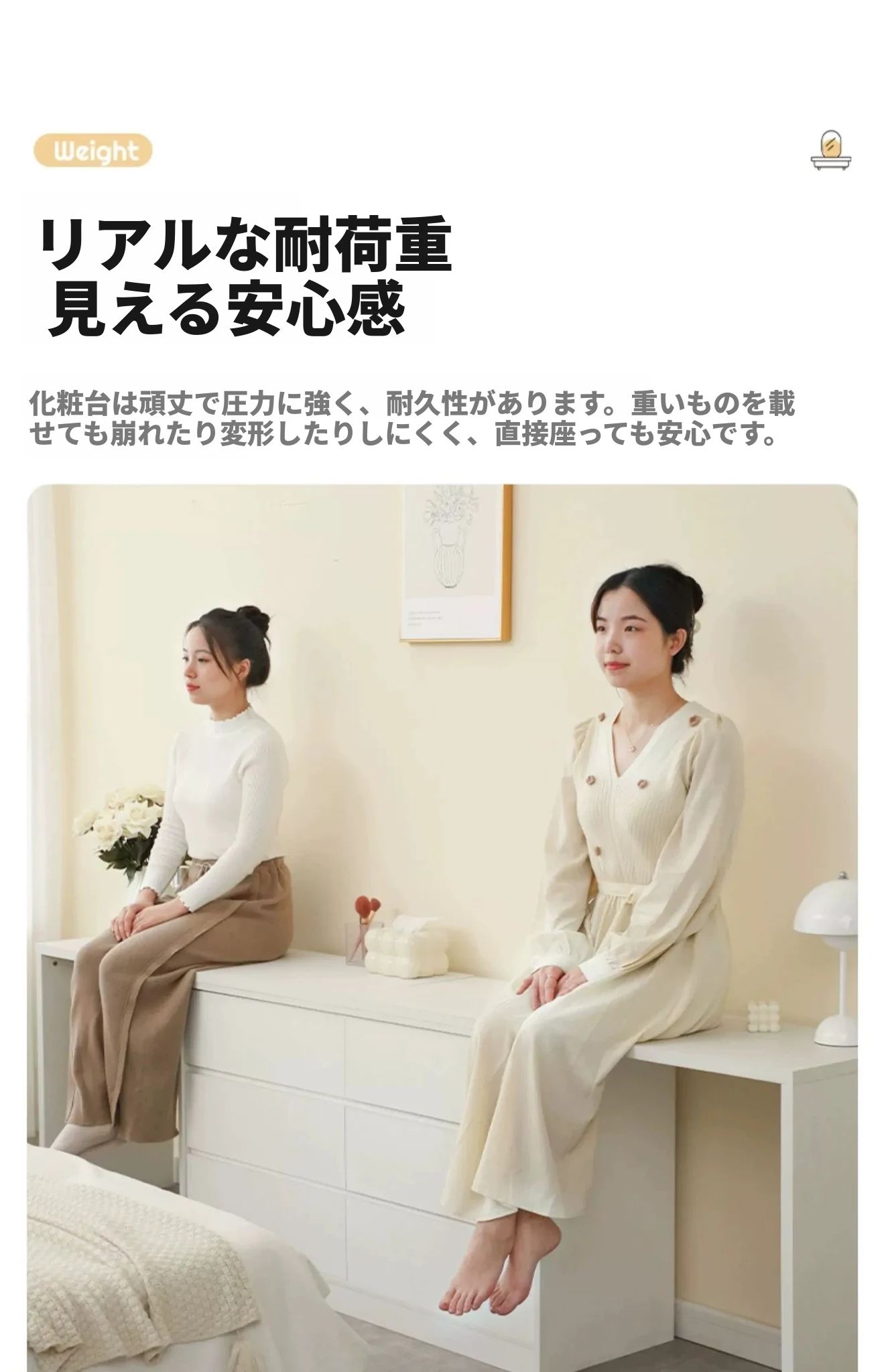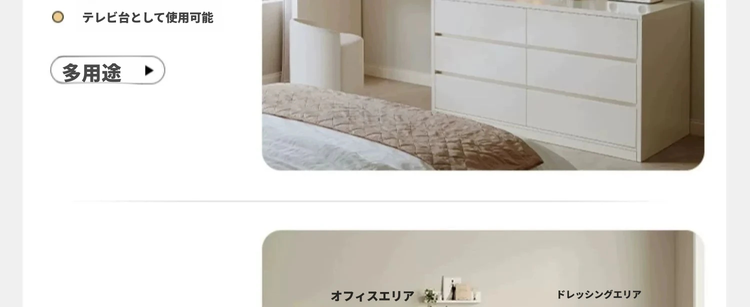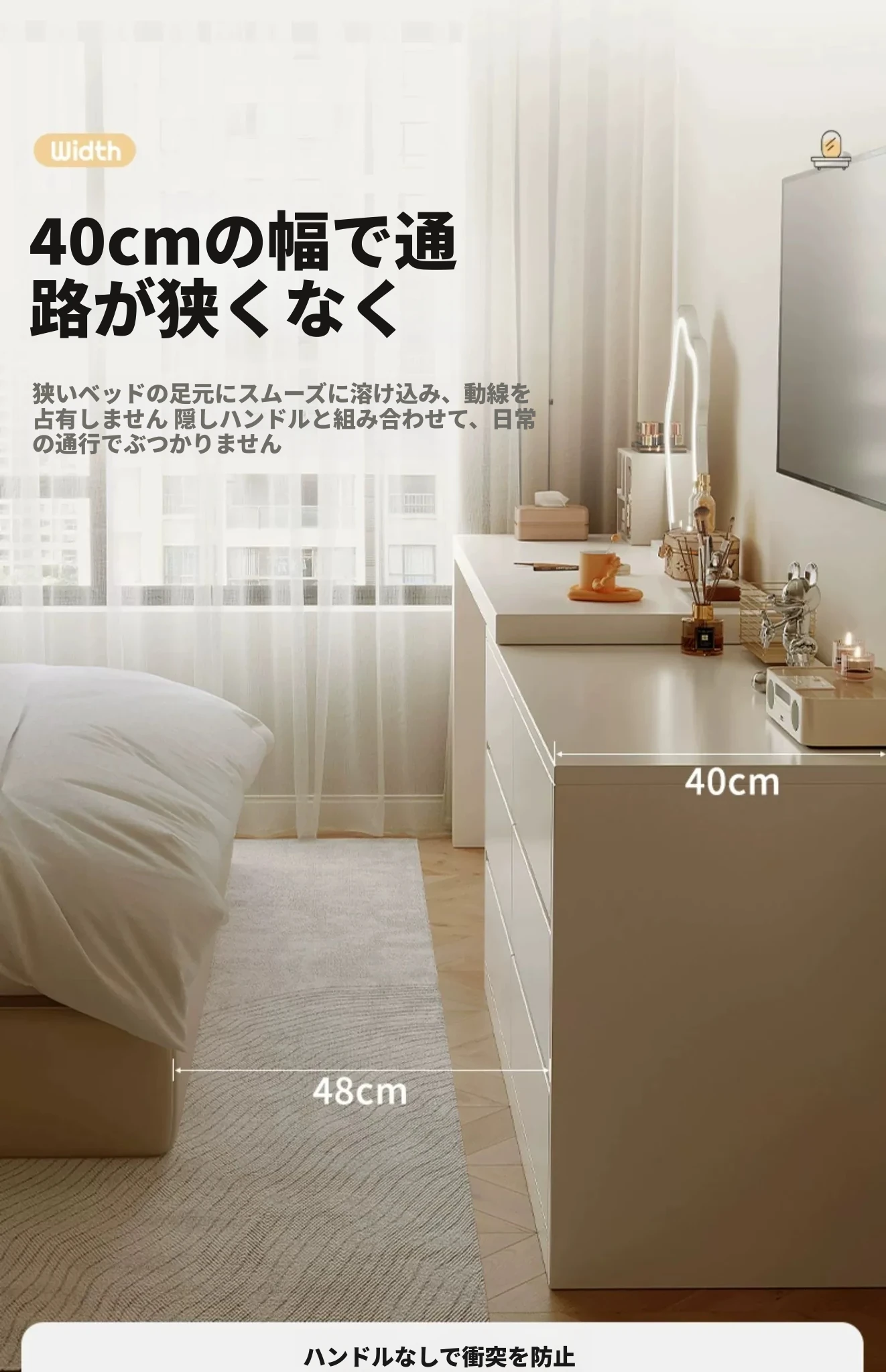 【雲の鏡+皮製スツールセット】0.8mテーブル+0.8m三段チェスト 暖白