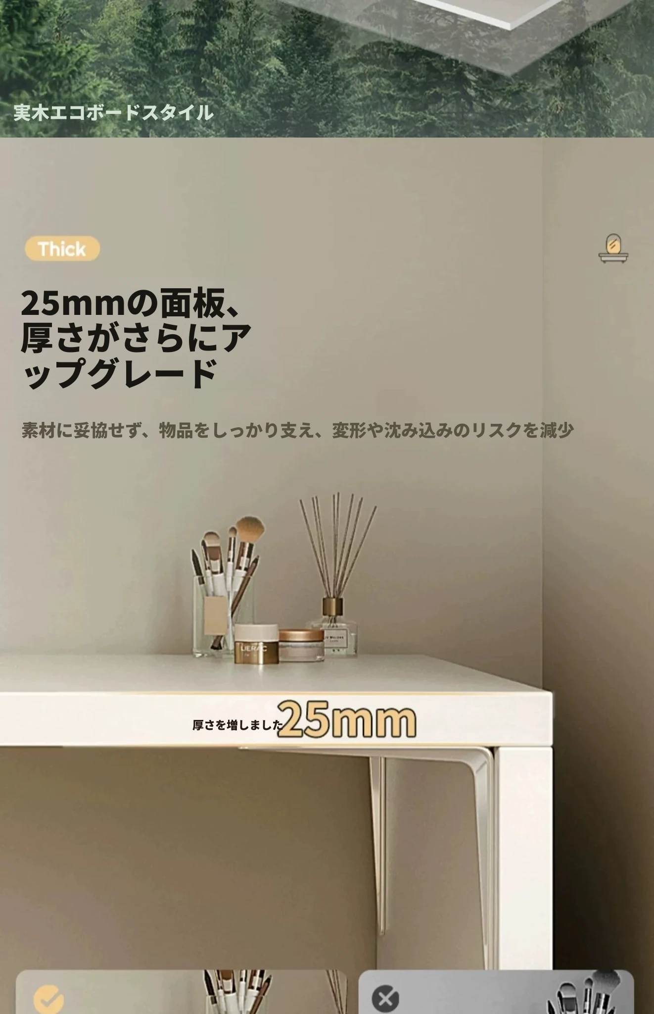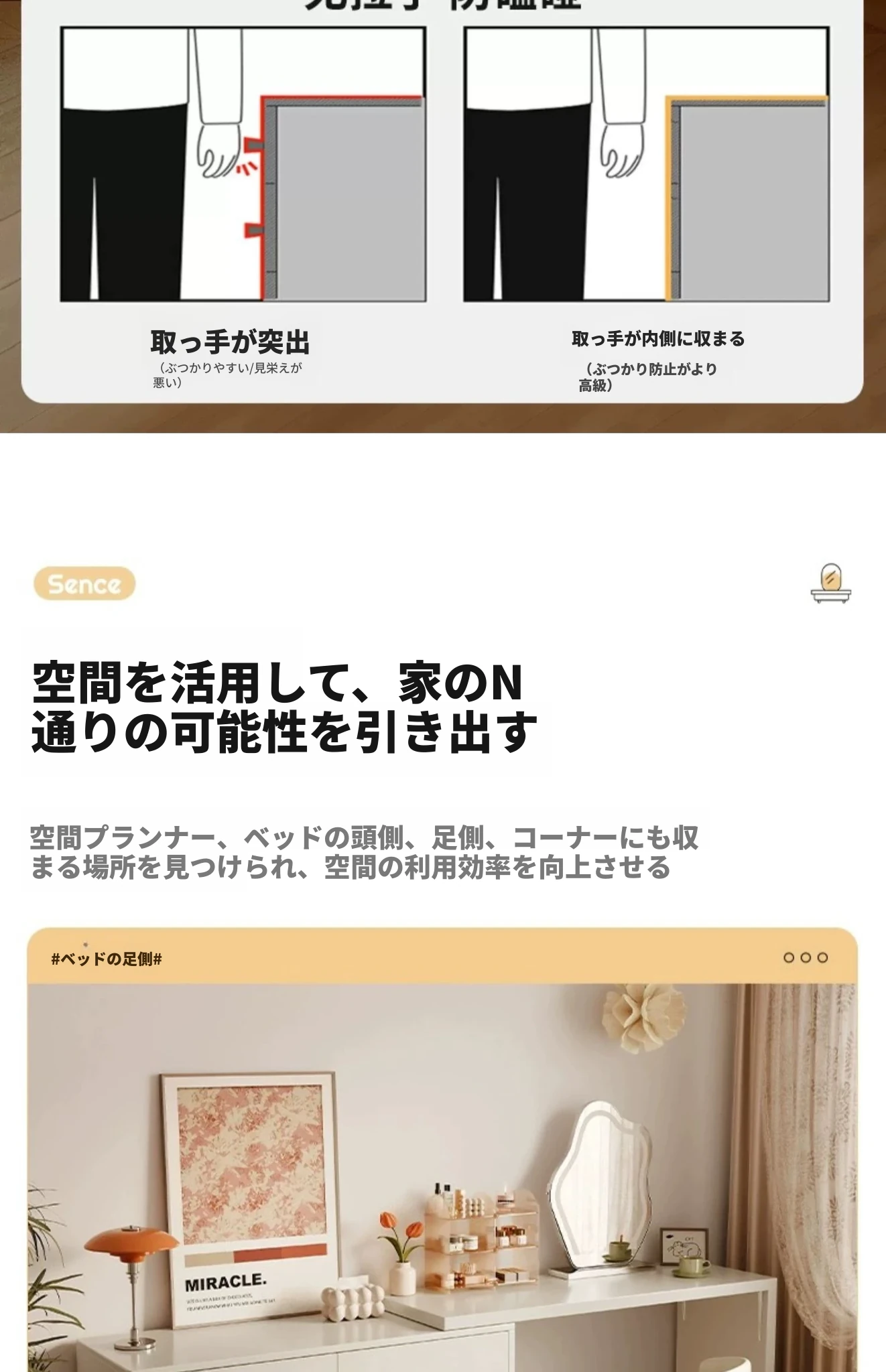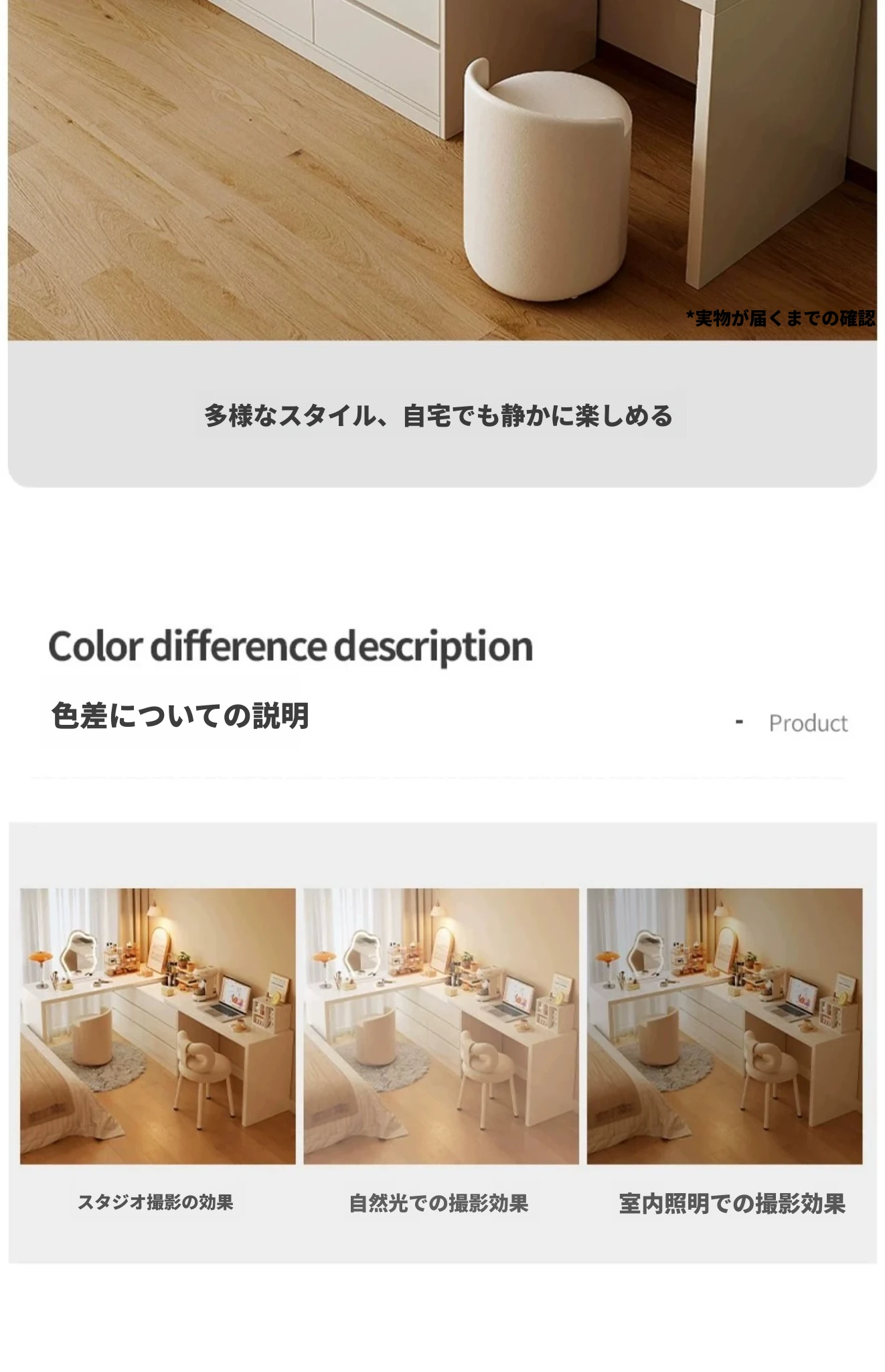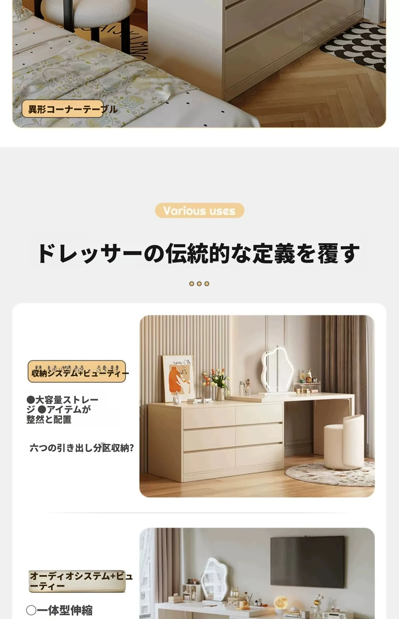 【雲の鏡+皮製スツールセット】0.8mテーブル+0.8m三段チェスト 暖白