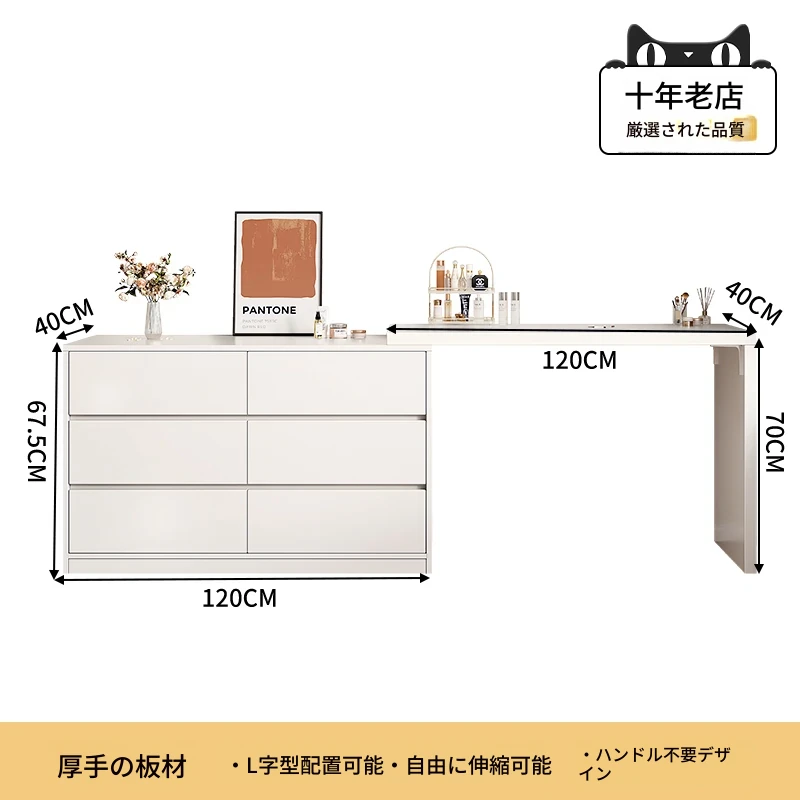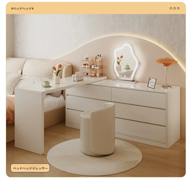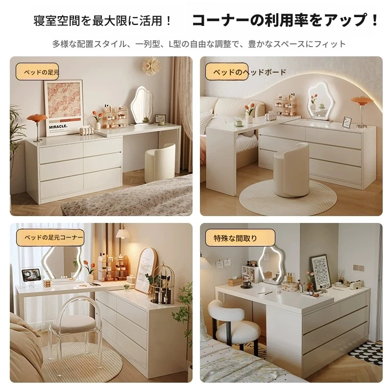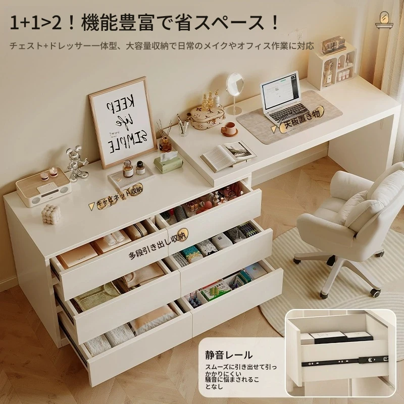 モダンでシンプルなデザインのドレッシングテーブル一体型デスク!寝室にぴったりの収納力抜群のチェストと書斎デスク。ベッドサイドや化粧台としても最適な天然木製で、あなたの生活空間をスタイリッシュに演出します。
