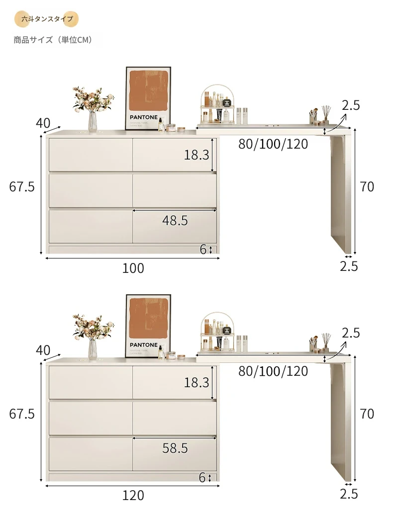 【店主おすすめ】1mテーブル+1m六段チェスト 暖白