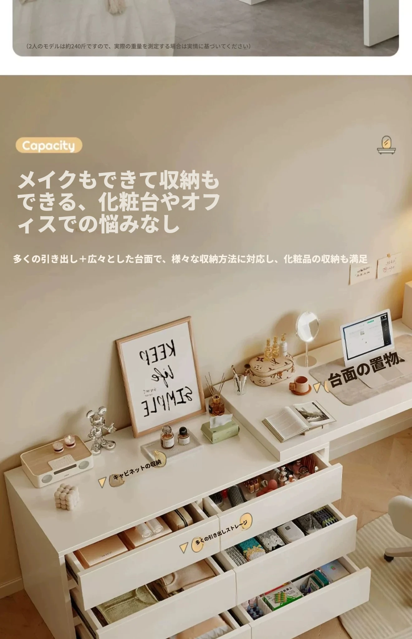 0.8mテーブル+0.8m三段チェスト 暖白
