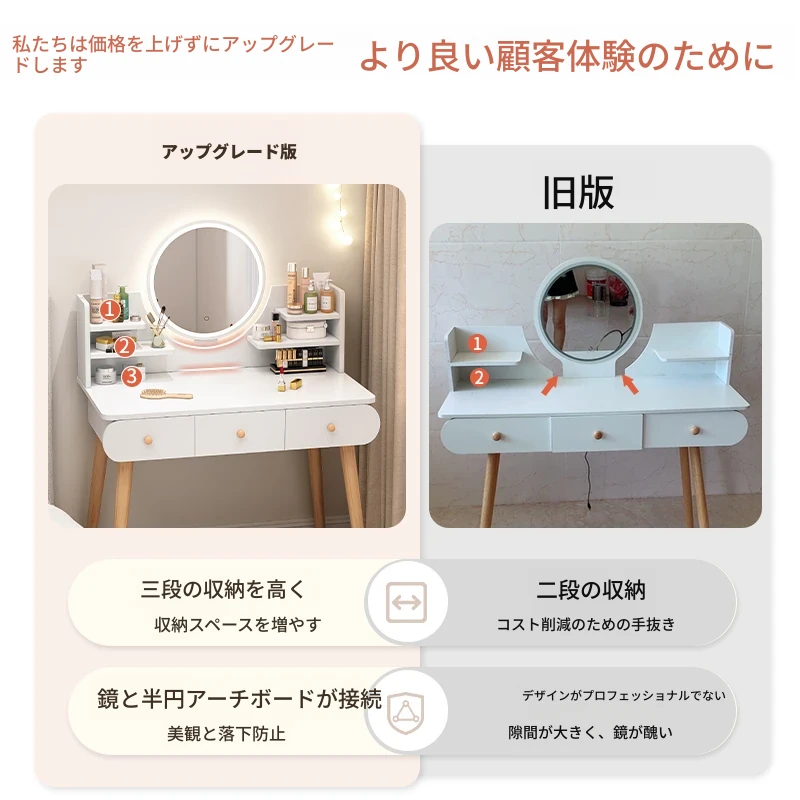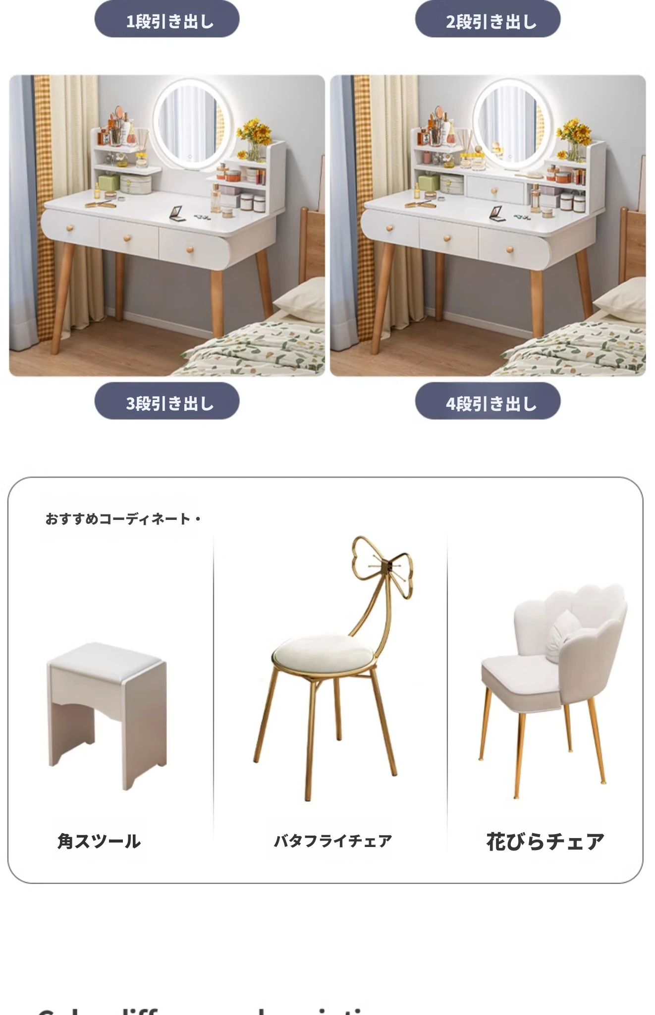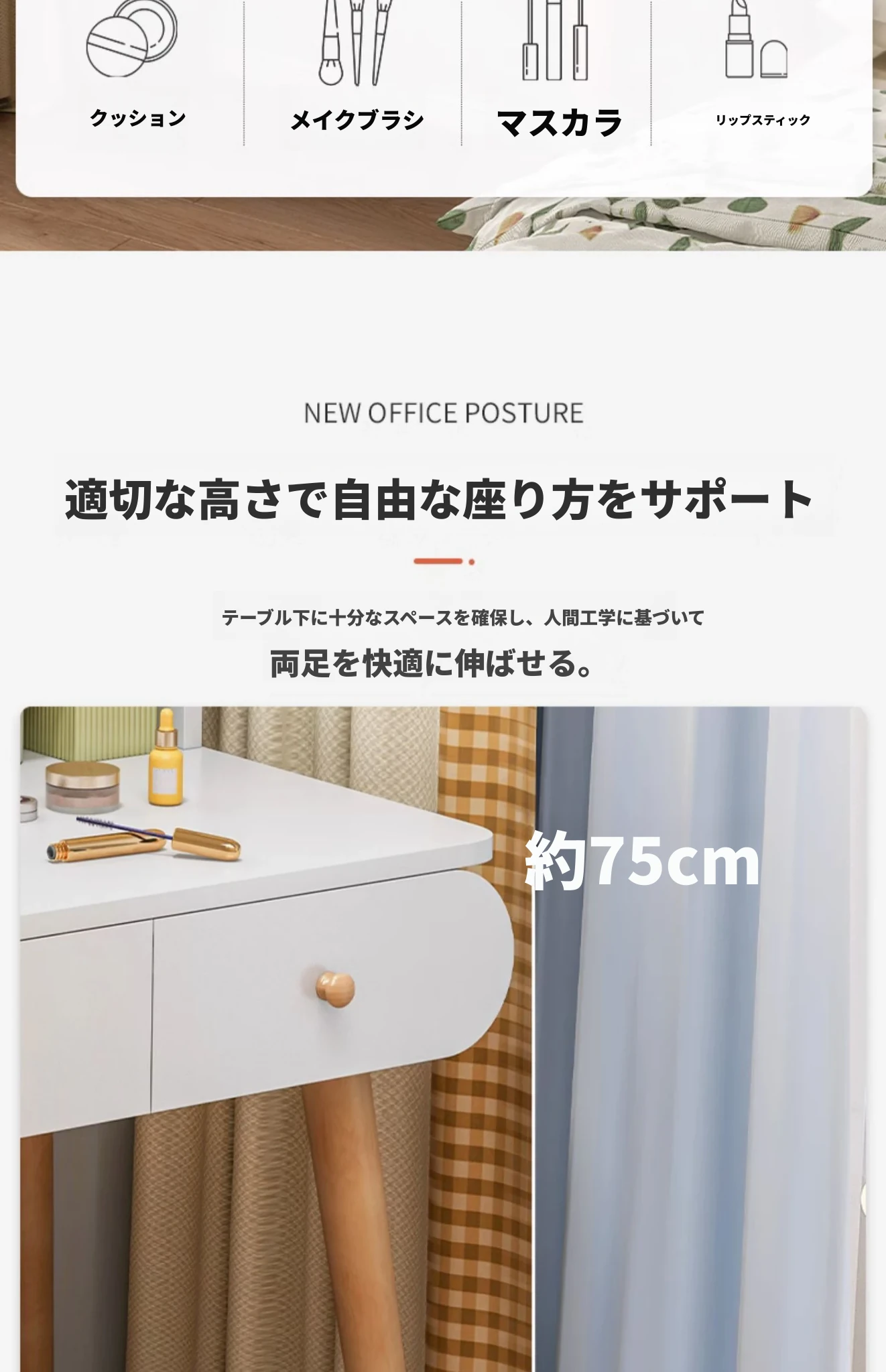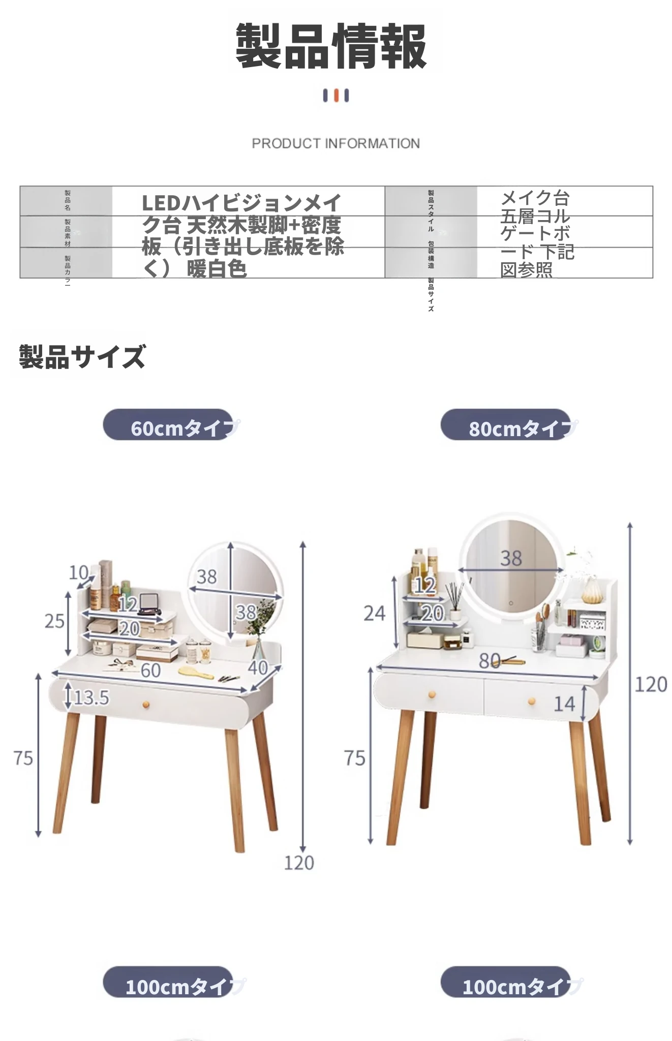 アップグレード鋼脚⭐【スマートミラー+ダブル引き出し+花びら椅子】80cm(太い鋼脚 安定支え)