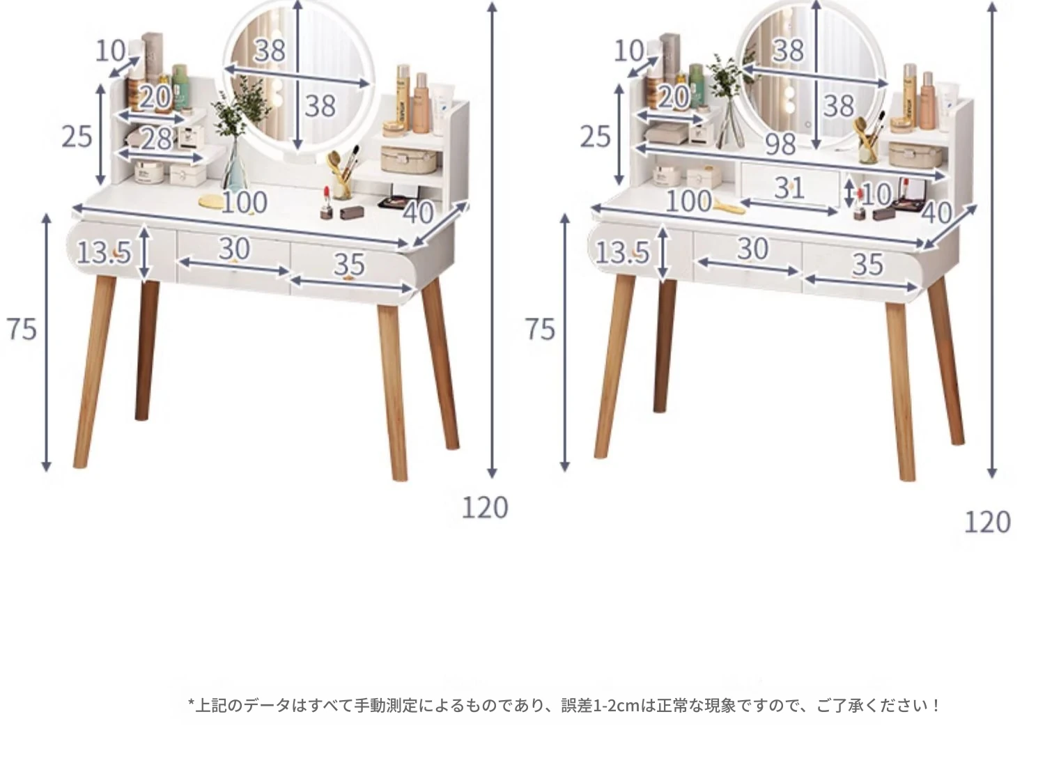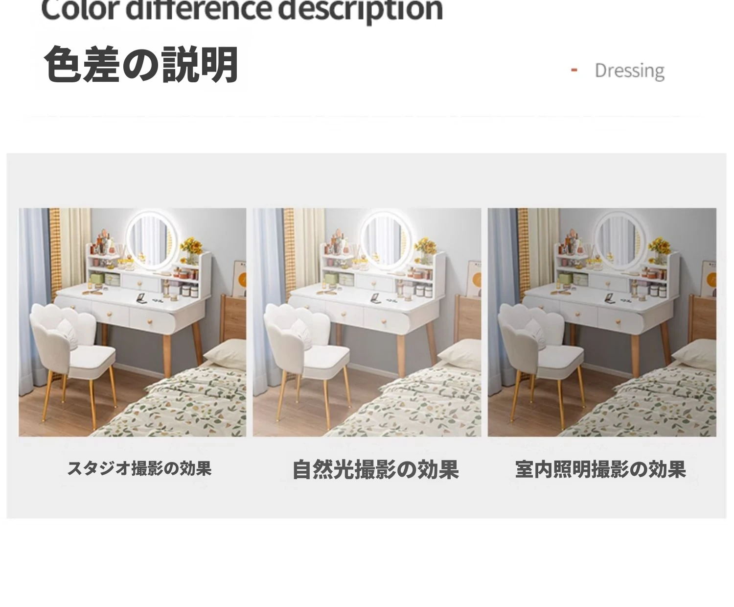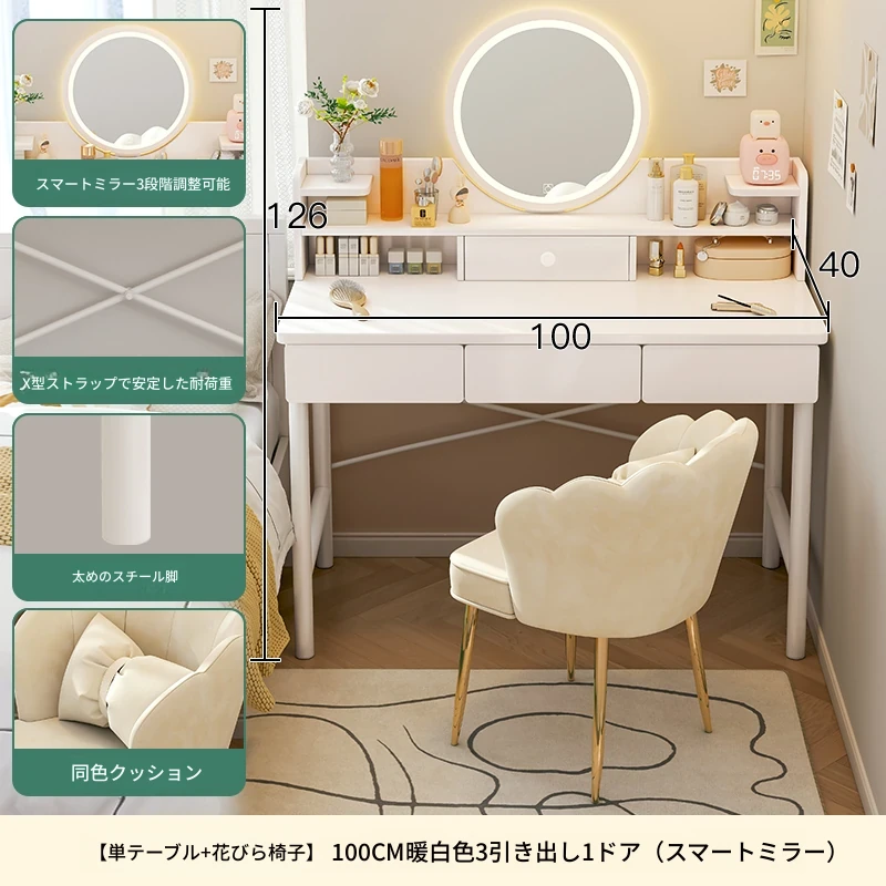 アップグレード鋼脚⭐【スマートミラー+トリプル引き出し1ドア+花びら椅子】100cm(太い鋼脚 安定支え)