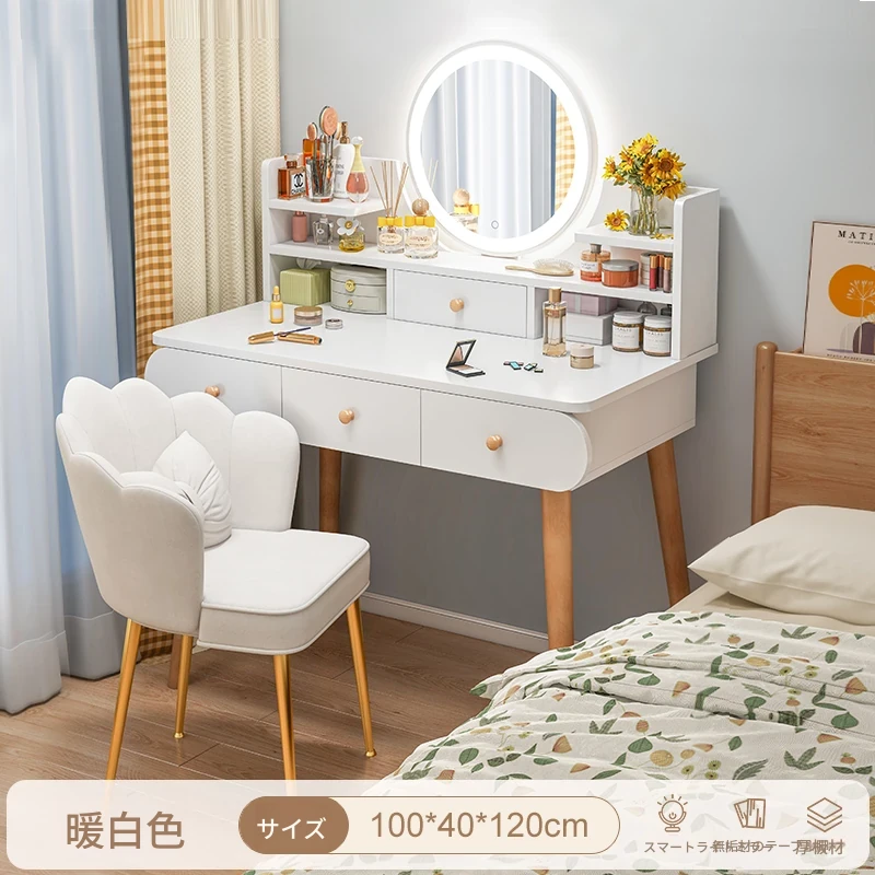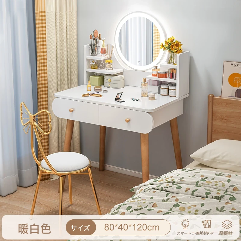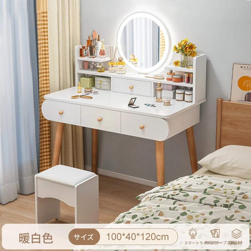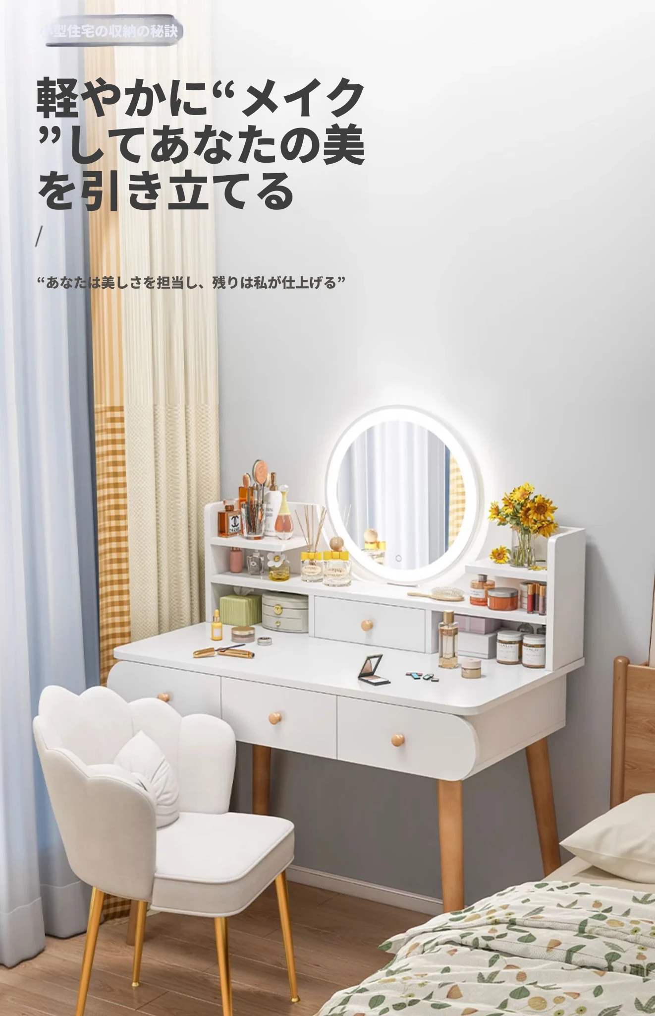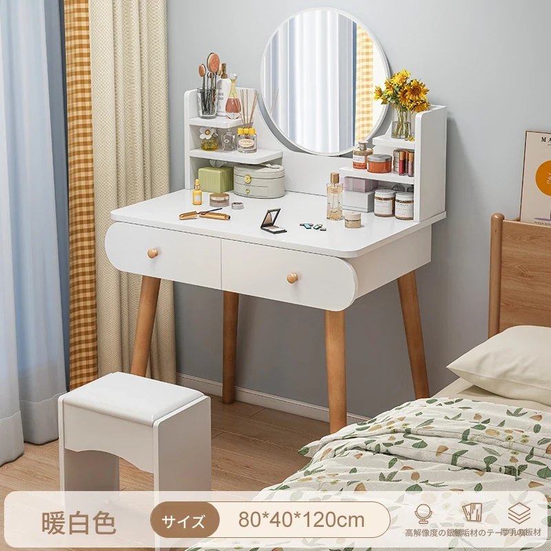 簡約モダンな小型ドレッサー!新作女性向けメイクアップテーブル、主寝室に最適なミラー付き化粧台。狭いスペースでもおしゃれ&機能的!あなたの美しさを引き立てるアイテムです。