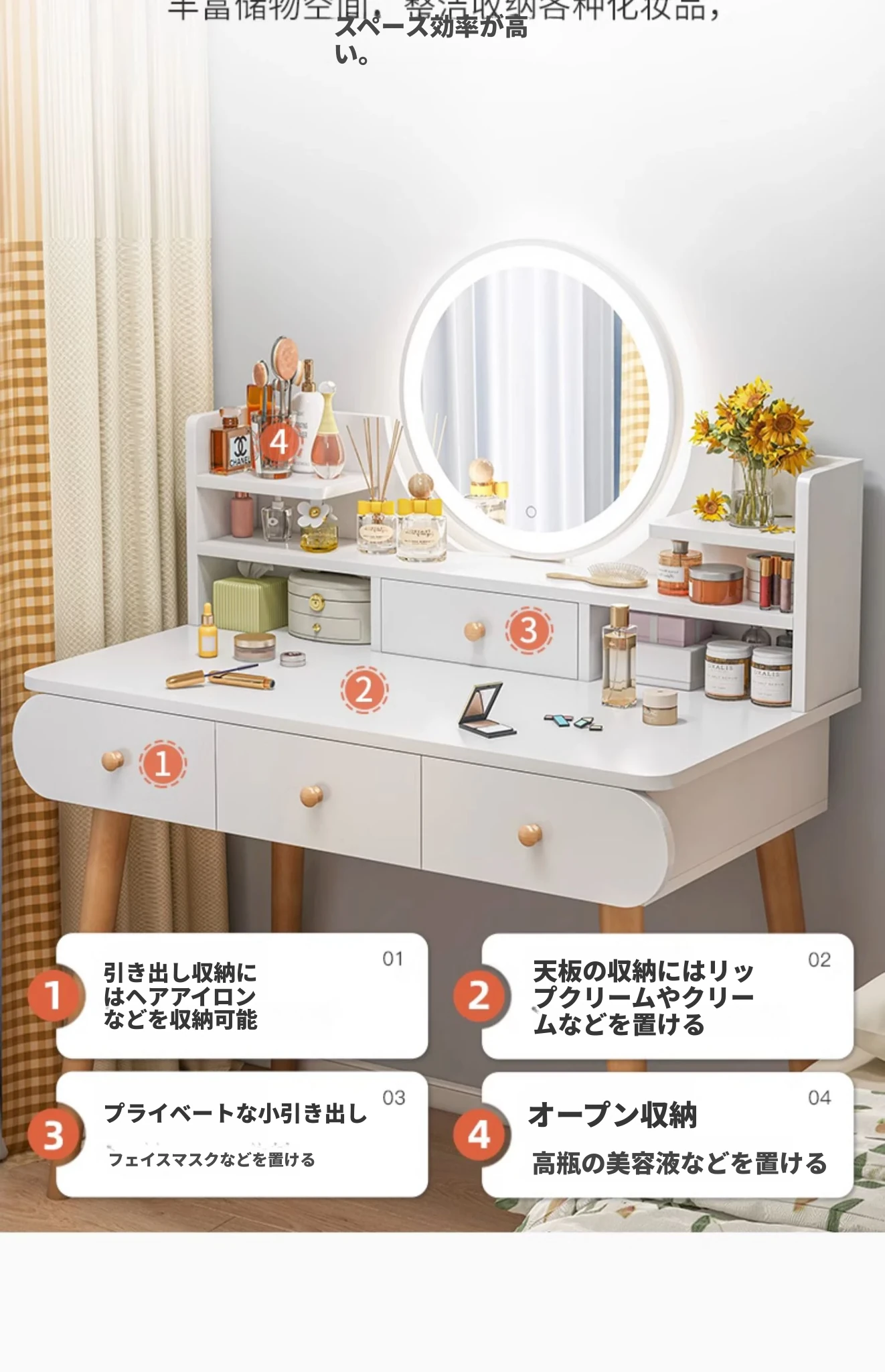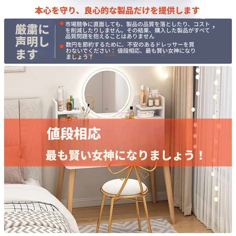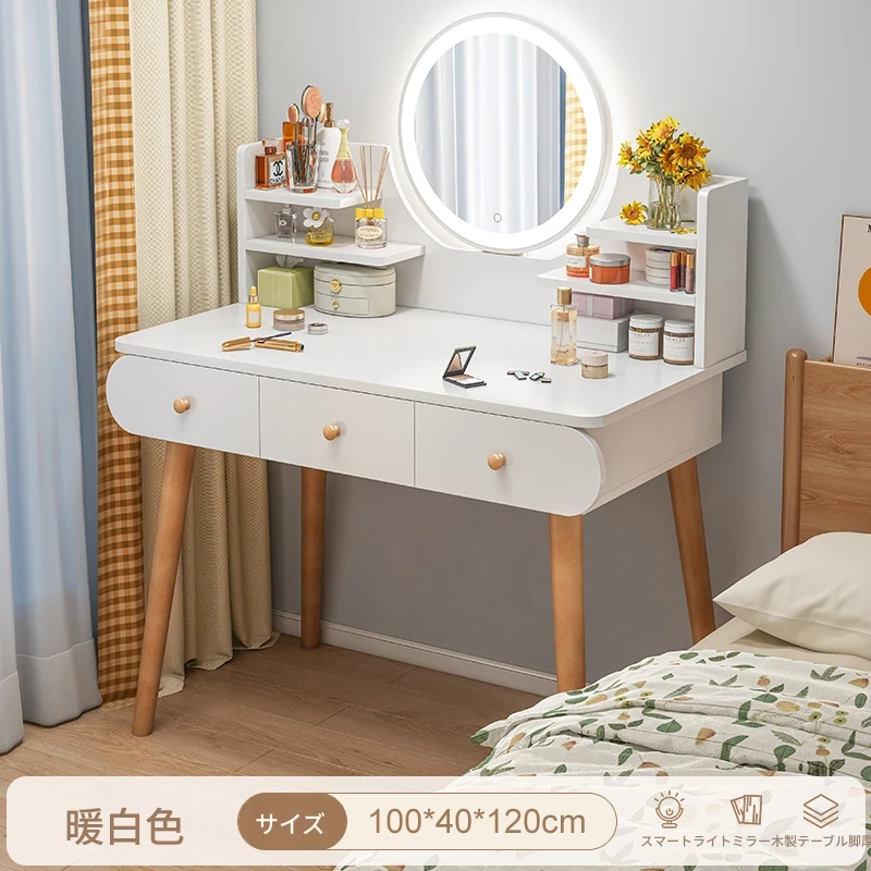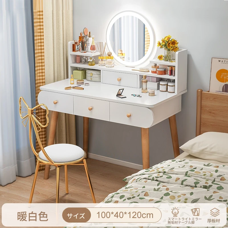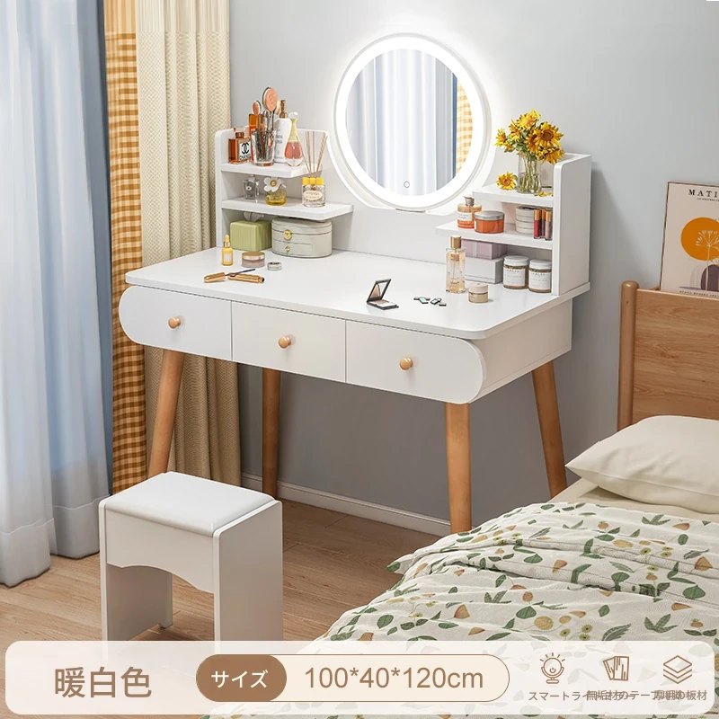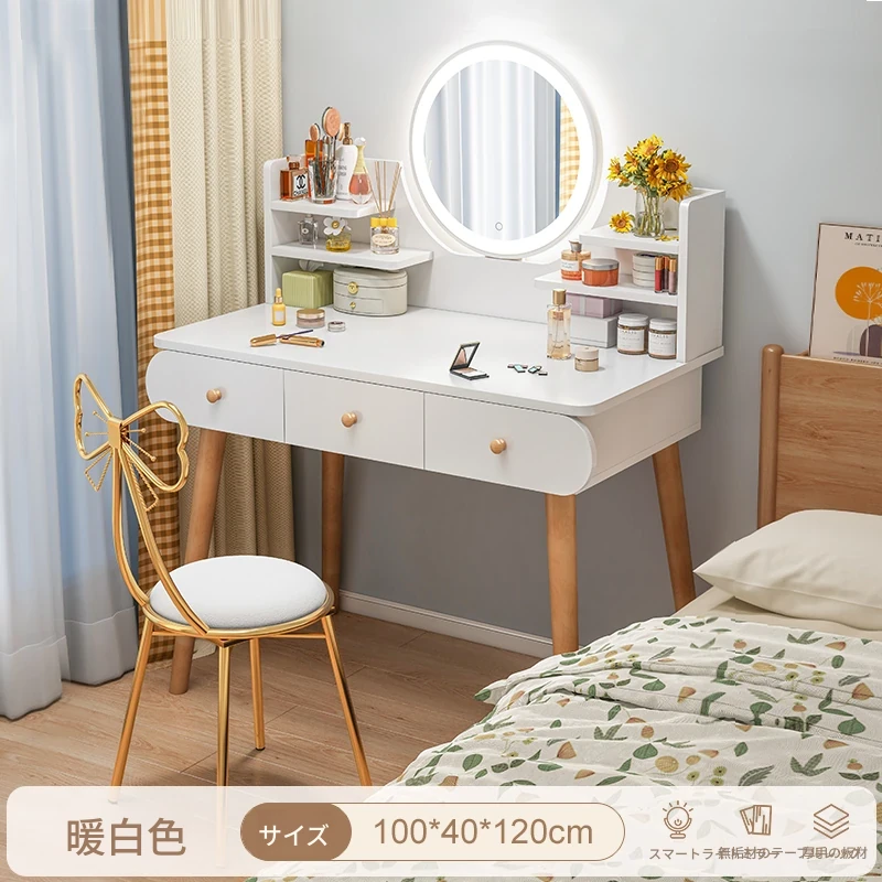 簡約モダンな小型ドレッサー!新作女性向けメイクアップテーブル、主寝室に最適なミラー付き化粧台。狭いスペースでもおしゃれ&機能的!あなたの美しさを引き立てるアイテムです。